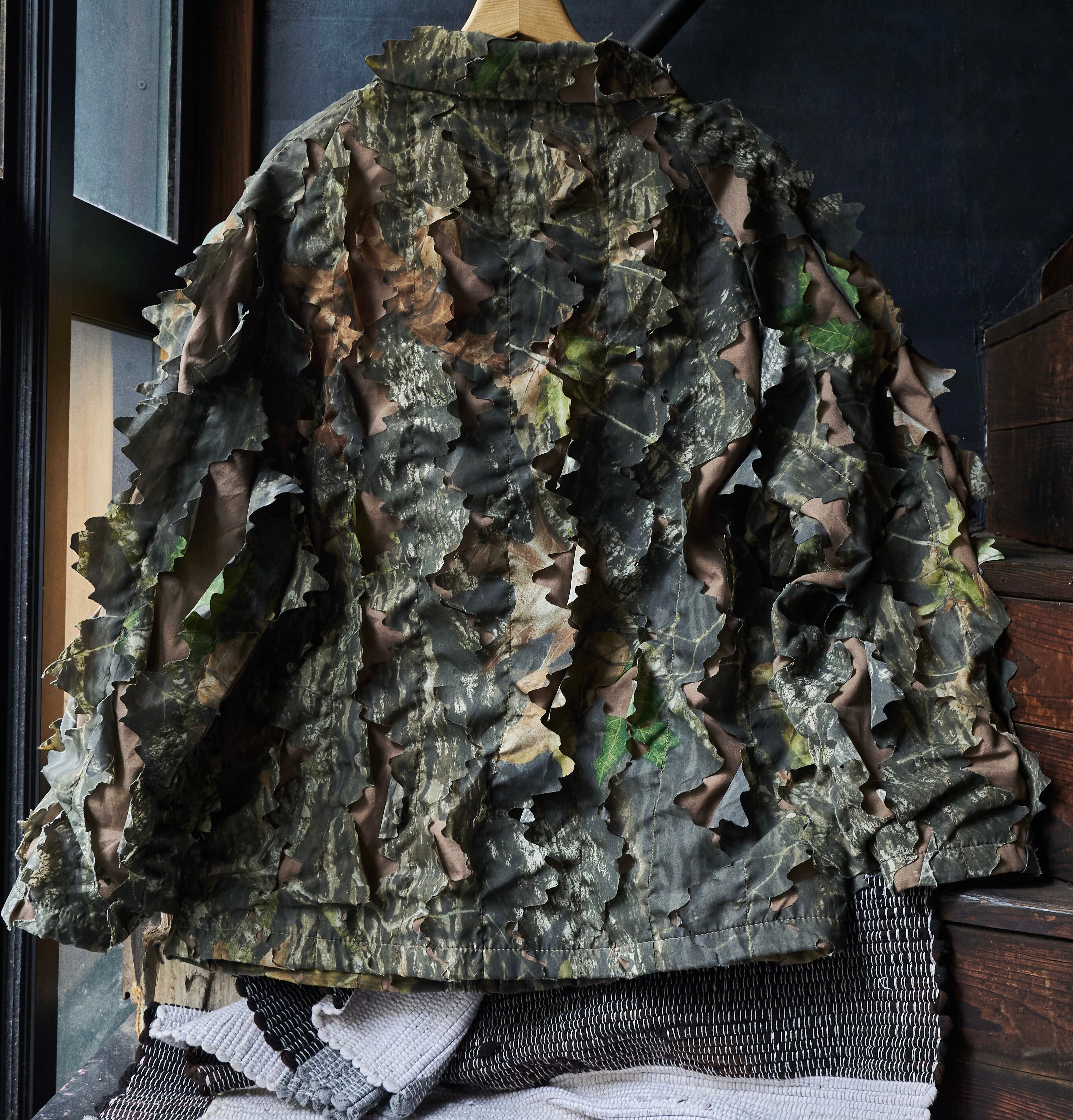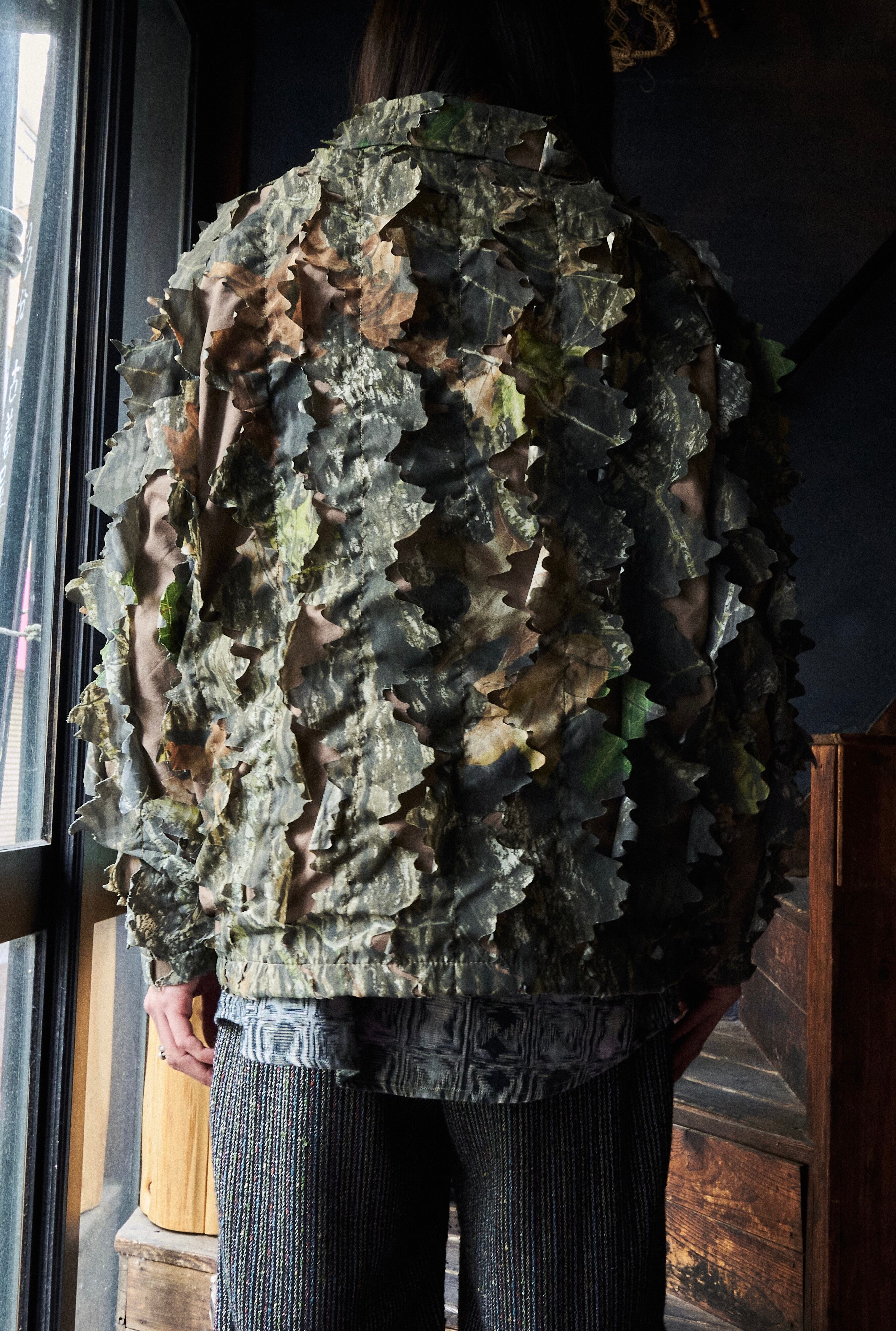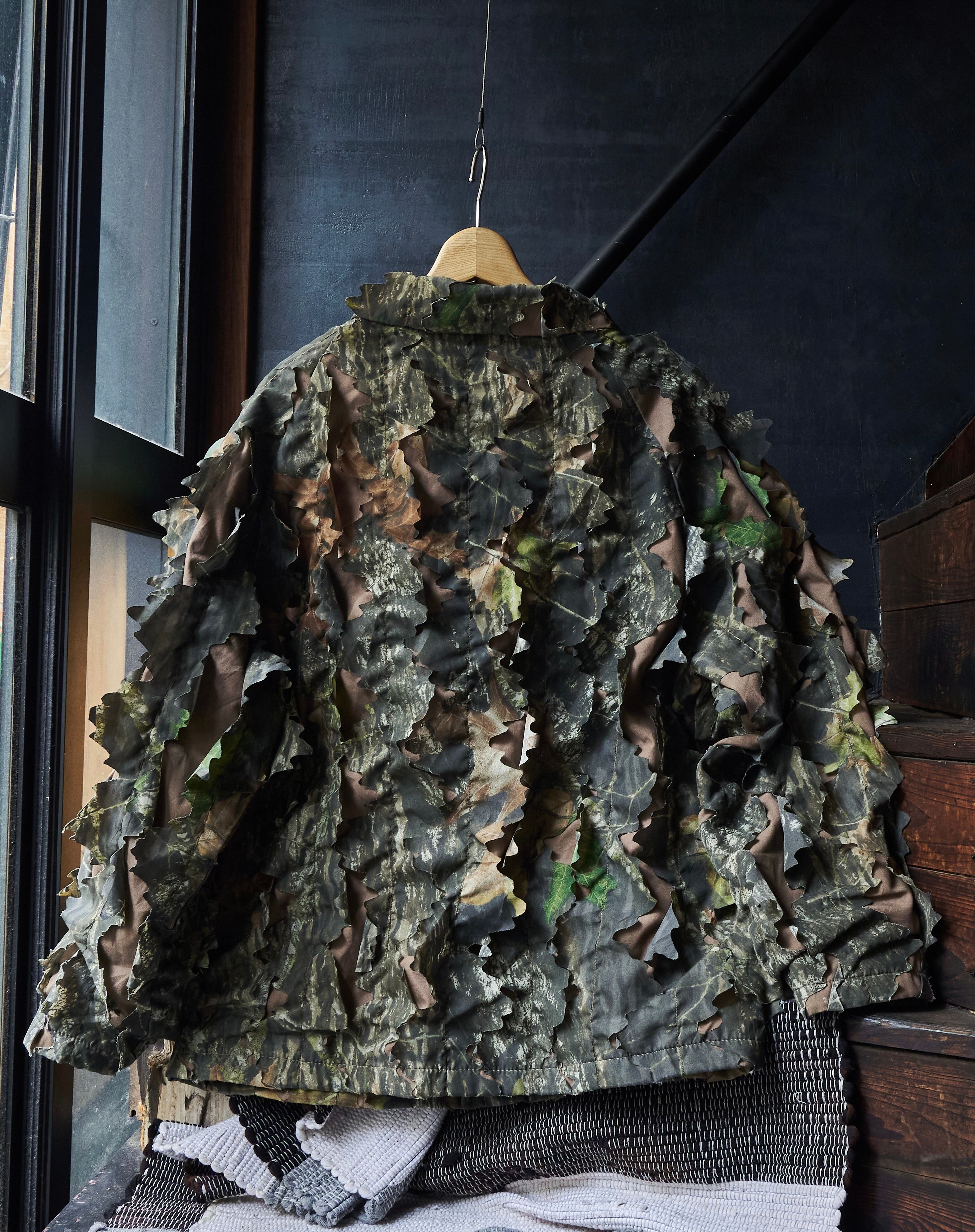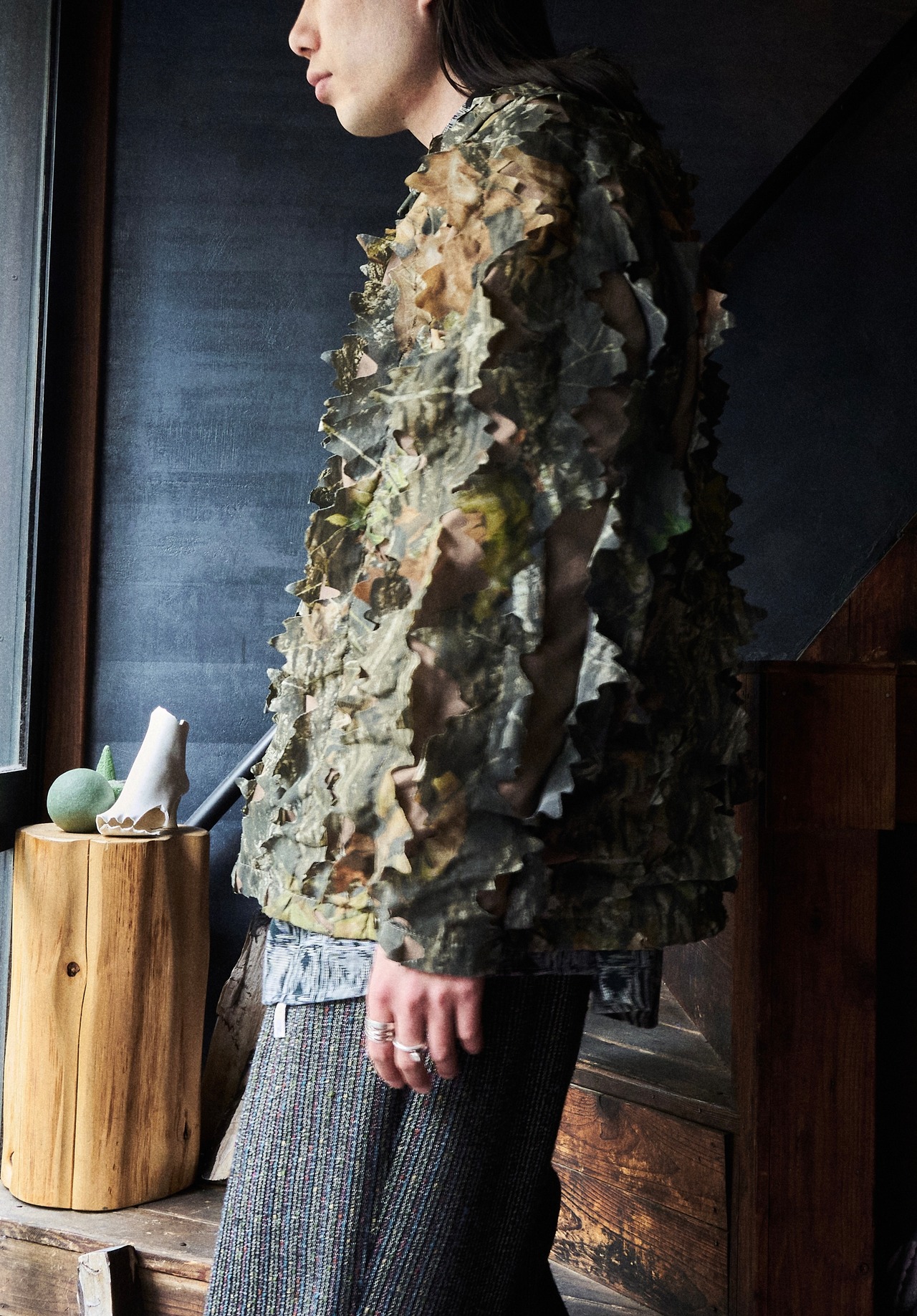 そんなカベラスの服でも一際目立つギリージャケットはハンターやスナイパーが周囲の環境(草木や土)に擬態し、視認性を極限まで下げるための迷彩服であります。