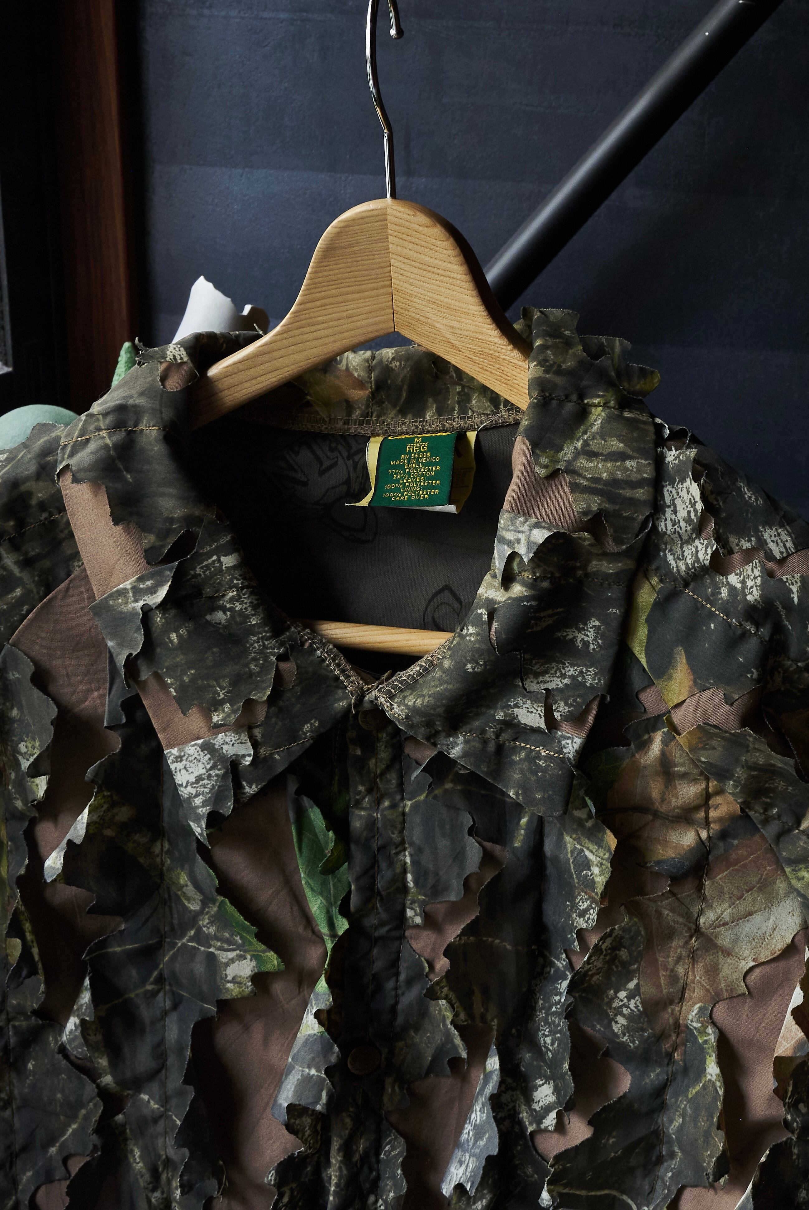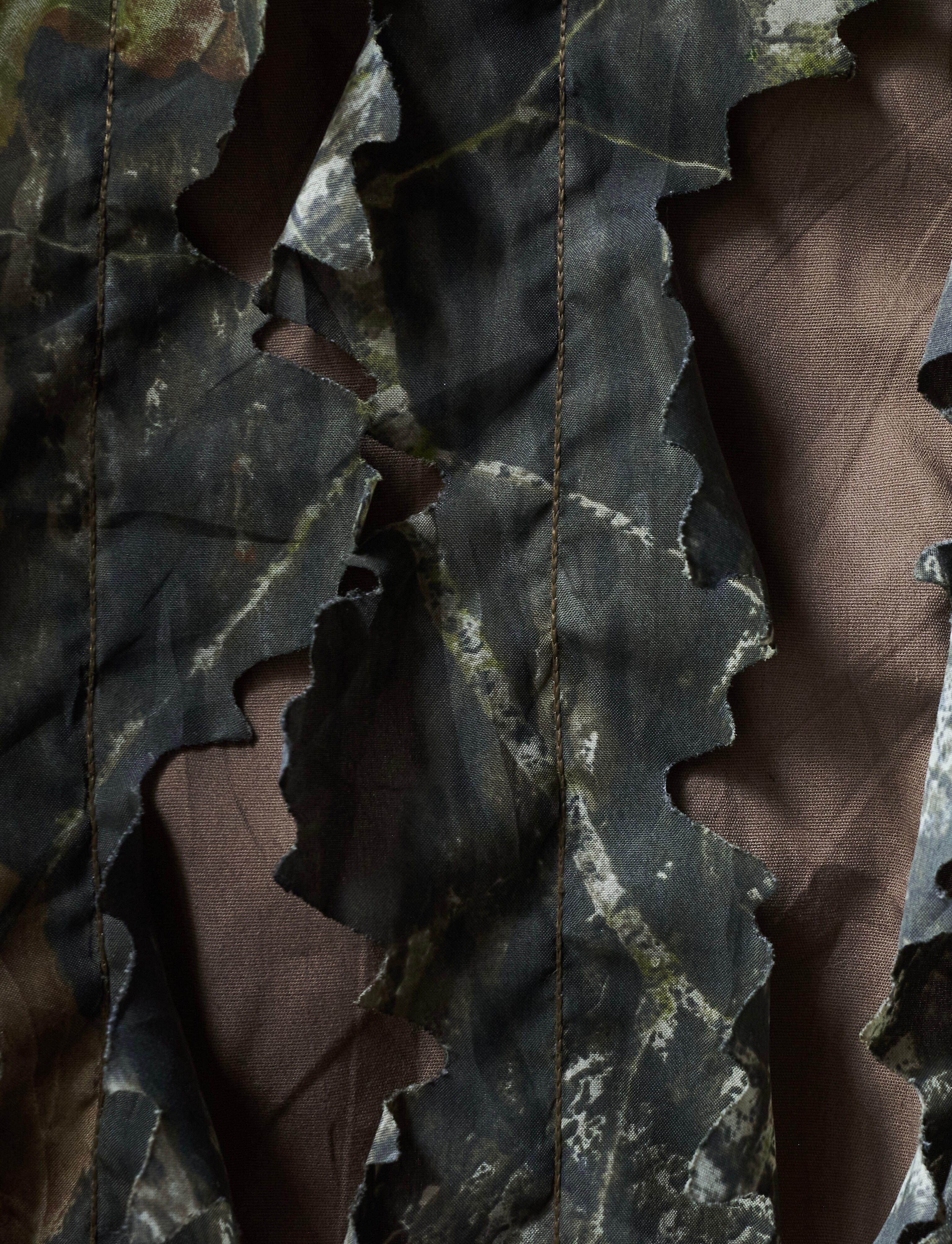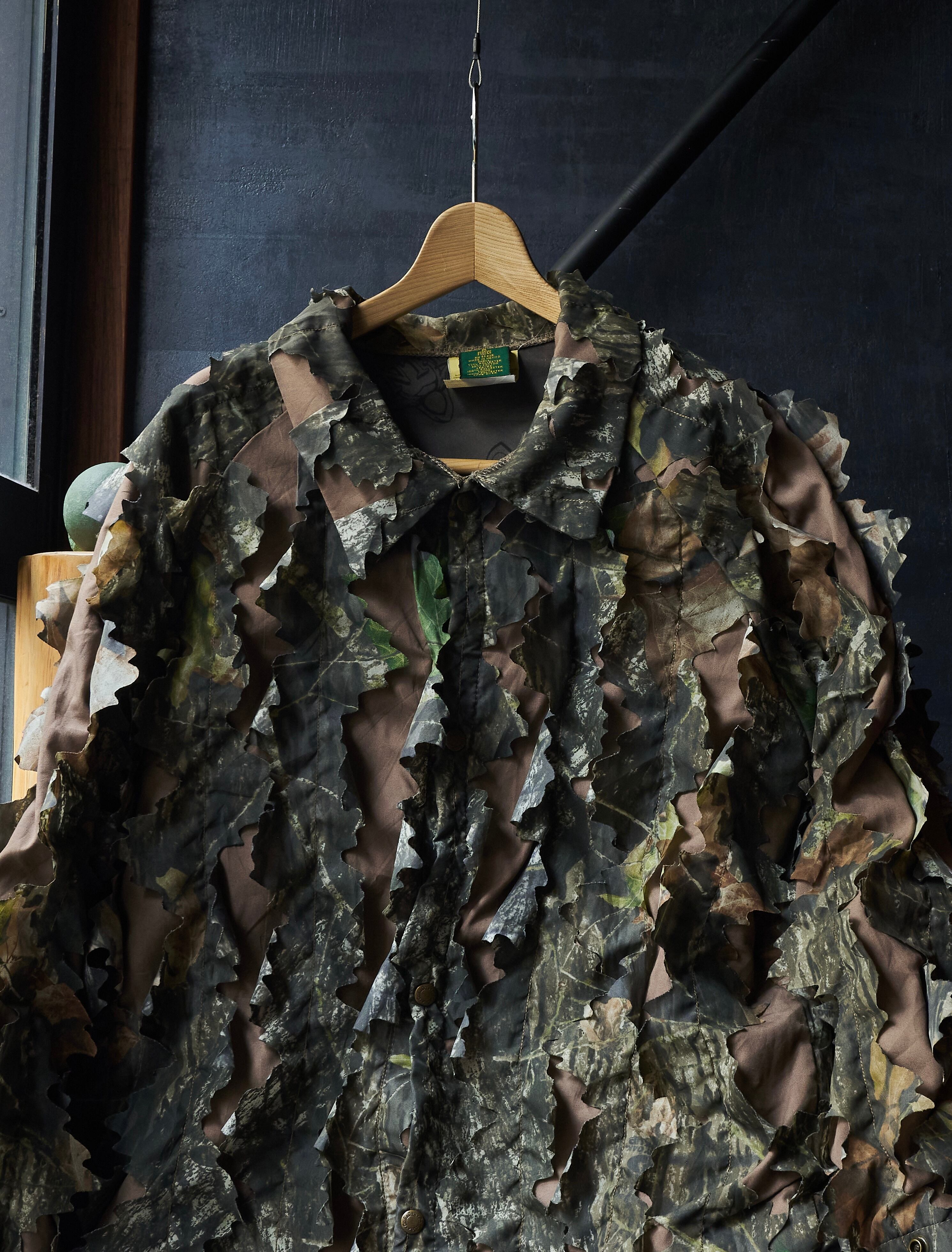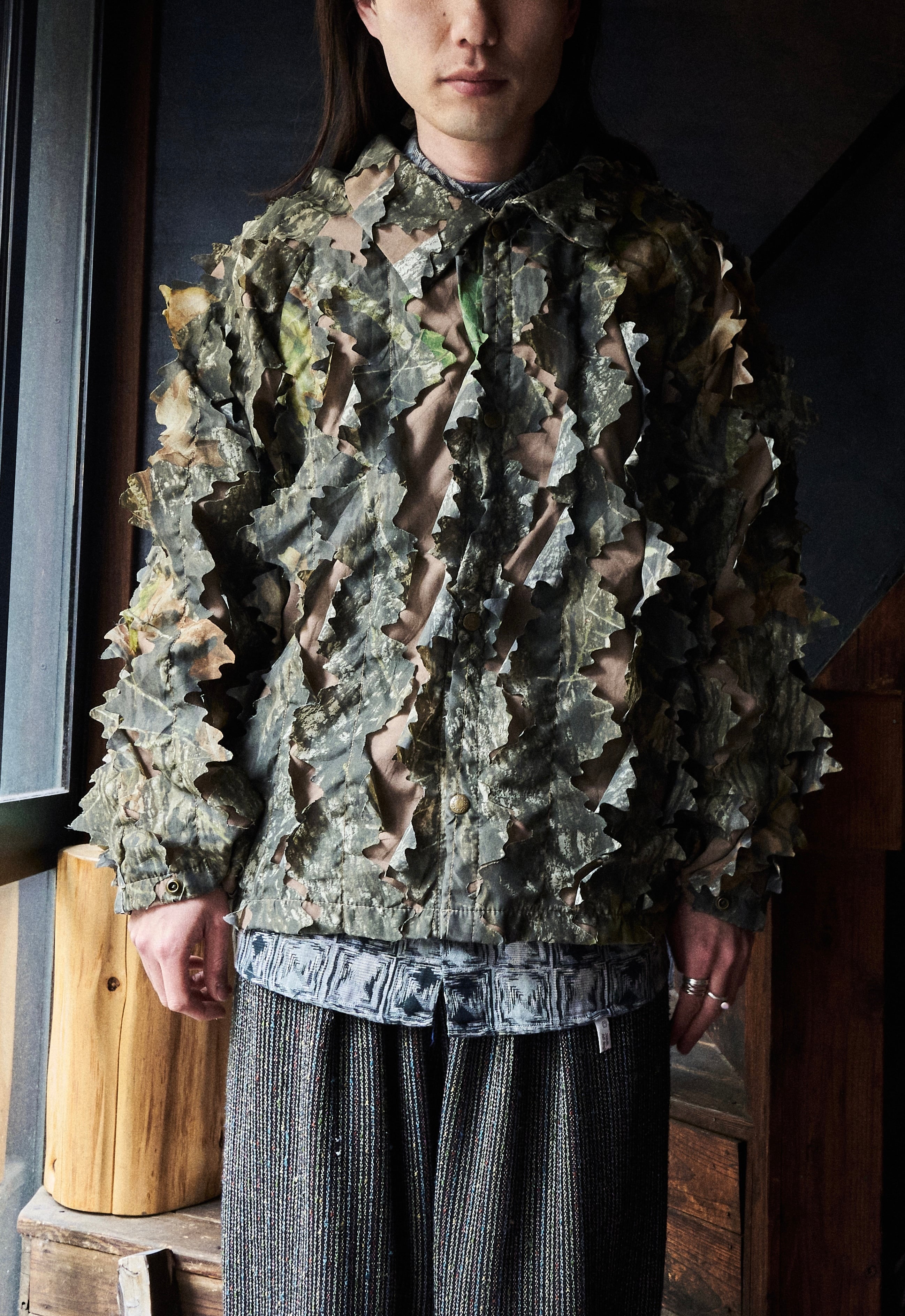 そんなカベラスの服でも一際目立つギリージャケットはハンターやスナイパーが周囲の環境(草木や土)に擬態し、視認性を極限まで下げるための迷彩服であります。