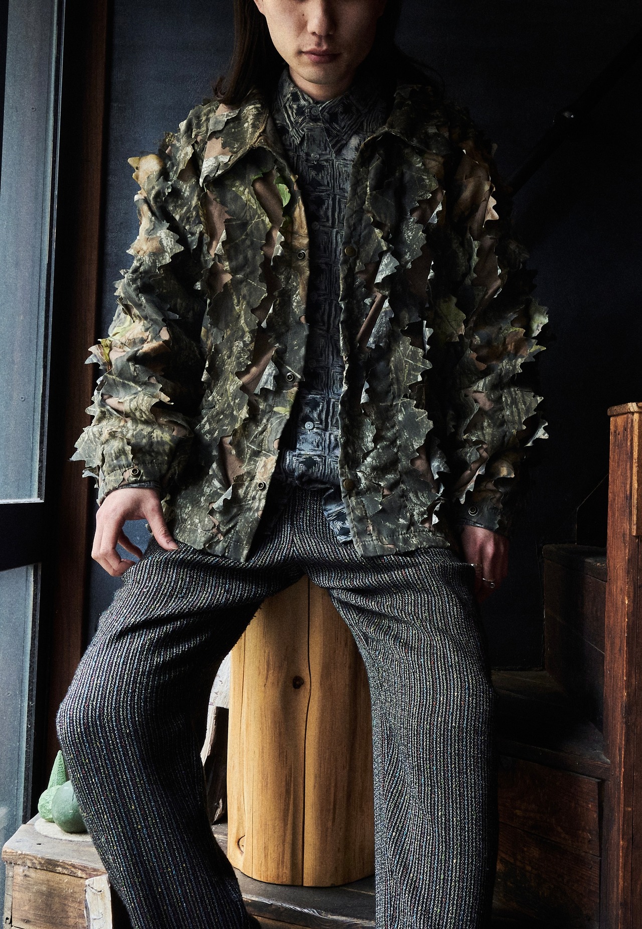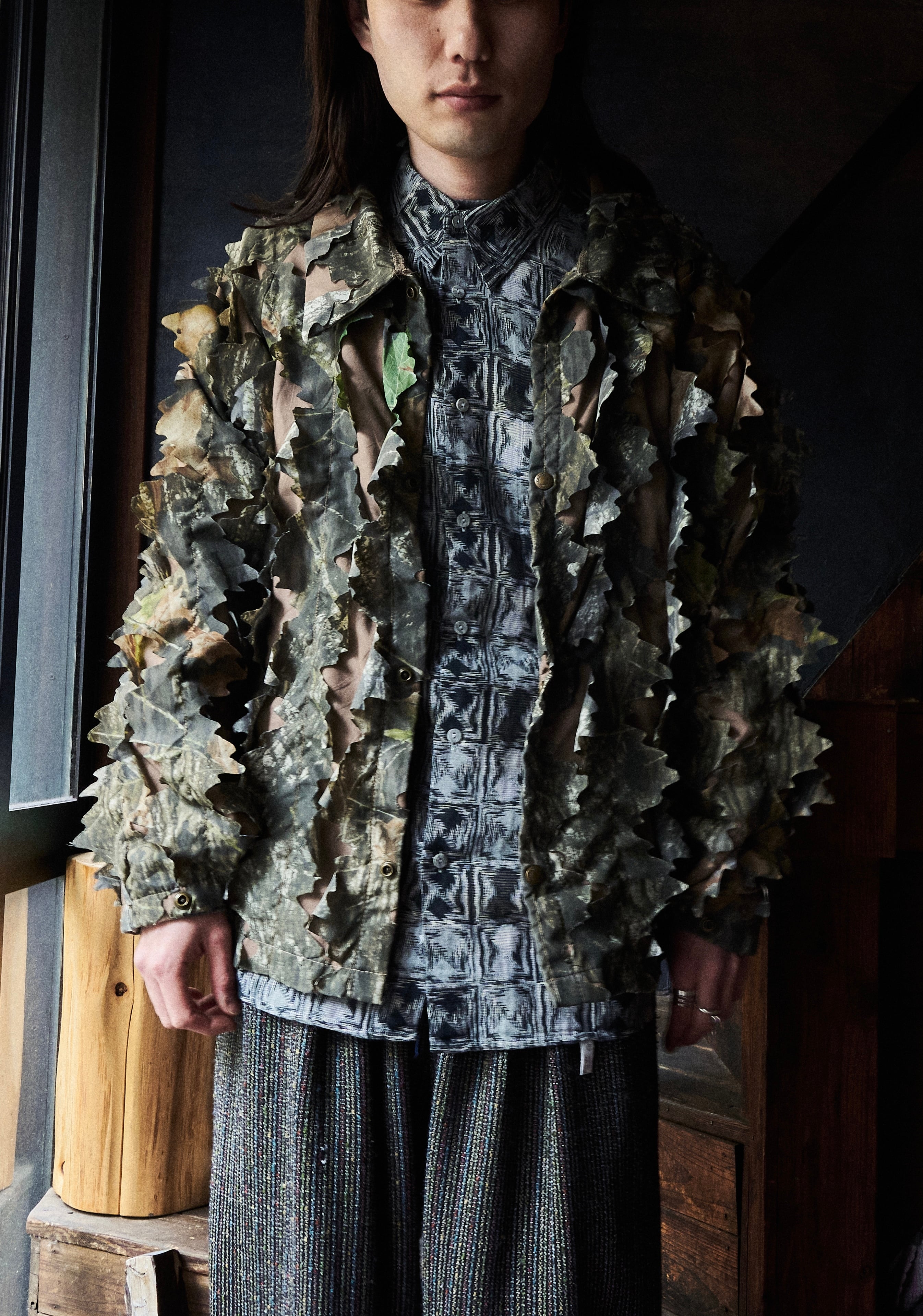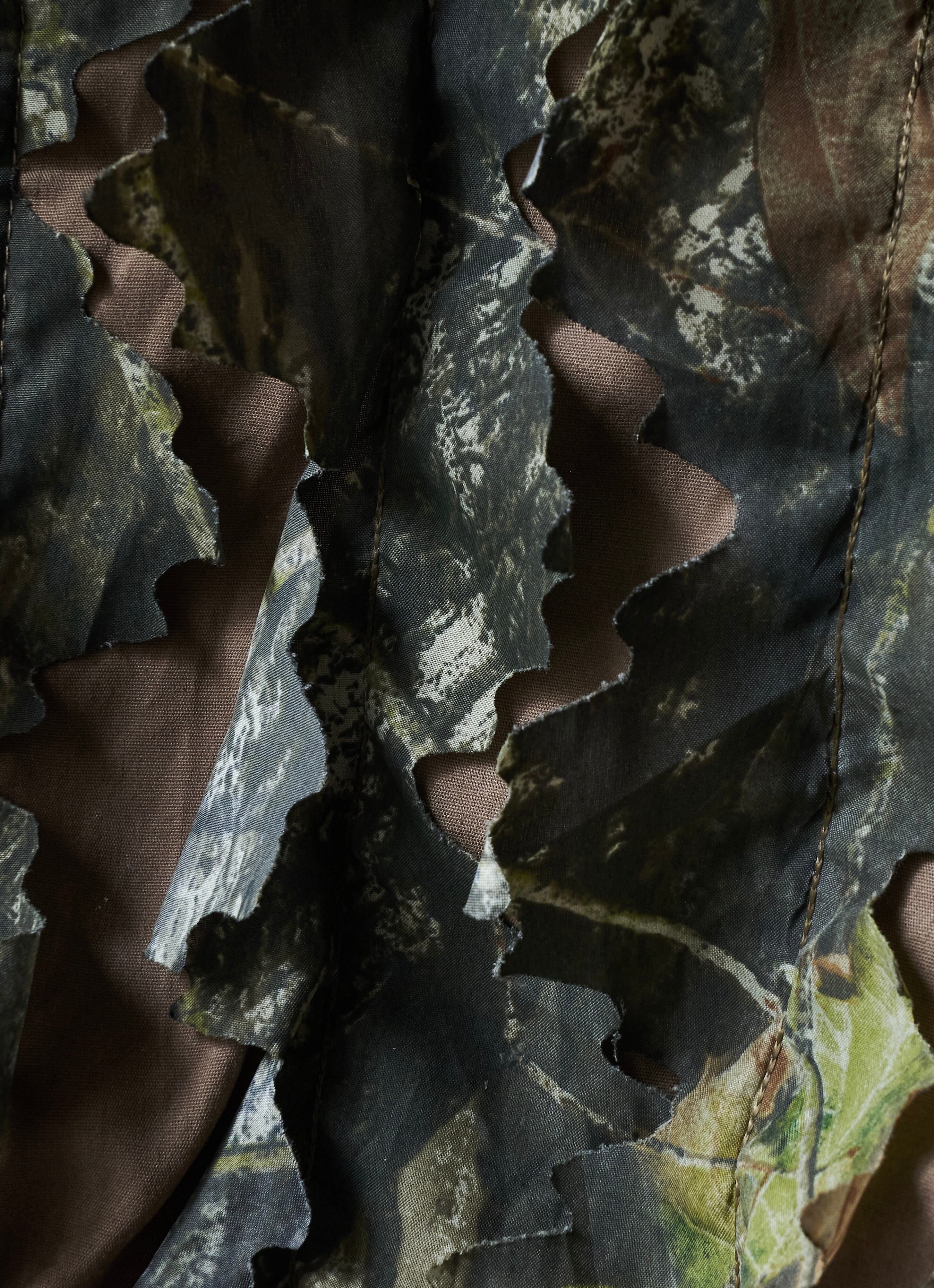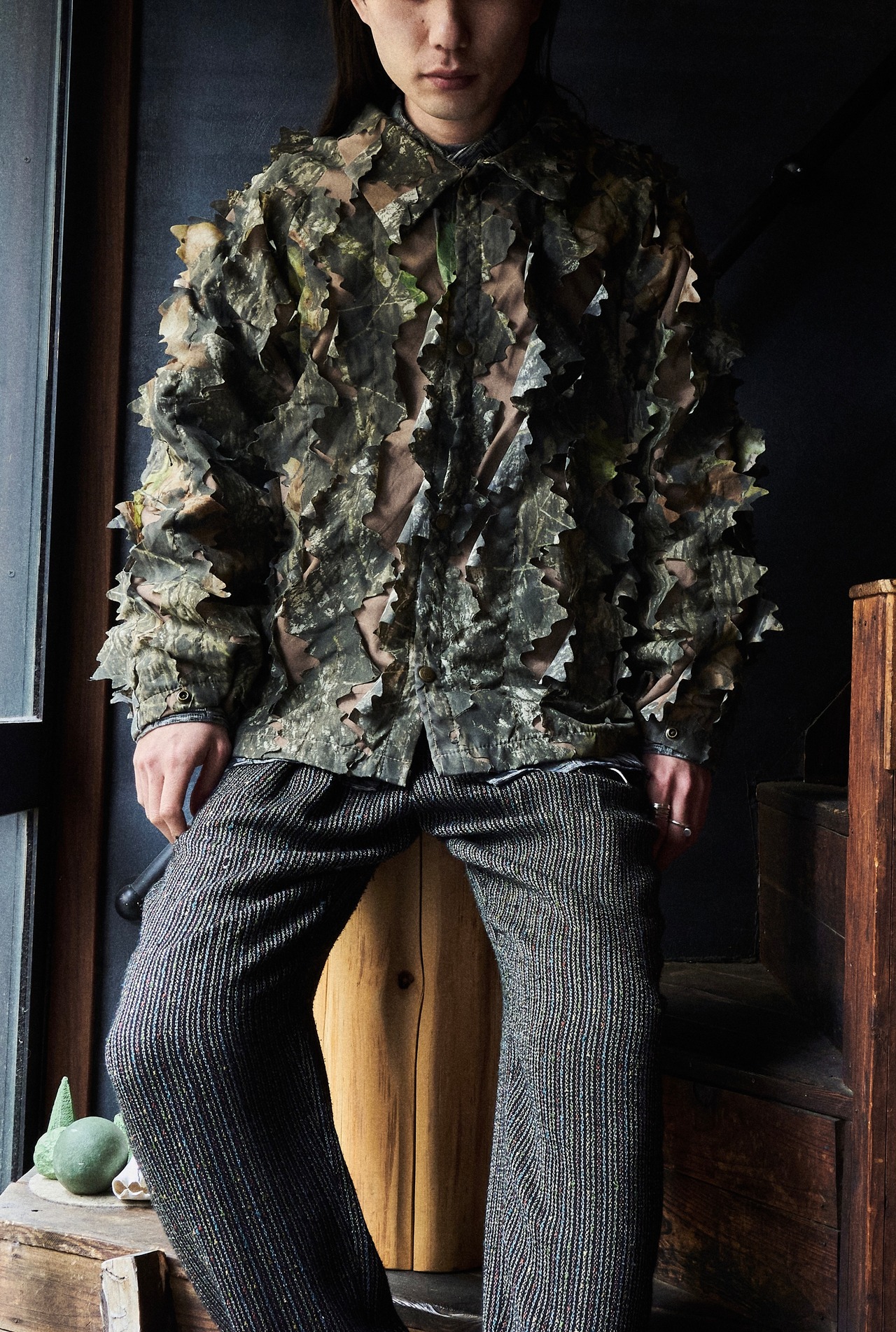 そんなカベラスの服でも一際目立つギリージャケットはハンターやスナイパーが周囲の環境(草木や土)に擬態し、視認性を極限まで下げるための迷彩服であります。