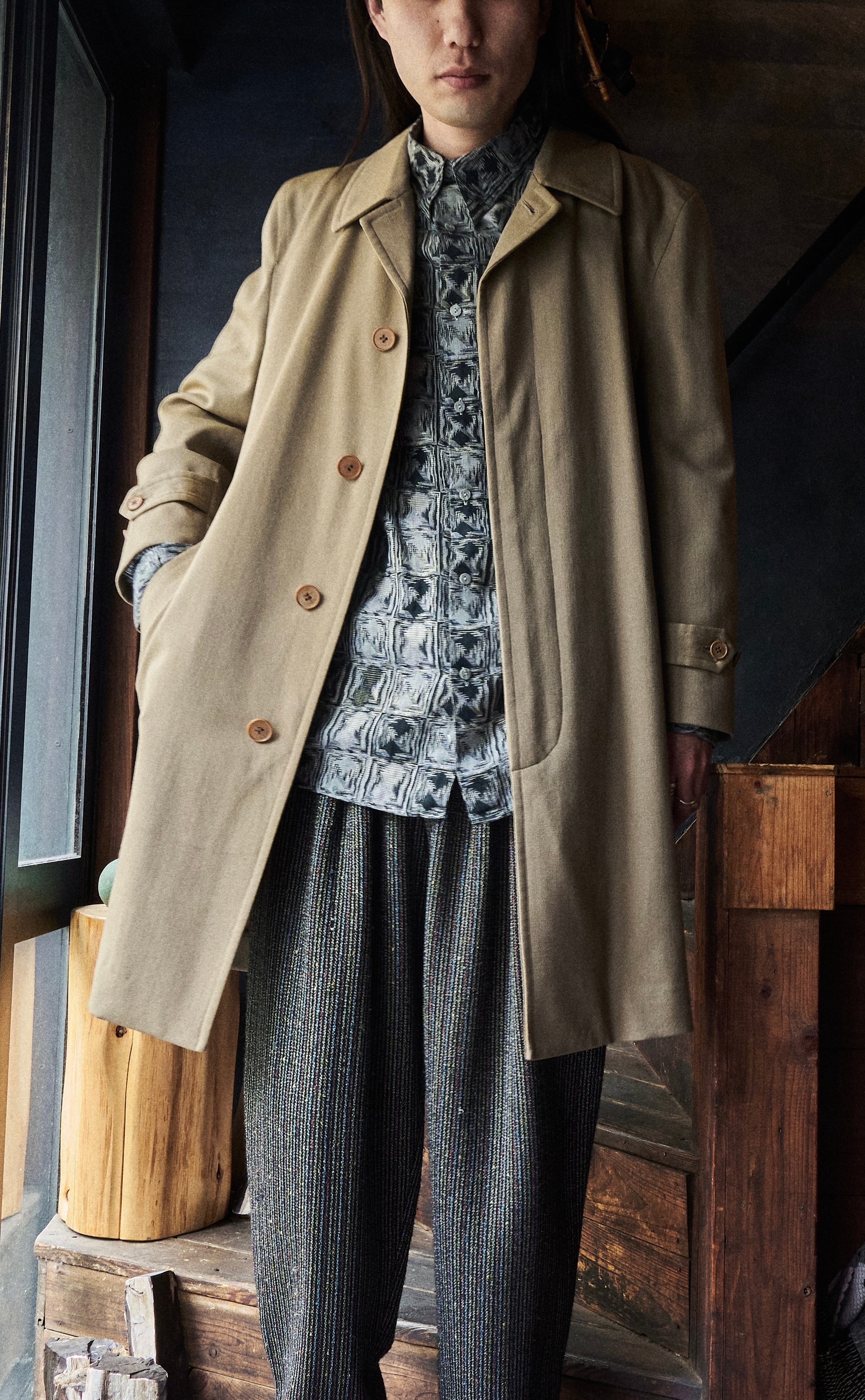 着てみると軽さもありジャケット感覚で来て頂けるコート。