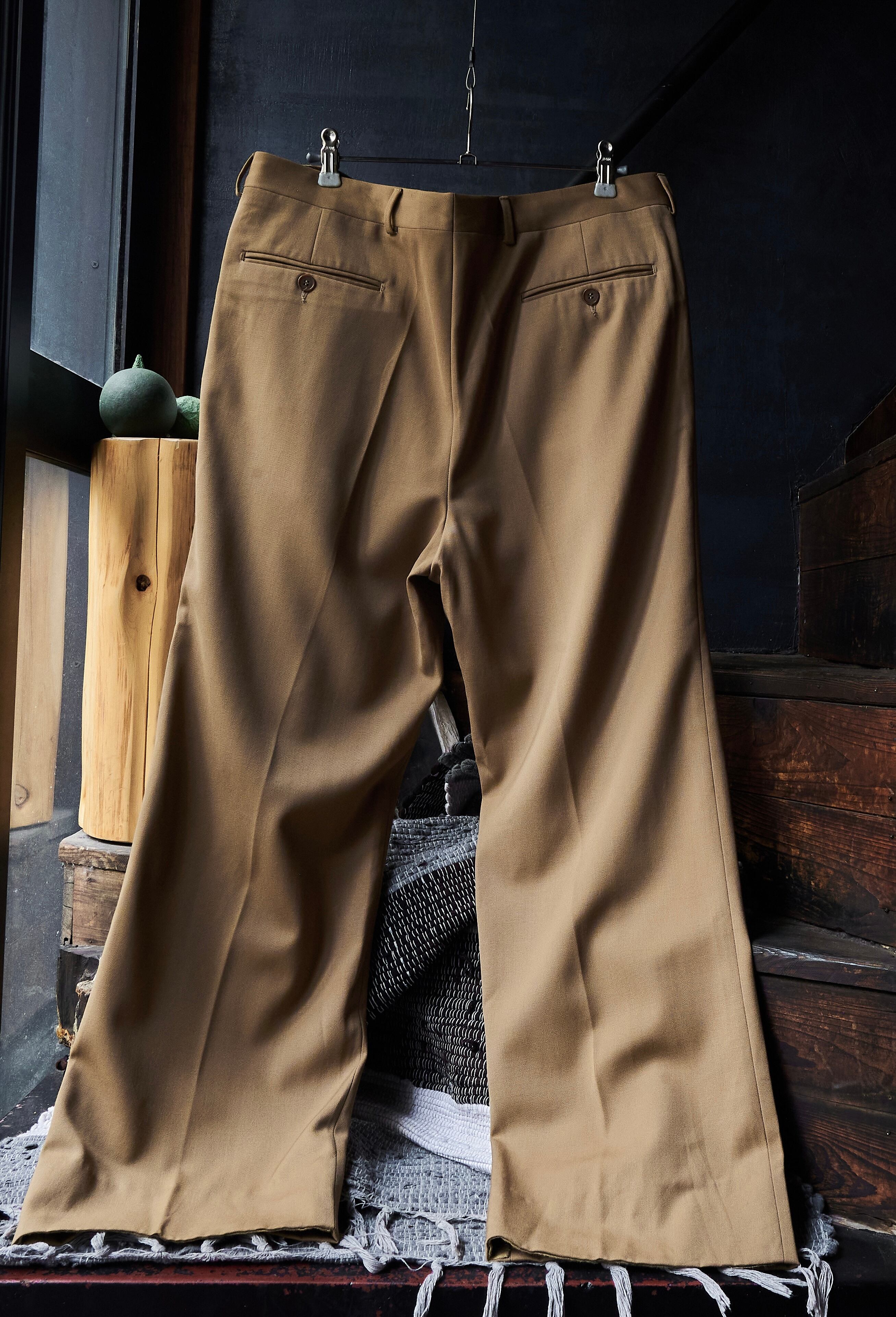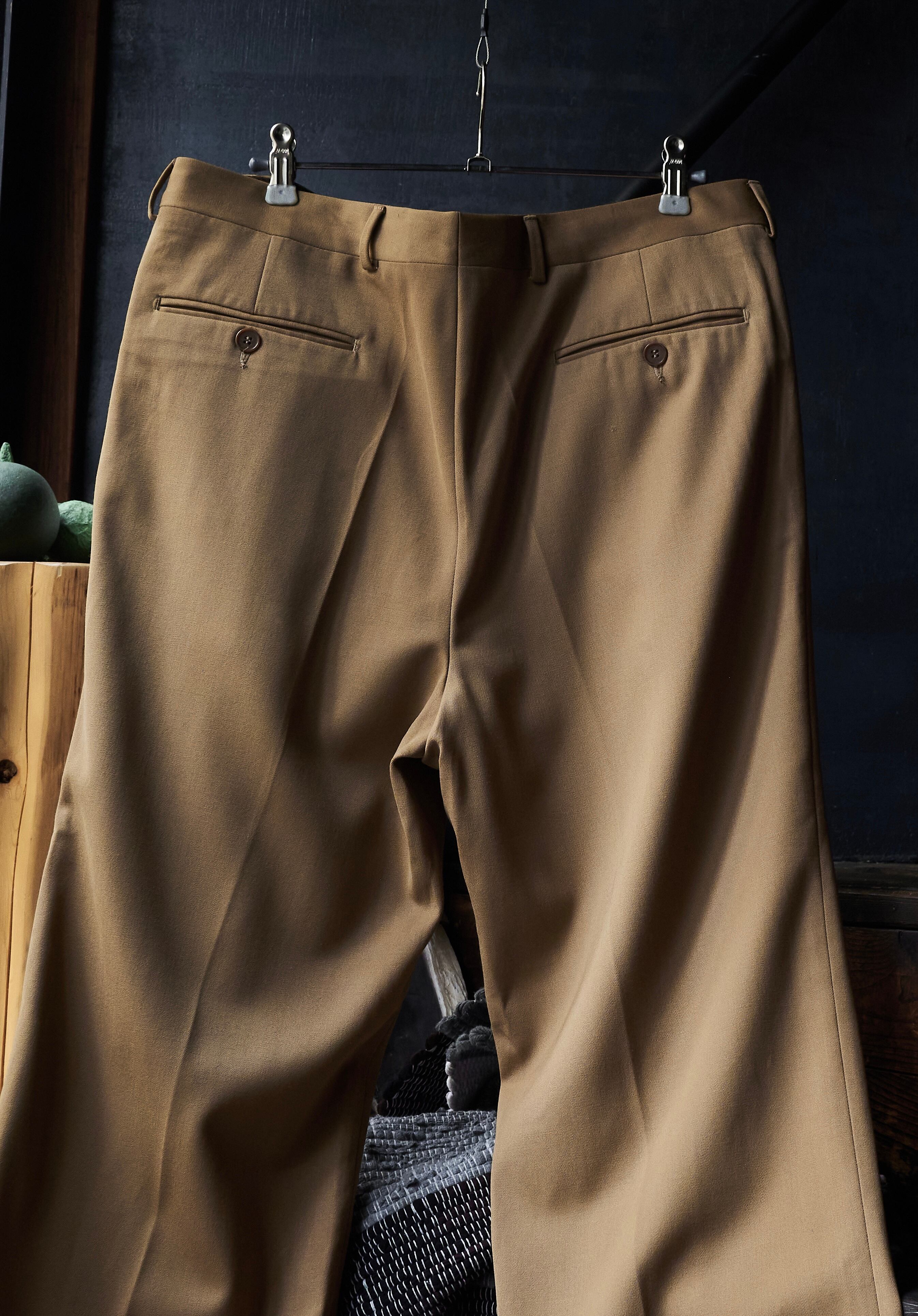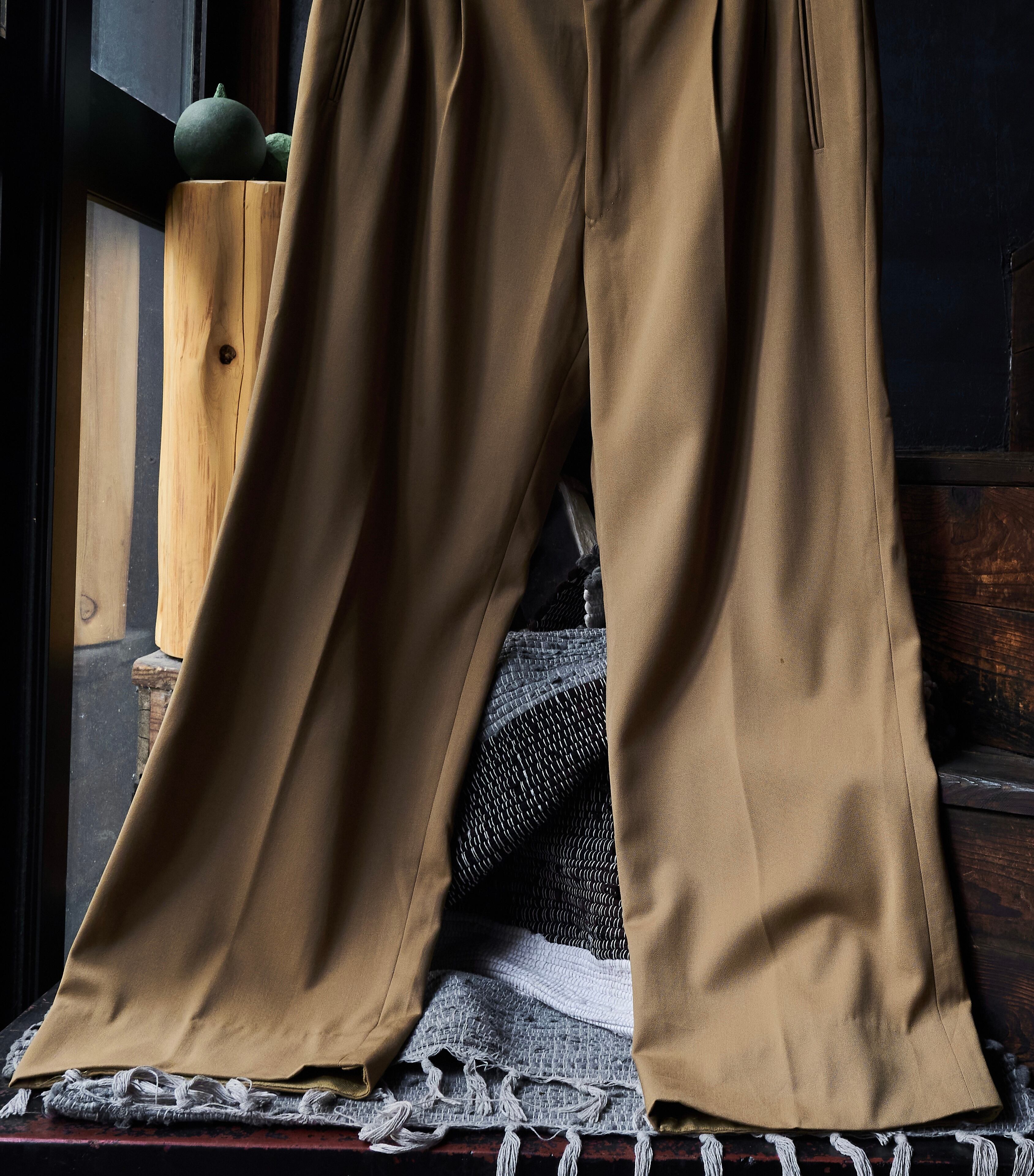 今回はマスタードカラーの素晴らしいオールシーズンウールを使用したスラックス。