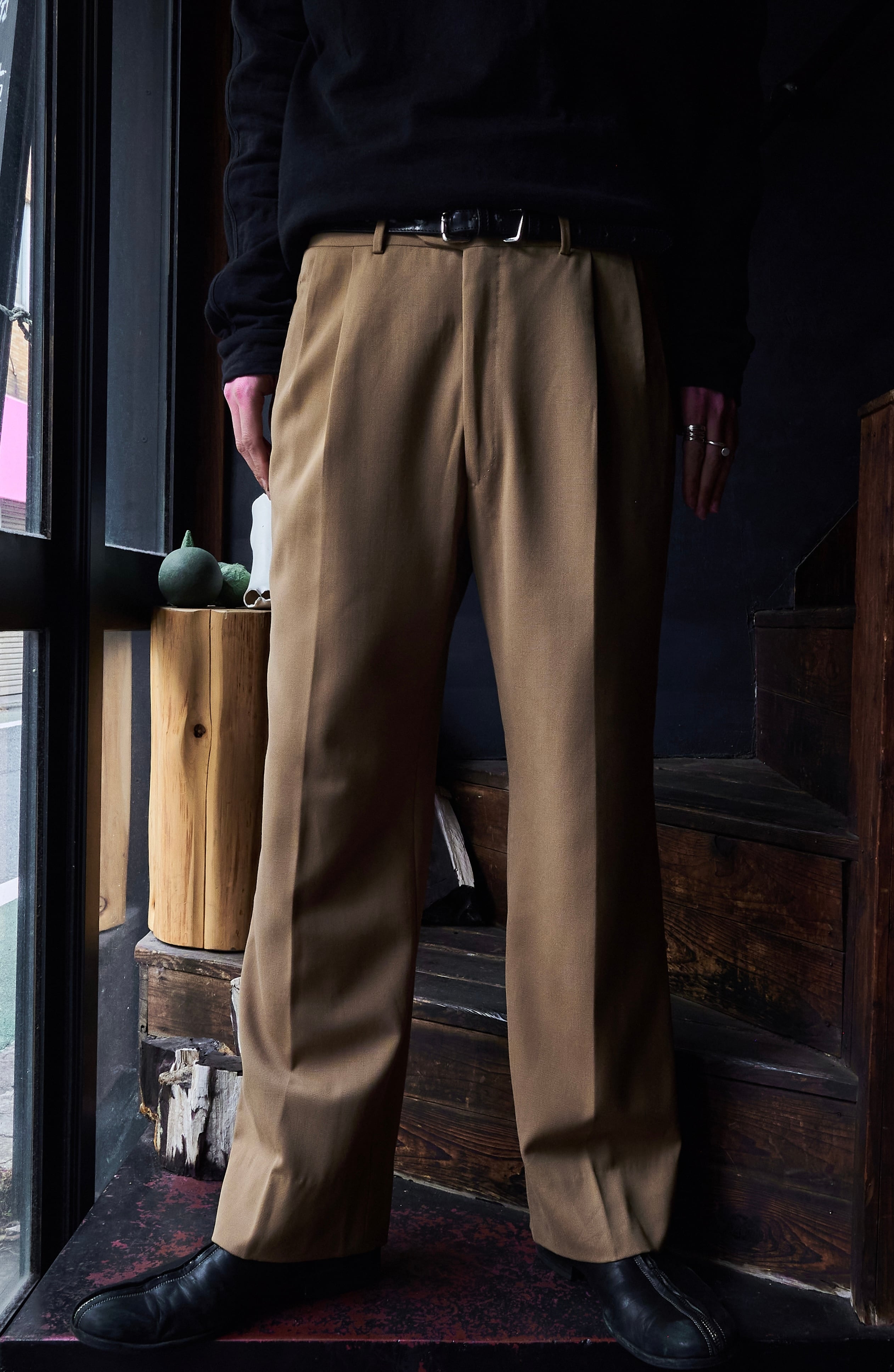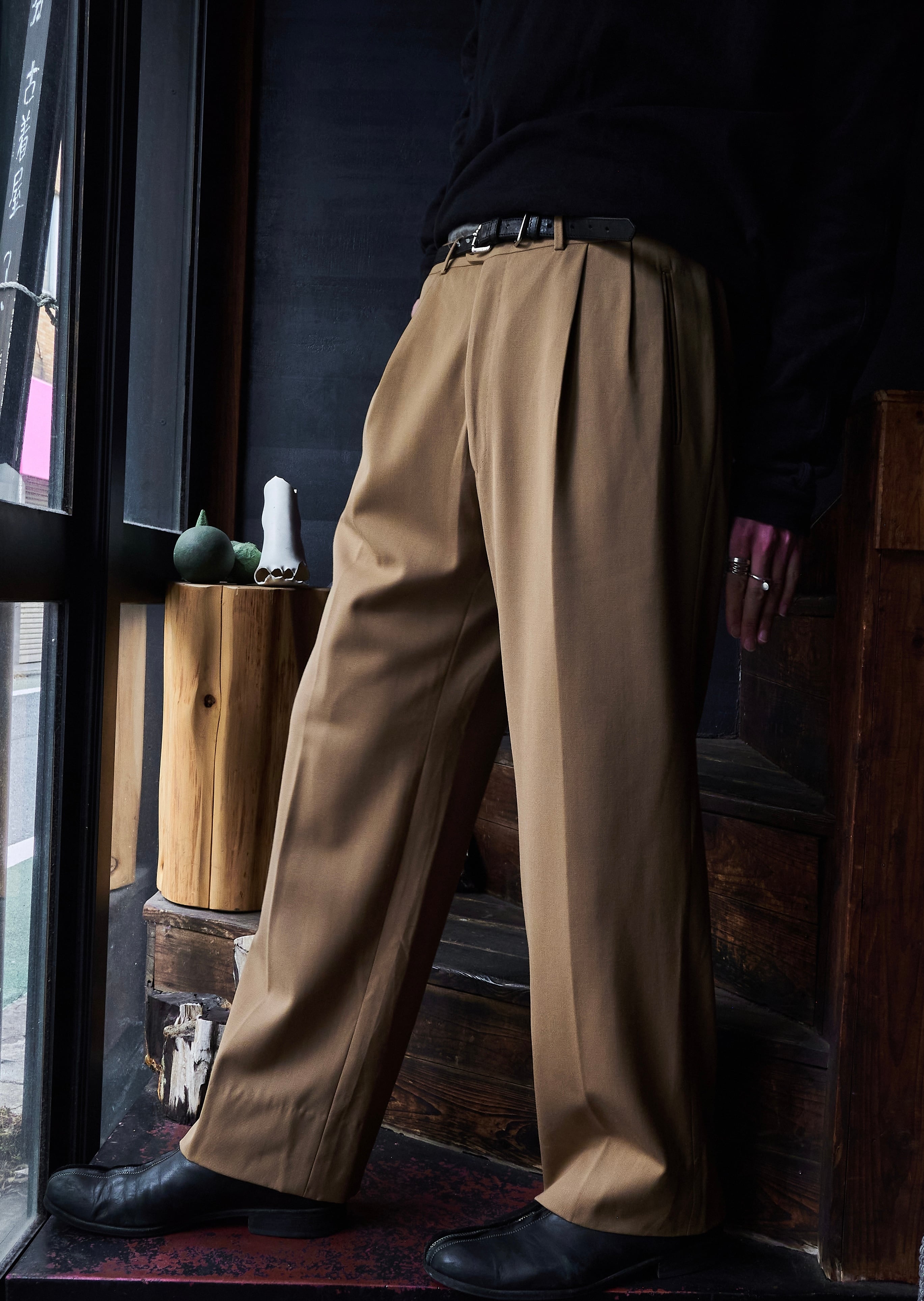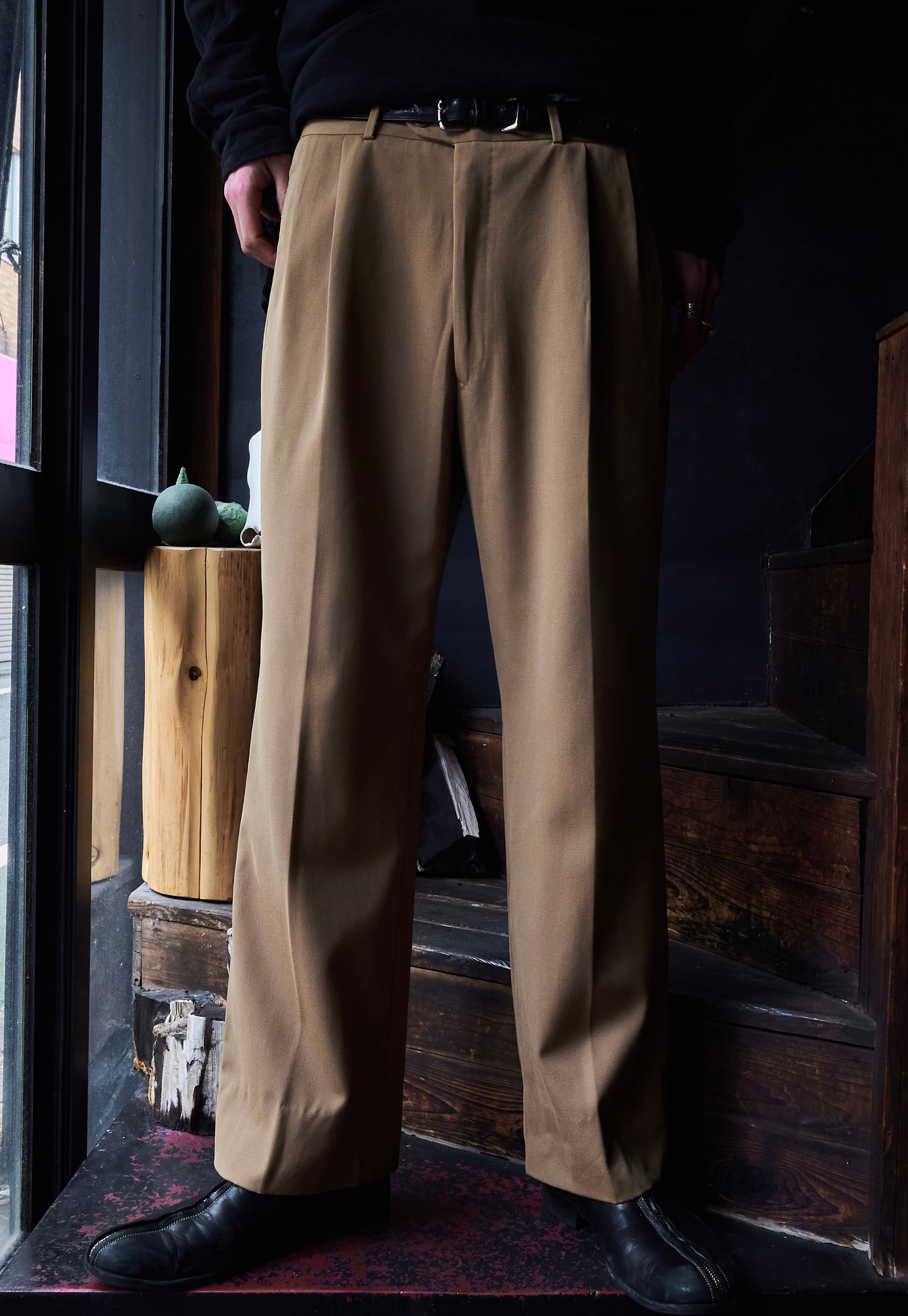 今回はマスタードカラーの素晴らしいオールシーズンウールを使用したスラックス。