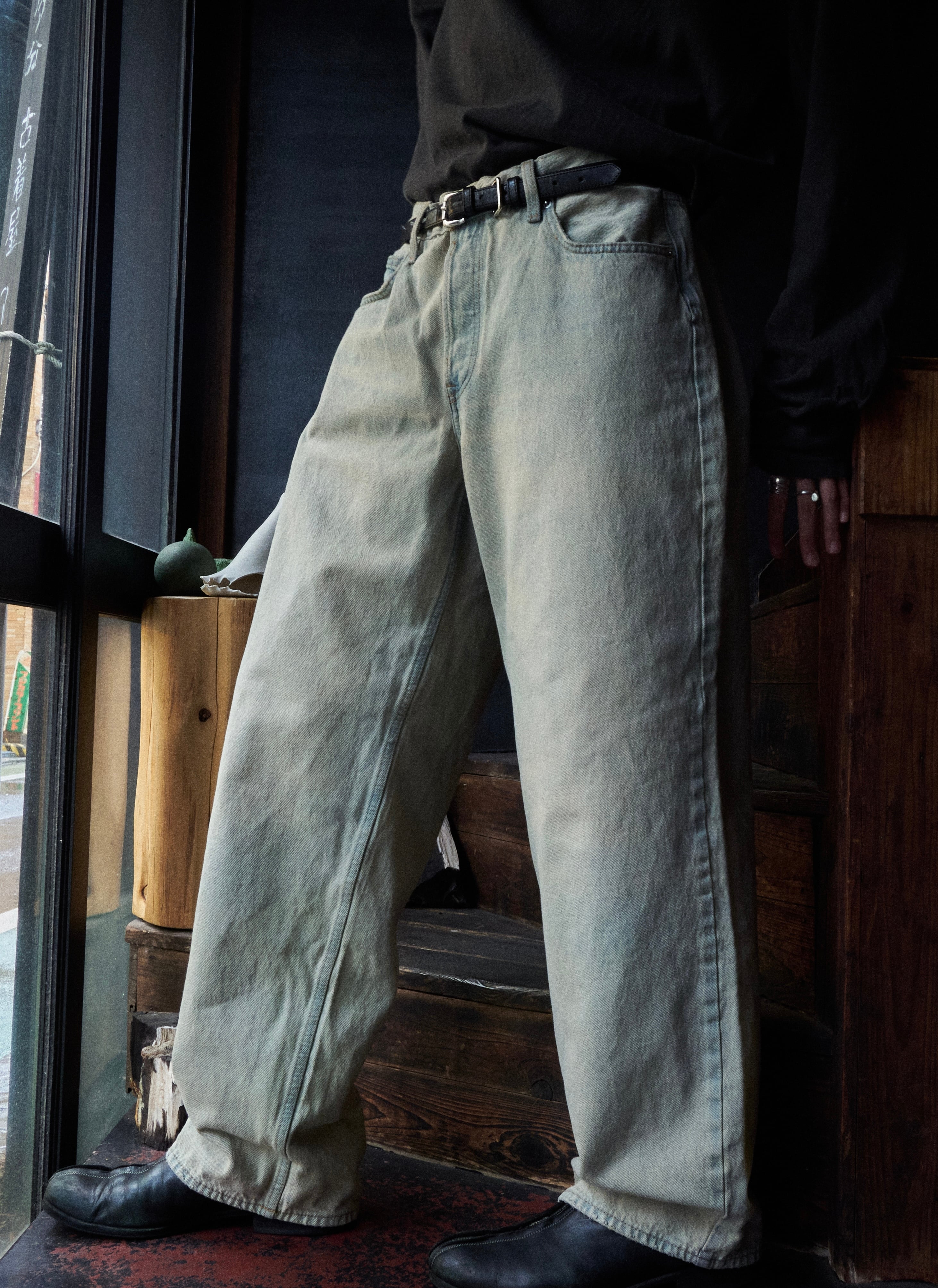 色抜けしたインディゴを精度高く再現加工したバギーデニム。