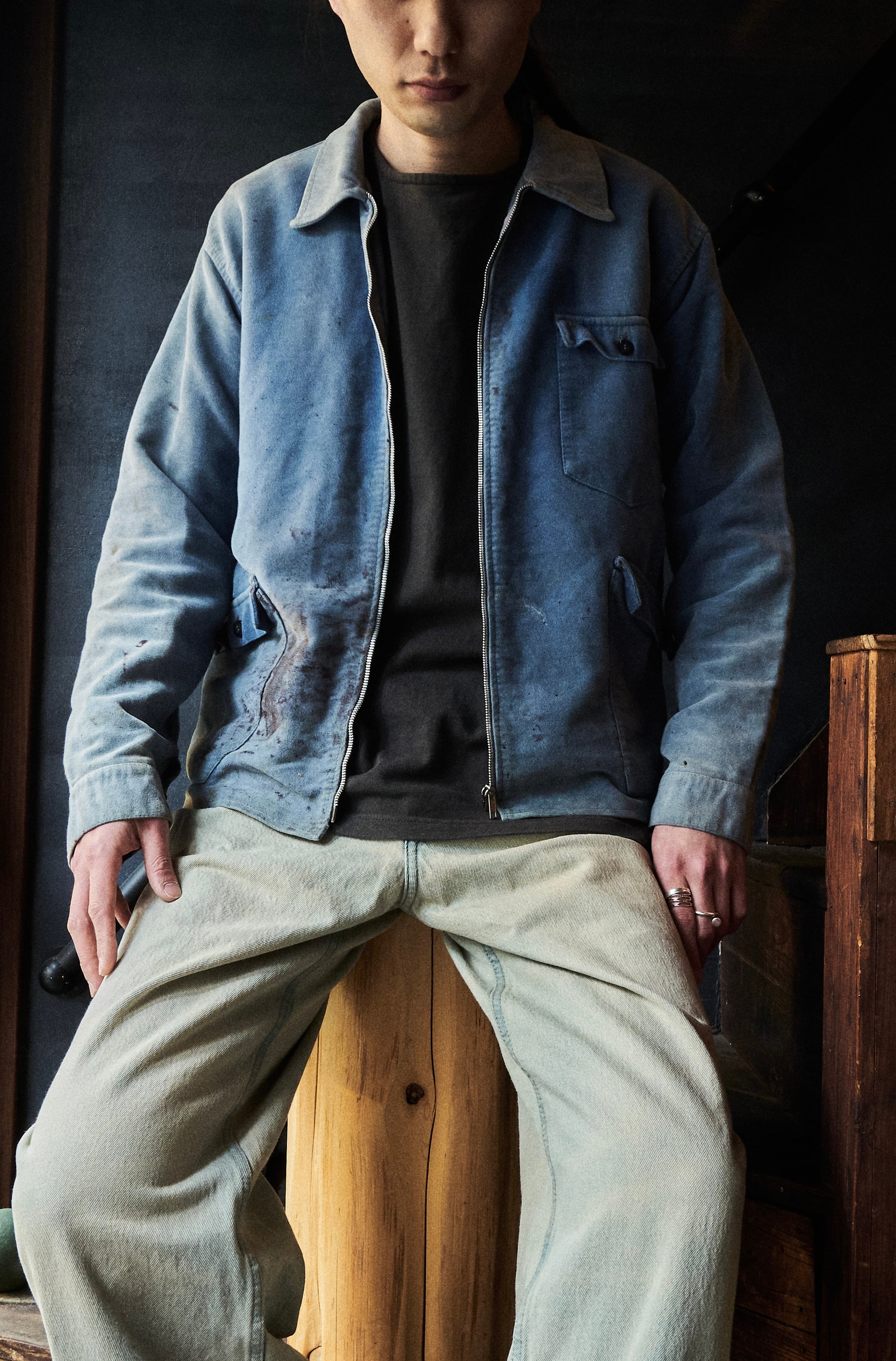 80s ITALY Fade paint zip-up moleskin jacket