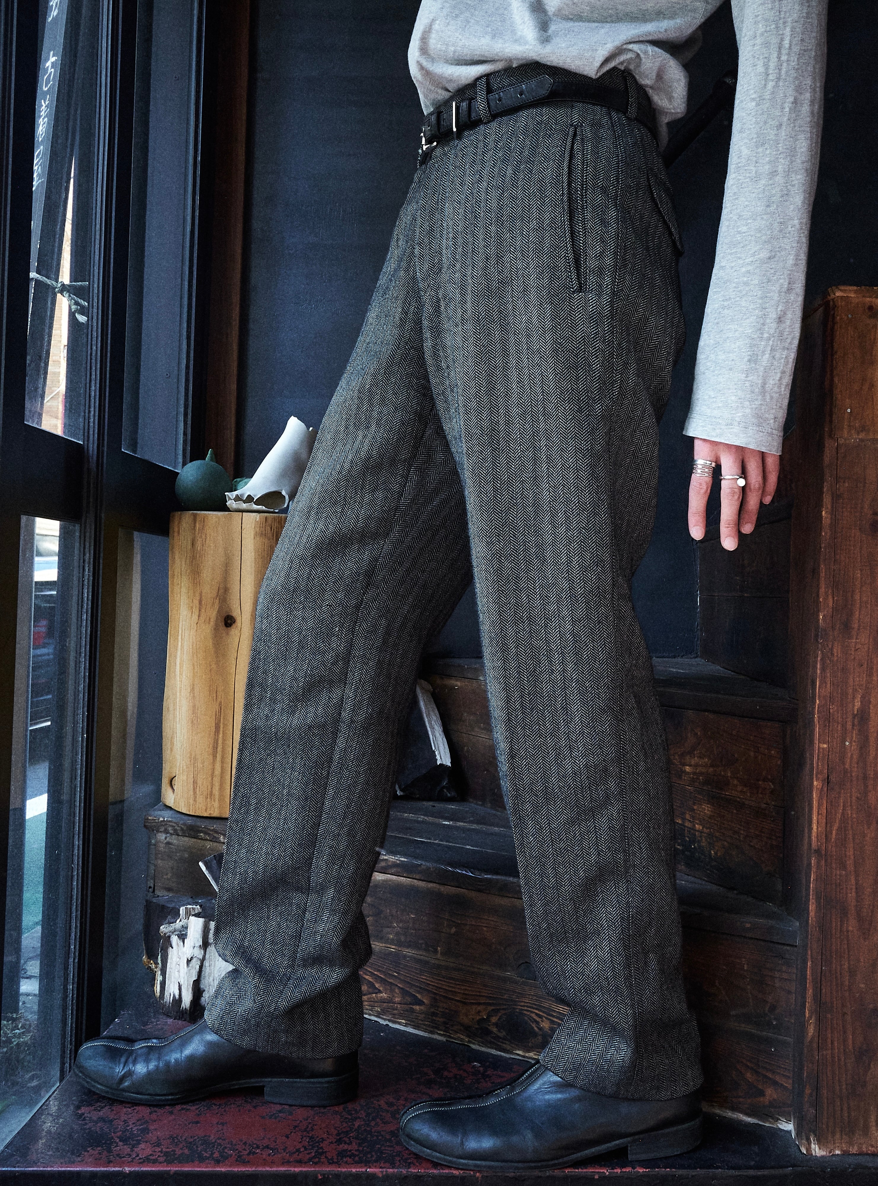サマーウールのここまでしっかりとしたヘリンボーンスラックスはあまり見かけないのでめっちゃおすすめです。