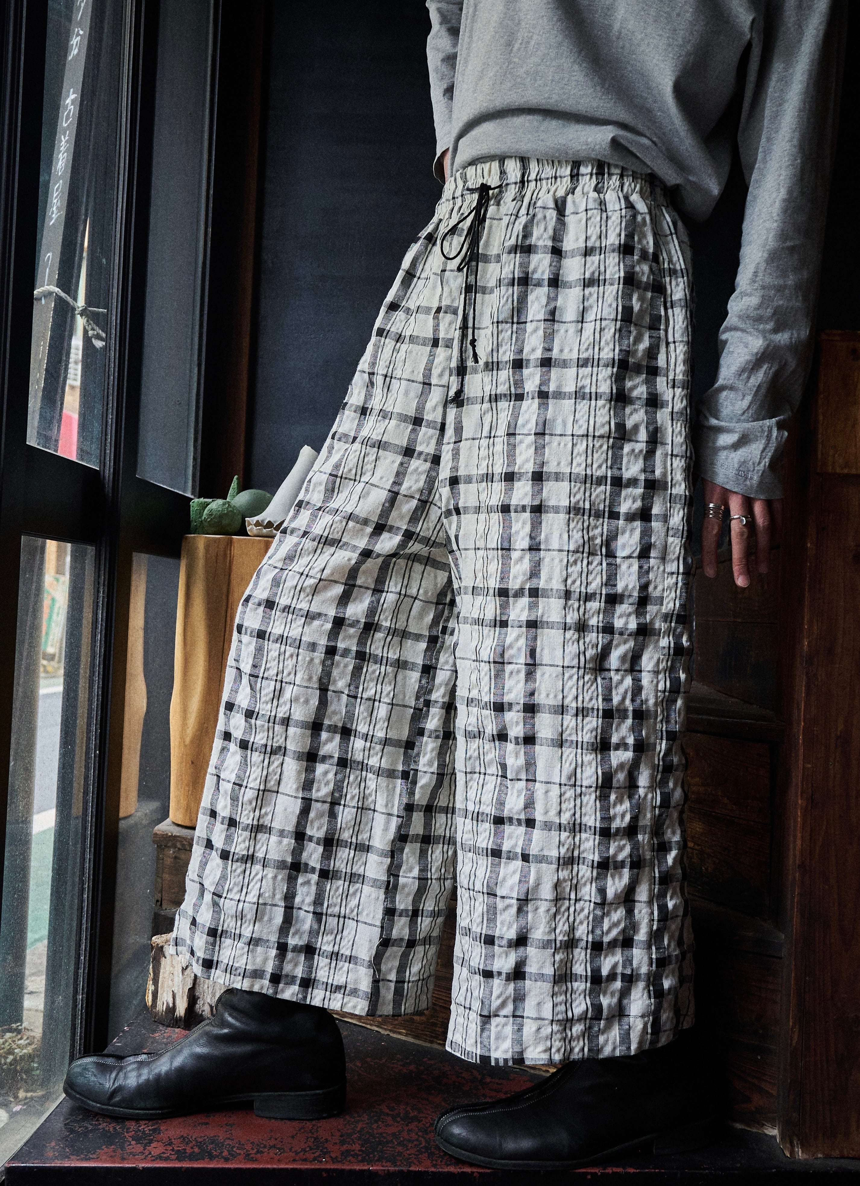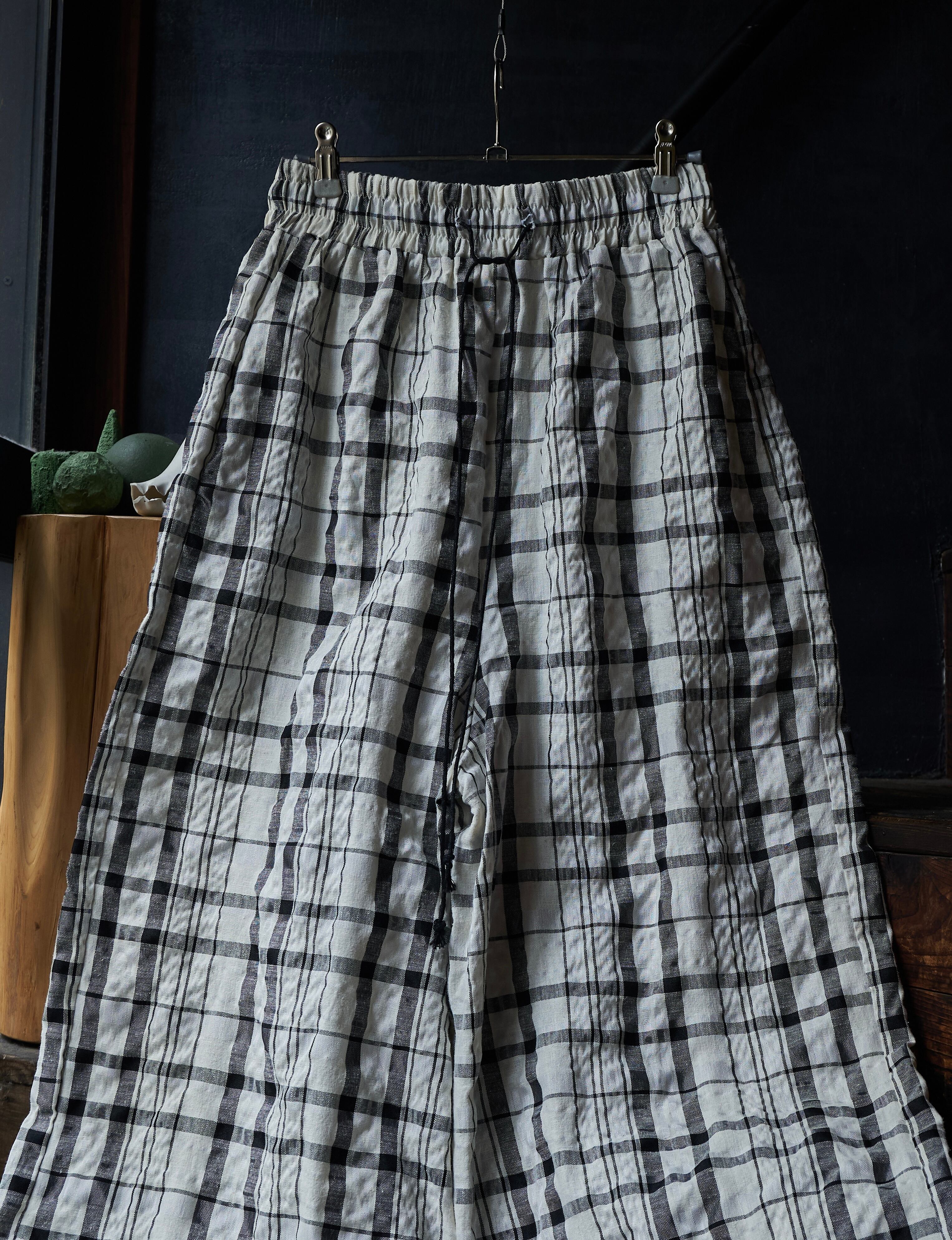 US 2010s Linen × poly Checked crinkled baggy cropped easy pants