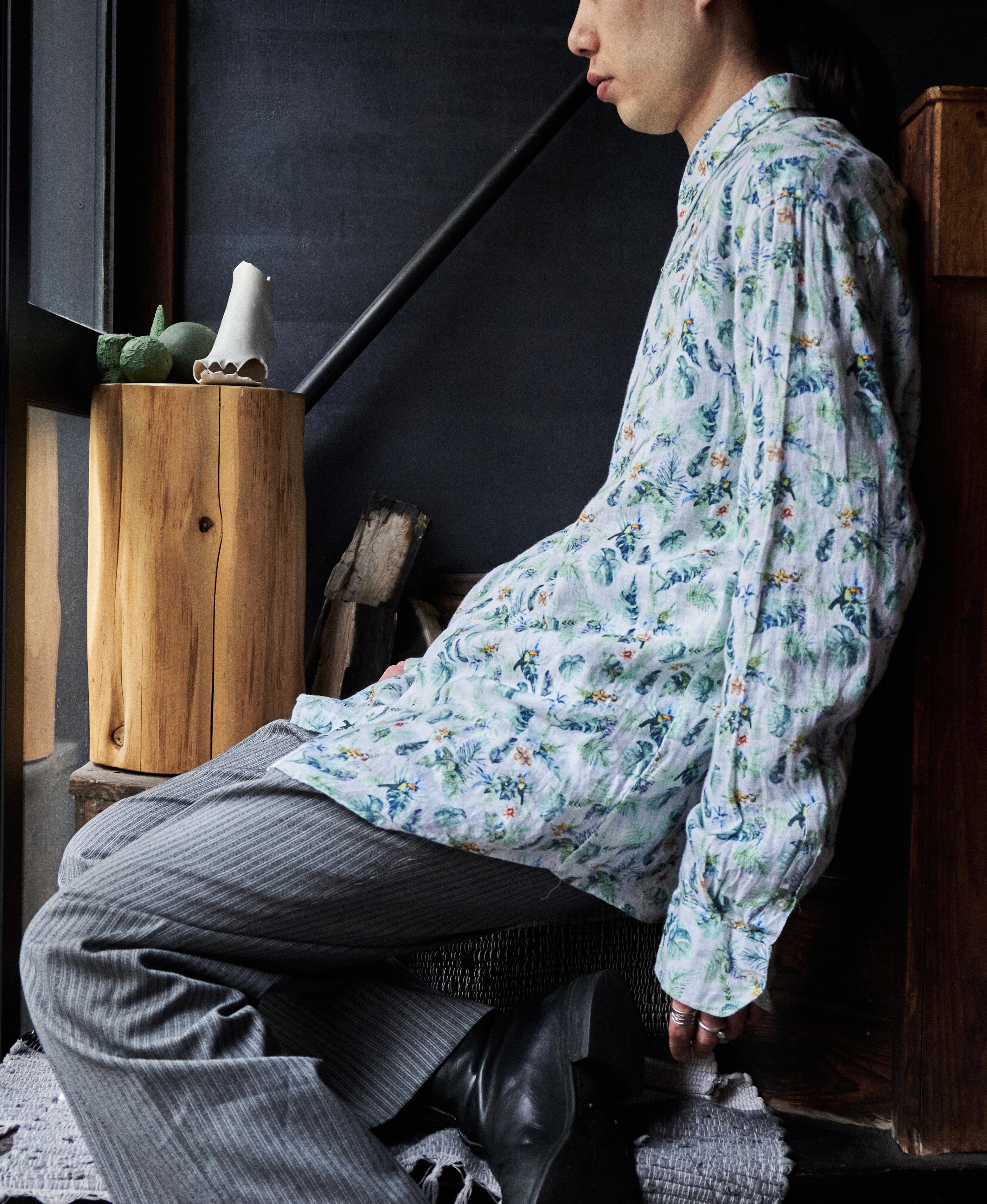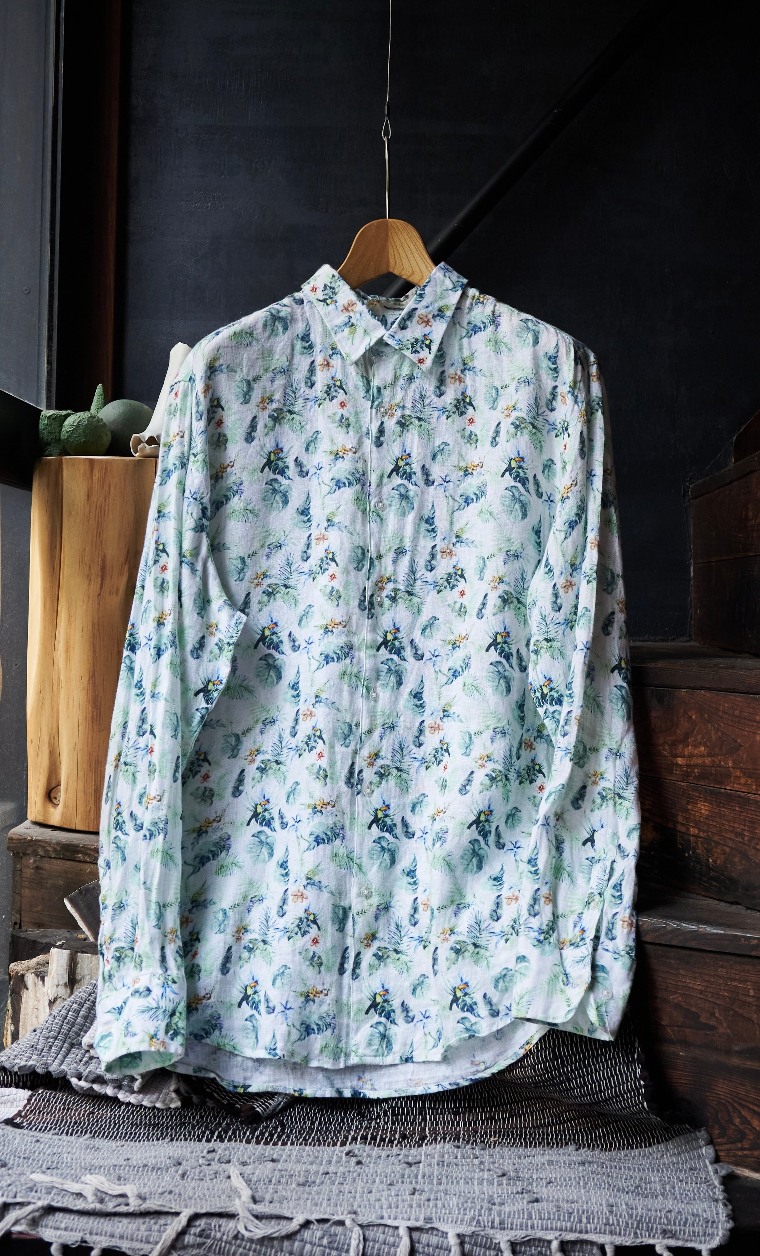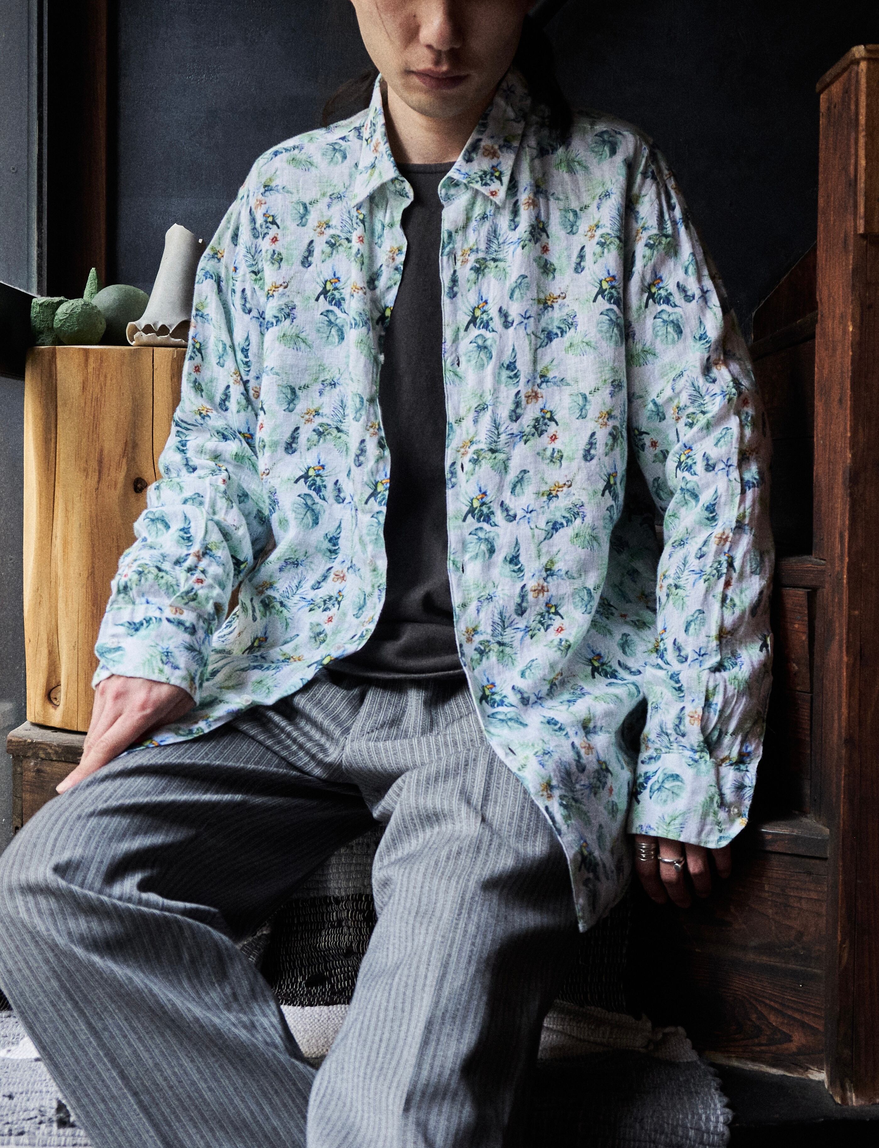 優しい柄で気持ち優しくなりそうなボタニカルリネンシャツ。