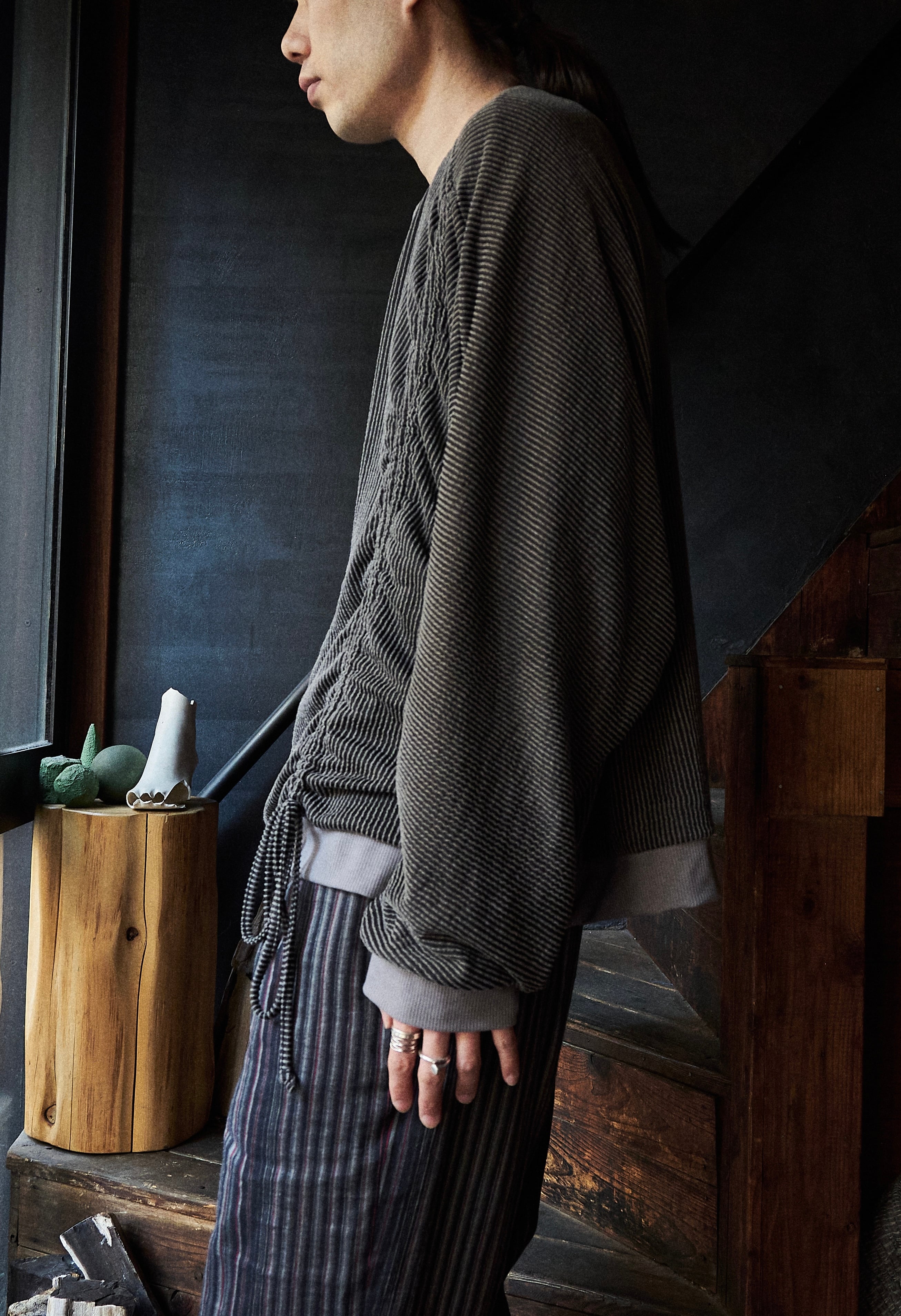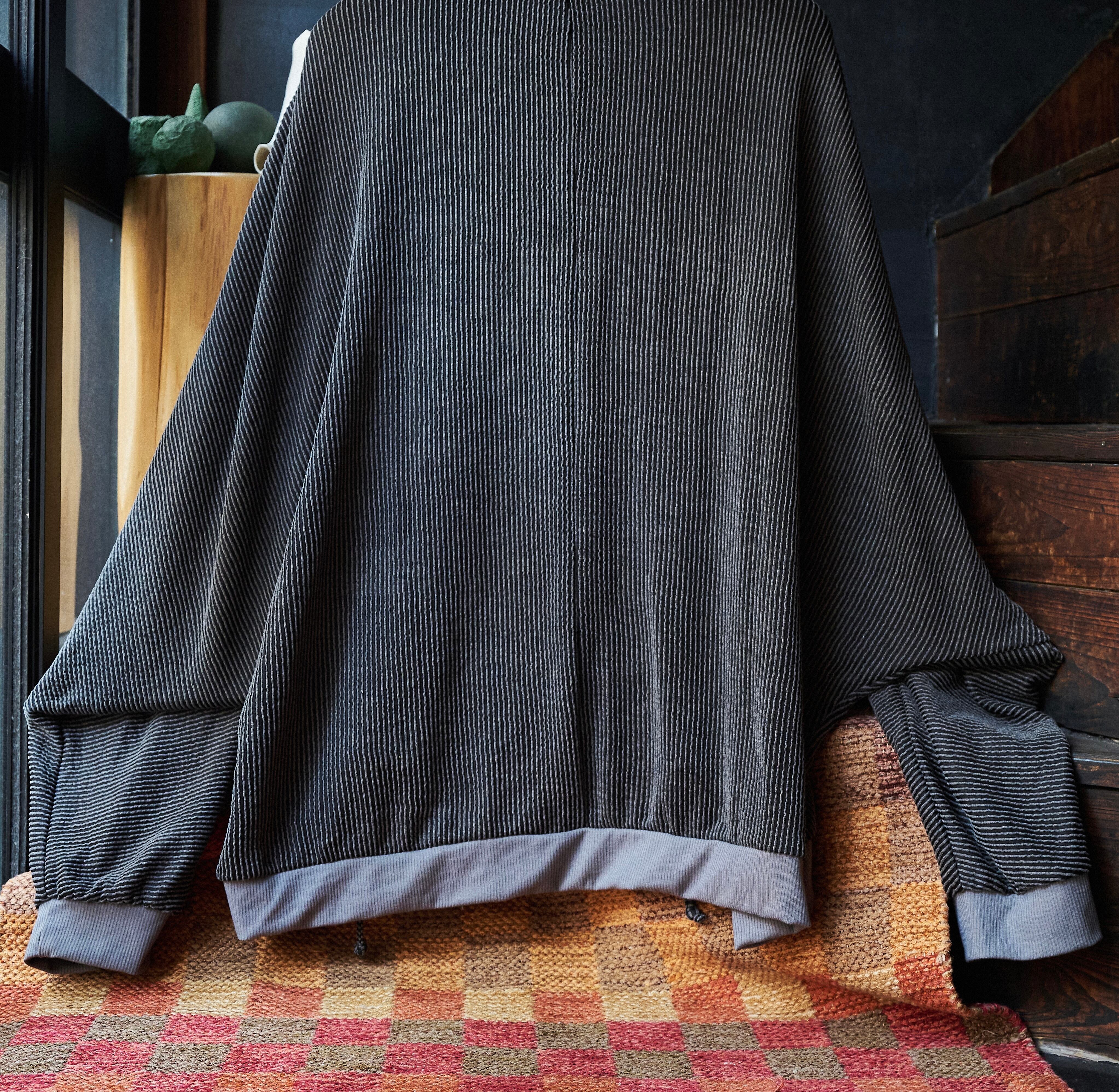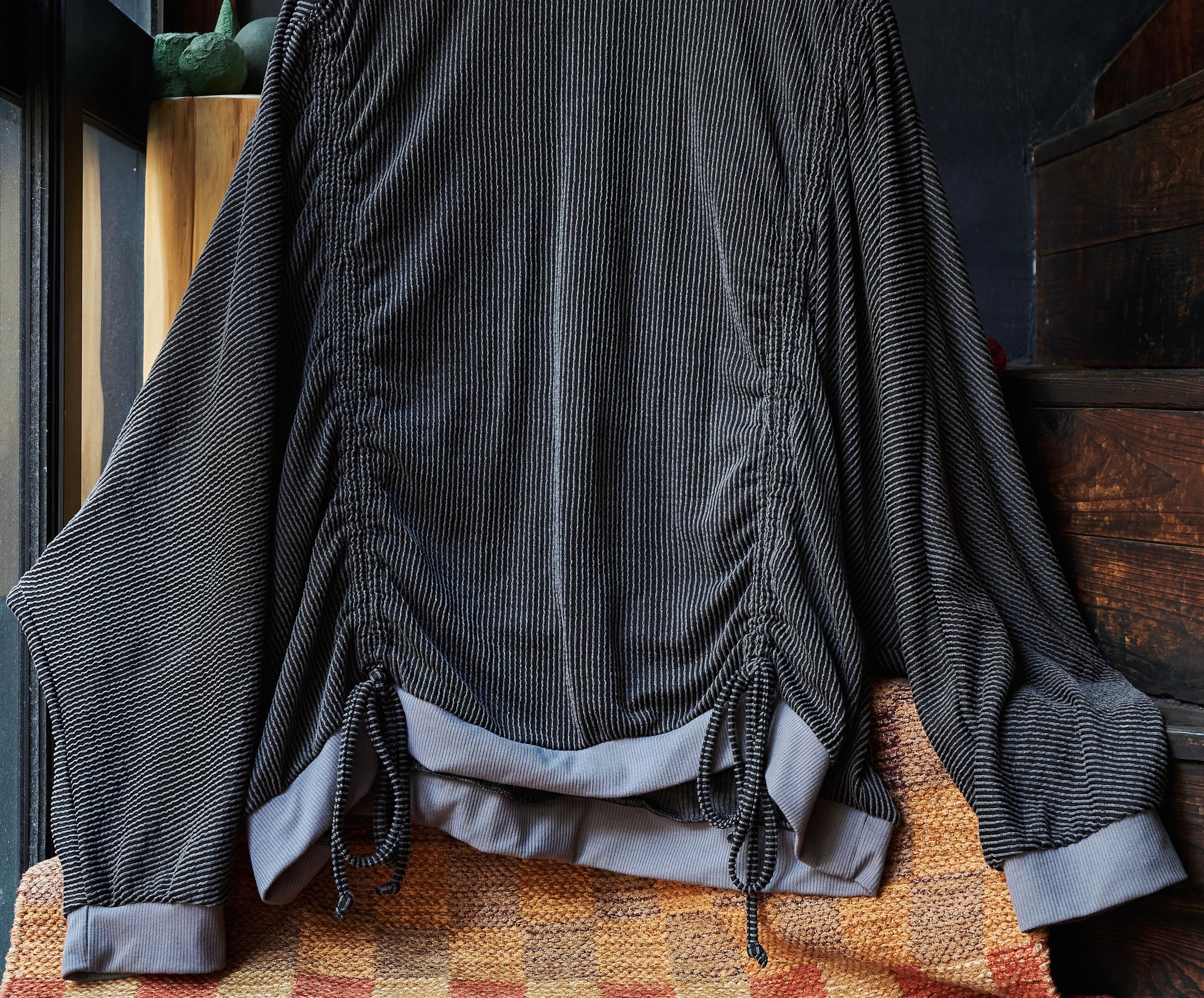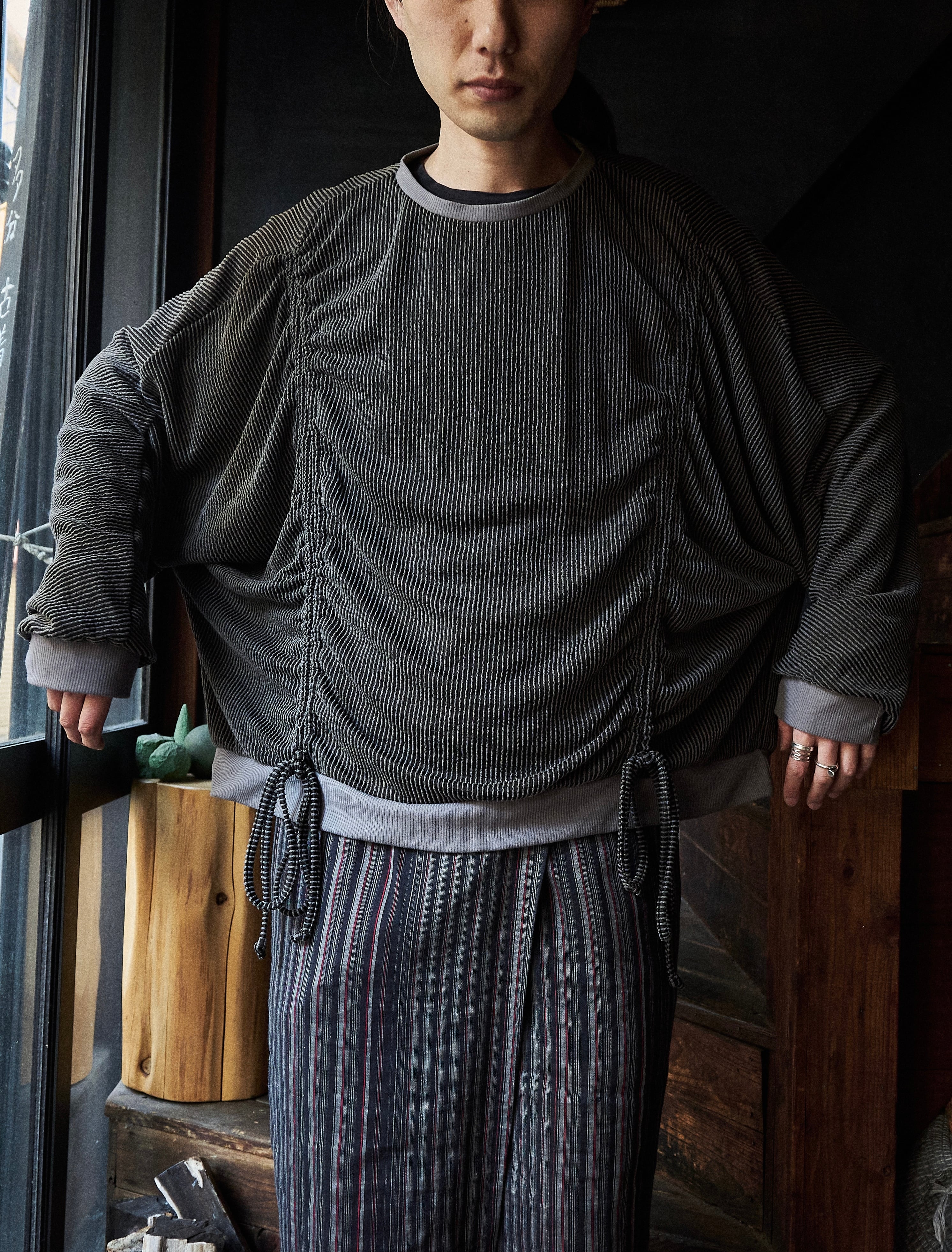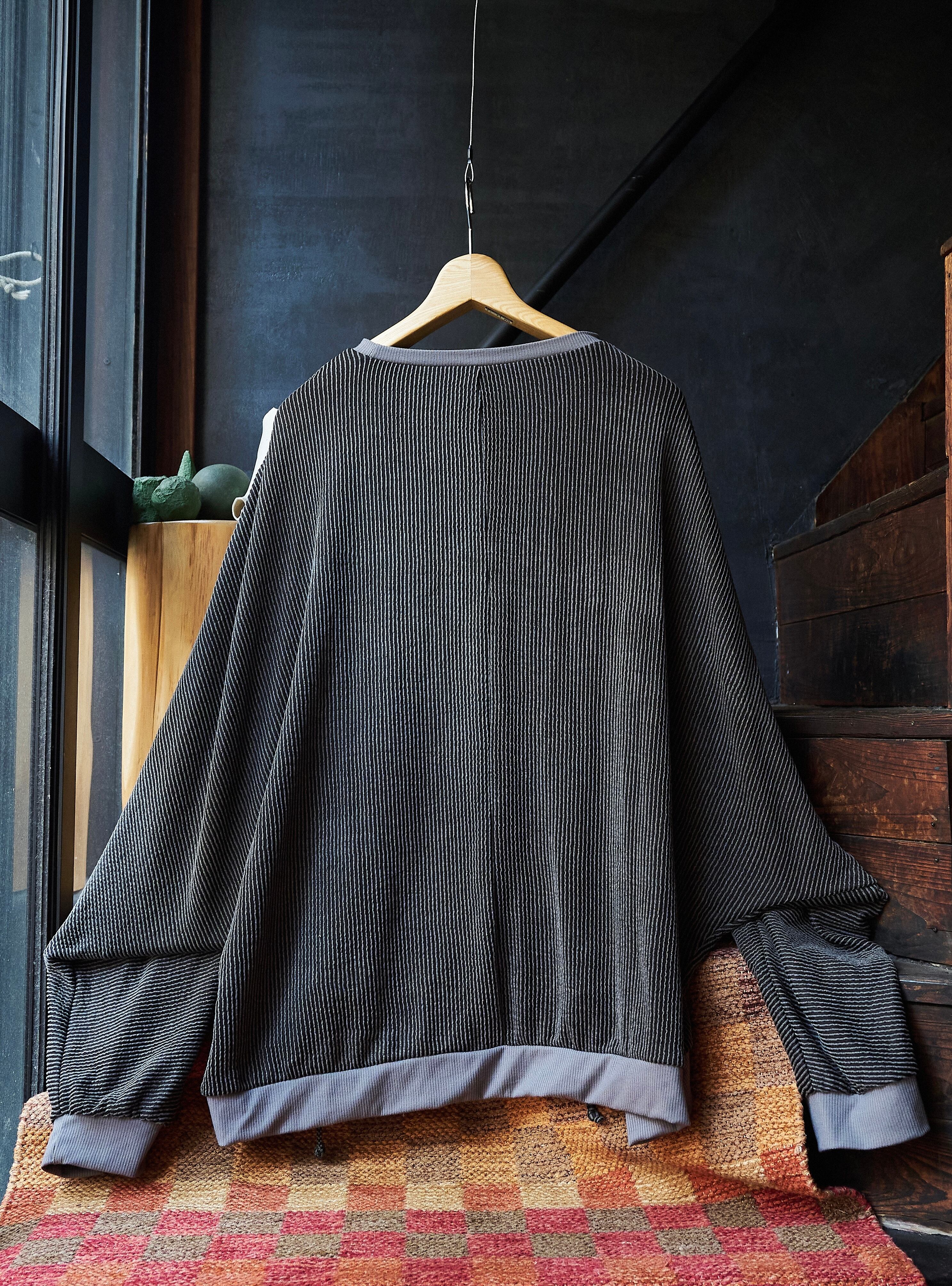 ワイドシルエットに凹凸ある織りで作られたストライプがかっこいいプルオーバー。