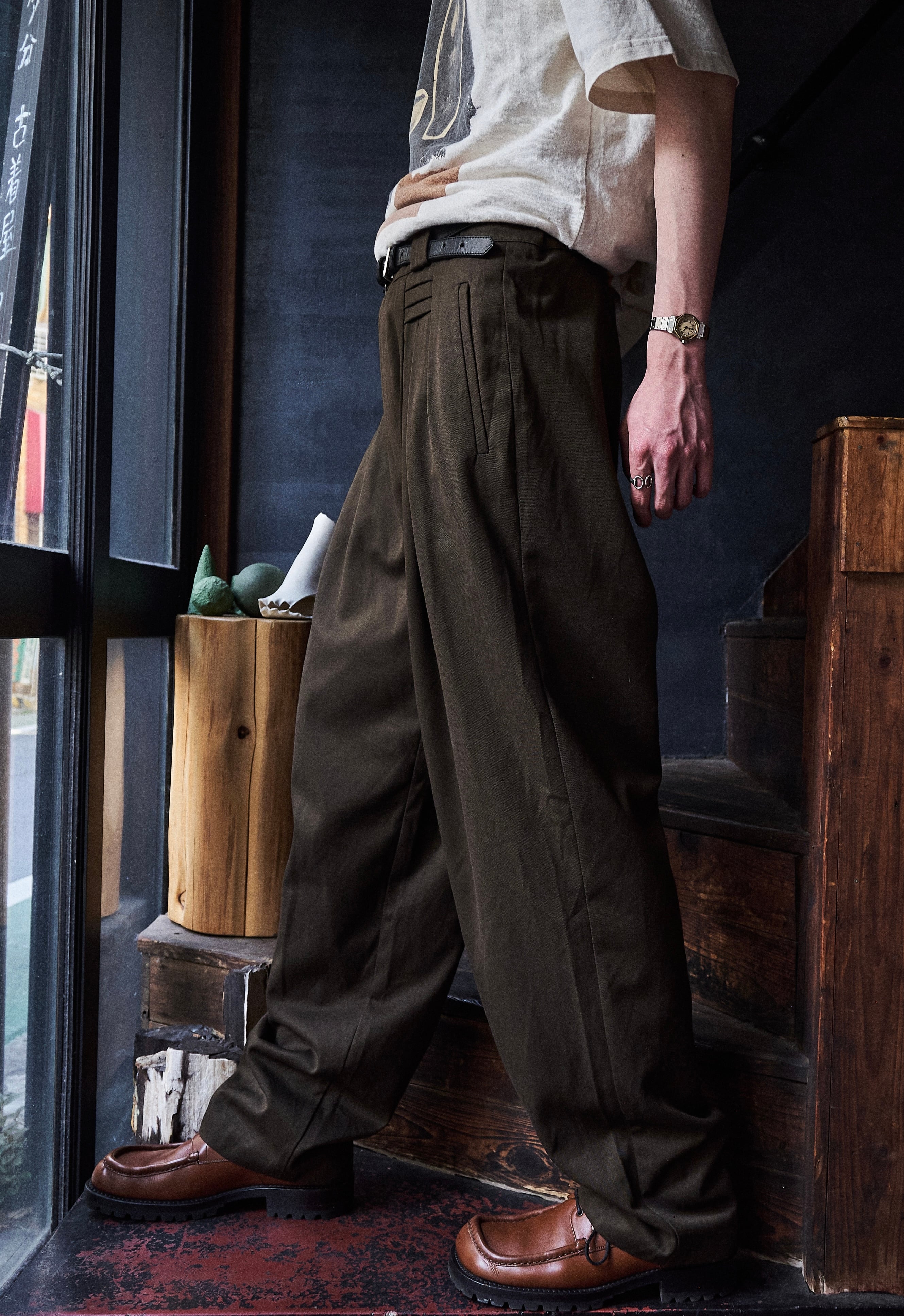 大好きな80年代ヨーロッパのスラックスの中でもたまーにあるこの鬼プリーツ。ウエストのタックデザインの効いたスラックス。