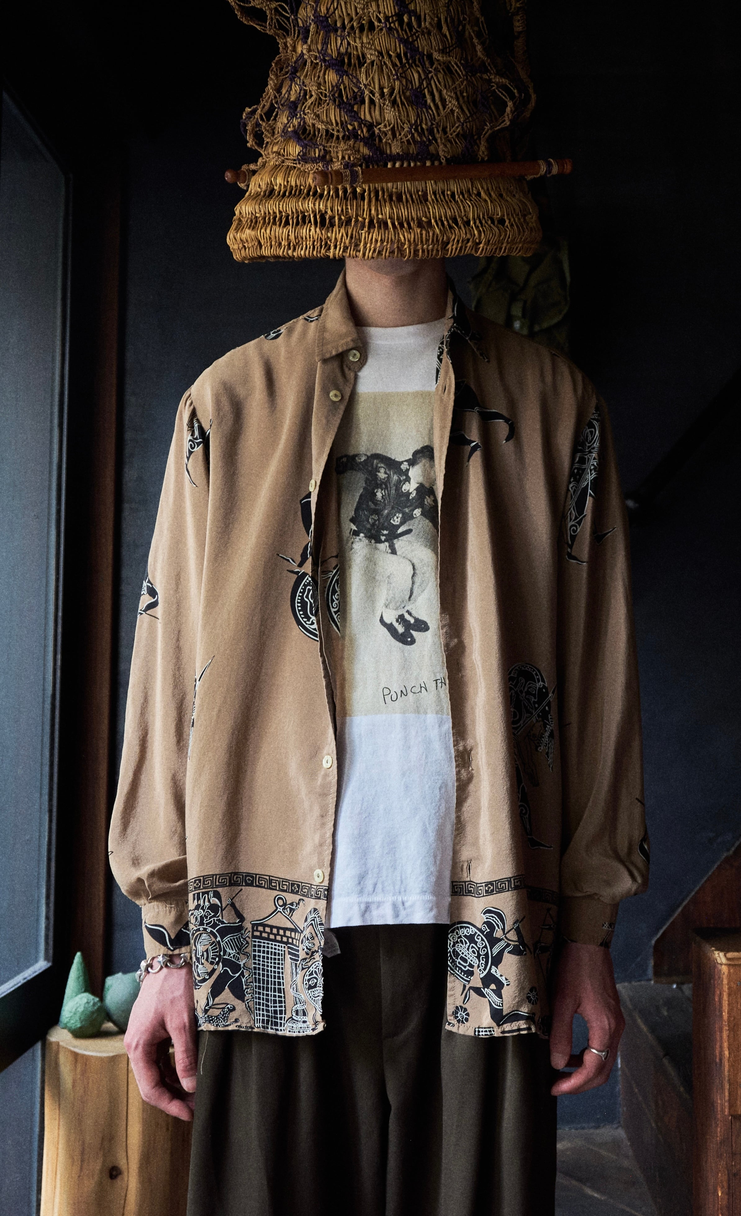 という言わんばかりの古代絵画をプリントしたようなデザインが唯一無二な古着らしい。