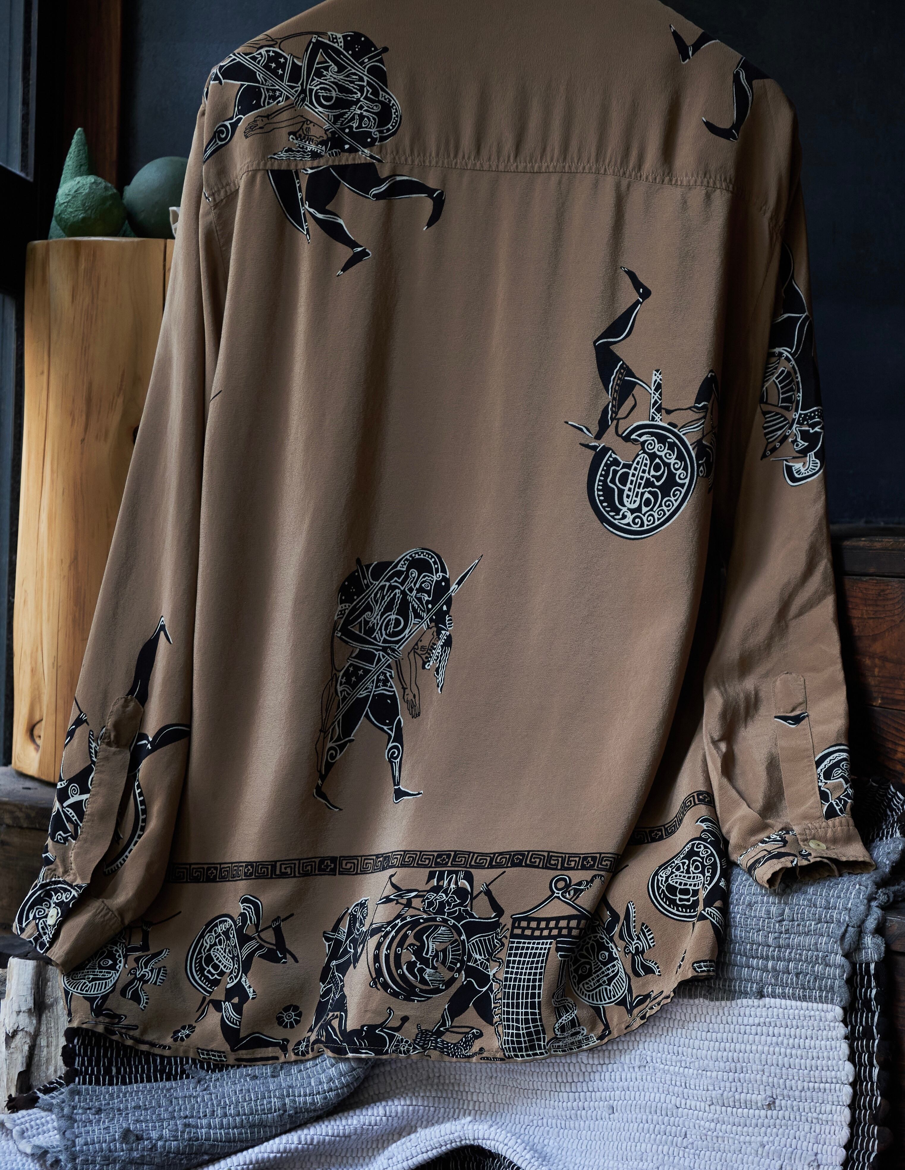 80s ITALY Ancient painting print silk shirt