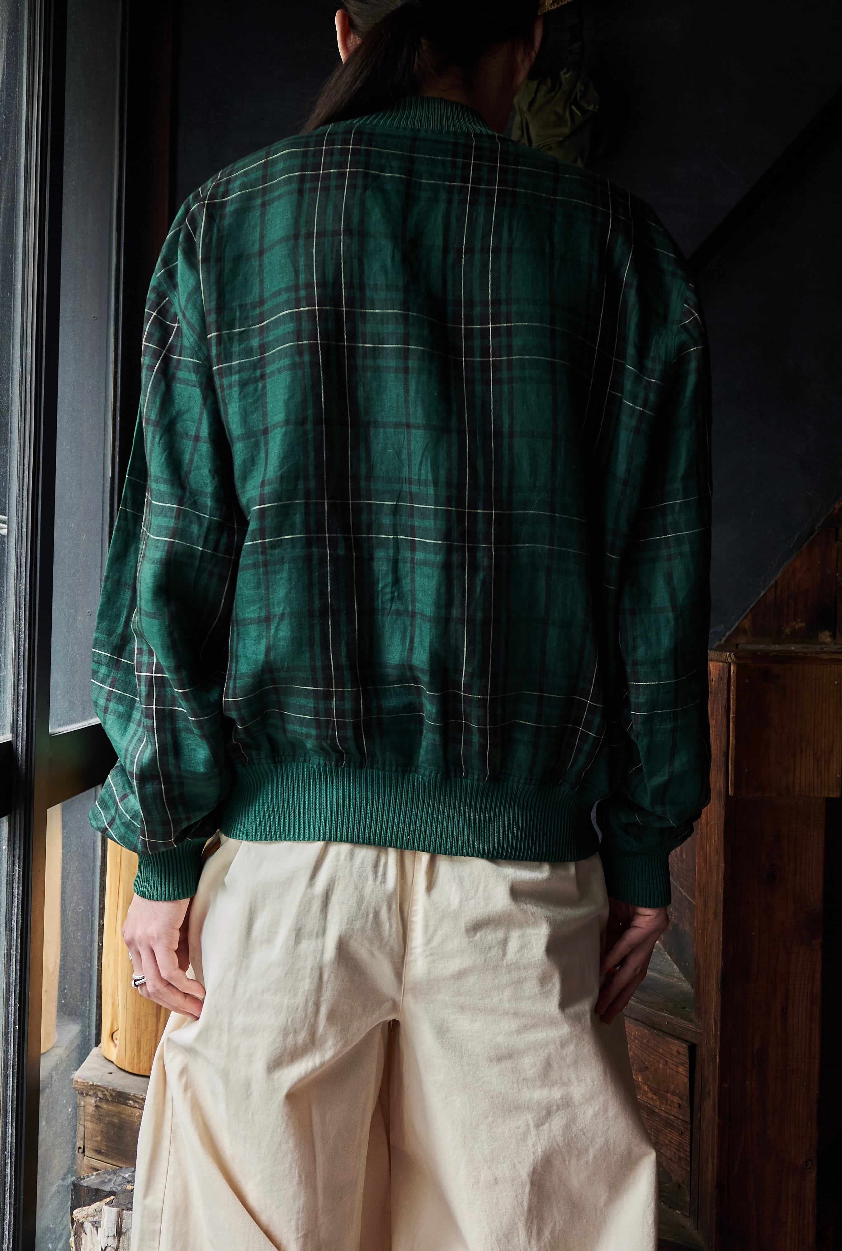 80s ITALY Valstarino Patterned check linen stand collar jacket