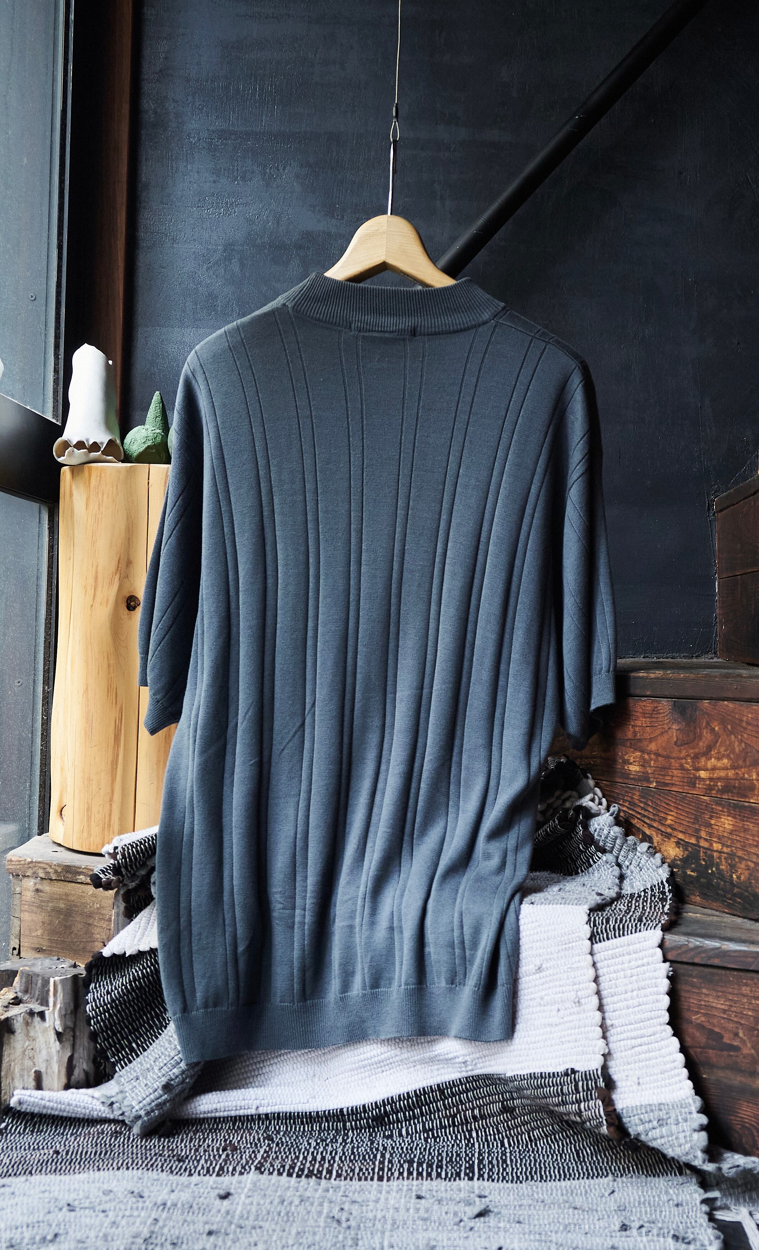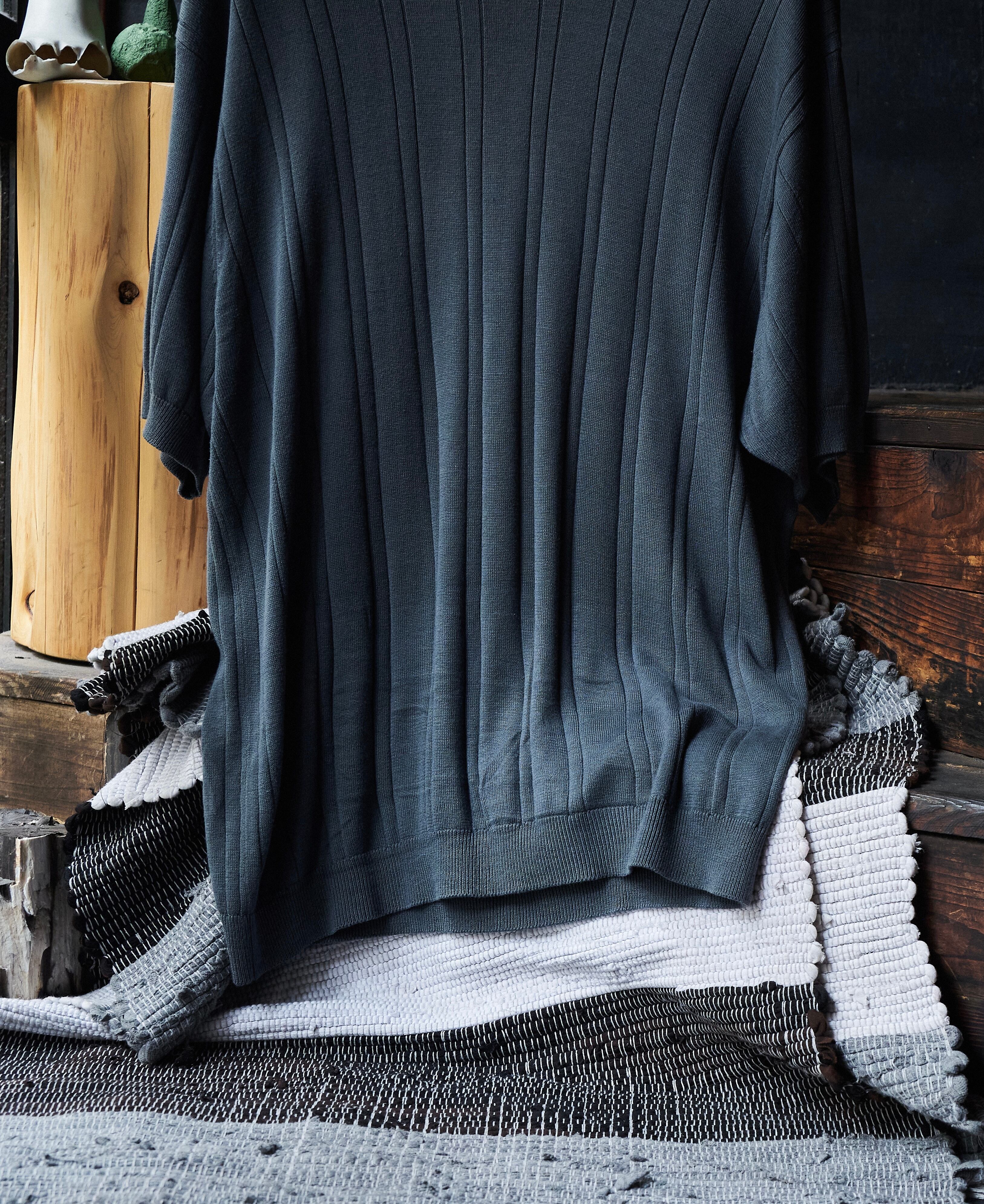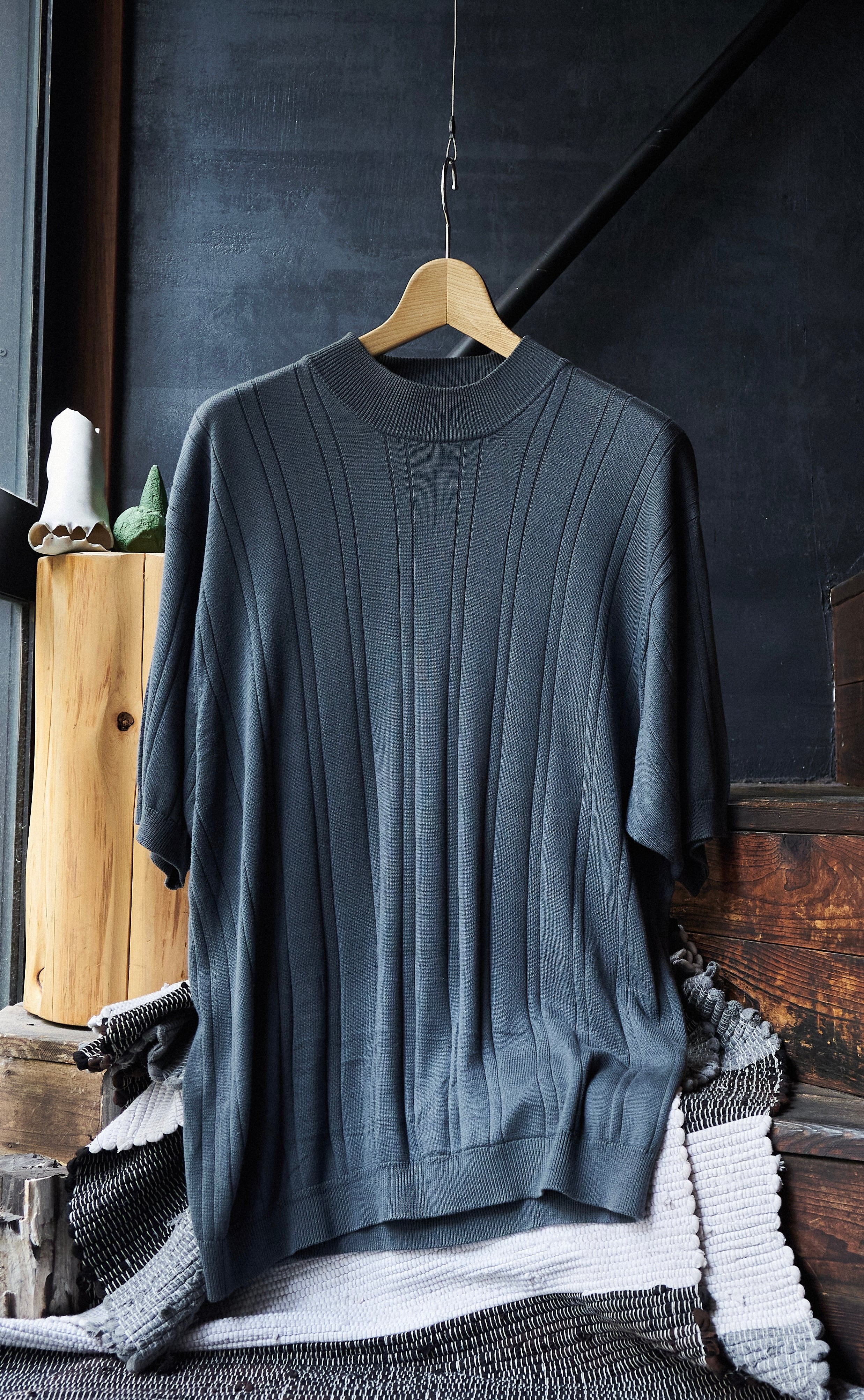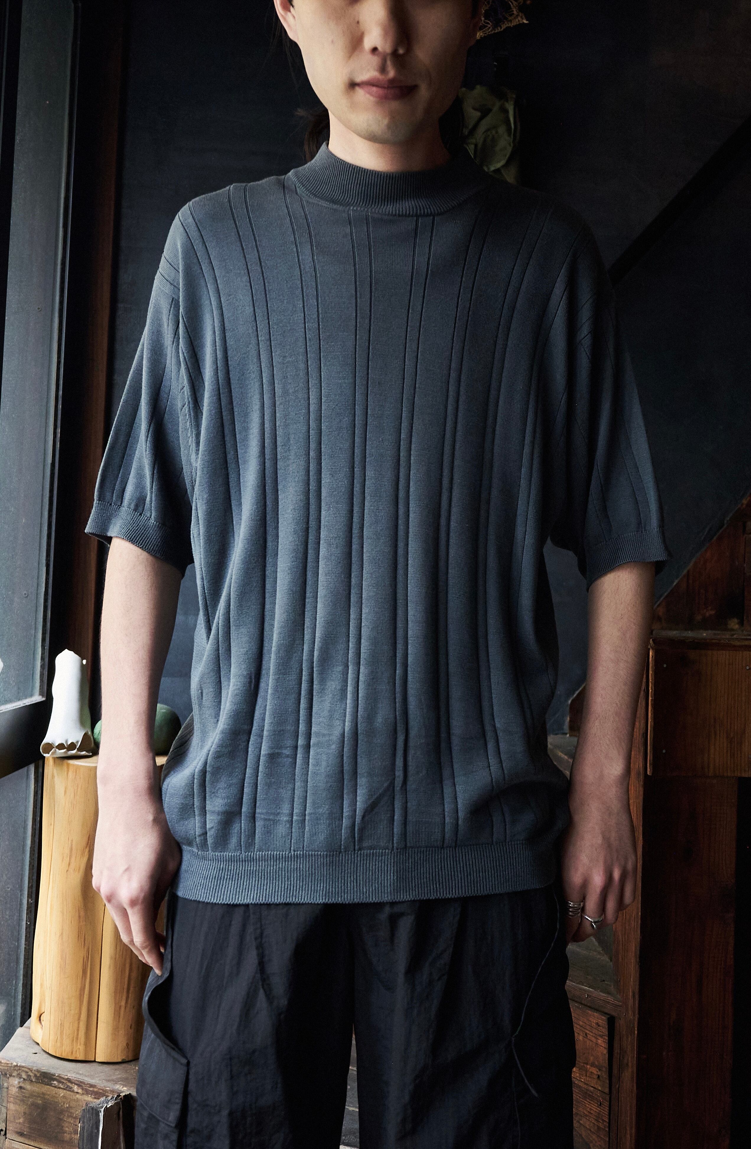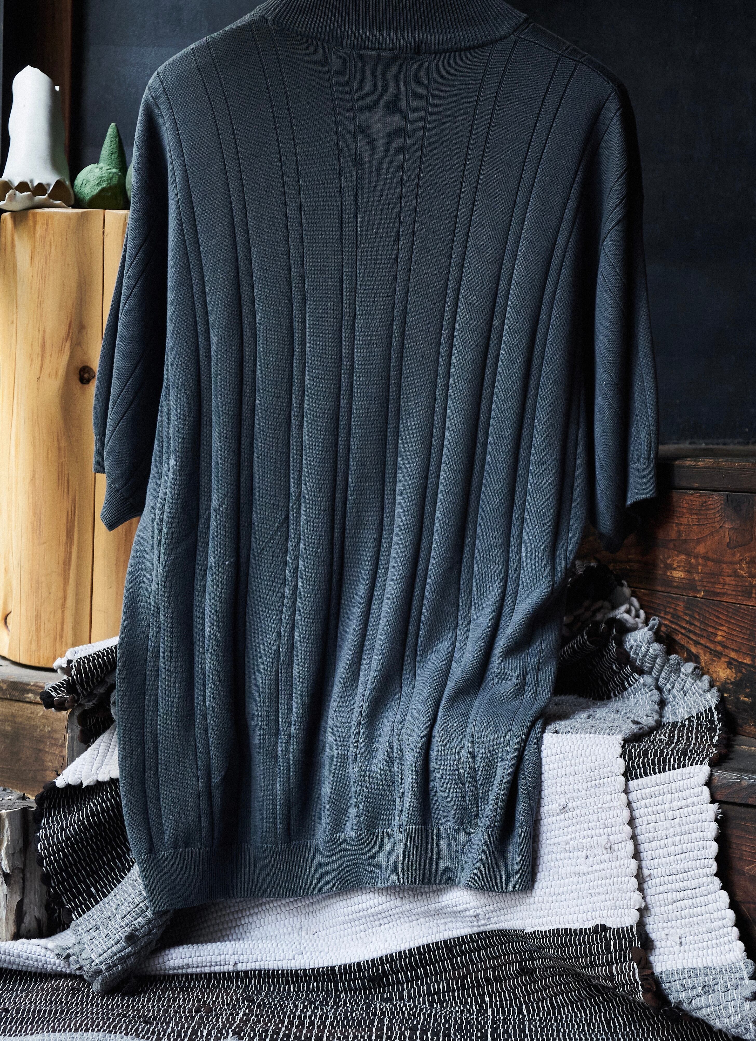 US 2000s PERRY ELLIS gray-colored silk x cotton fabric mock neck half-sleeve knit