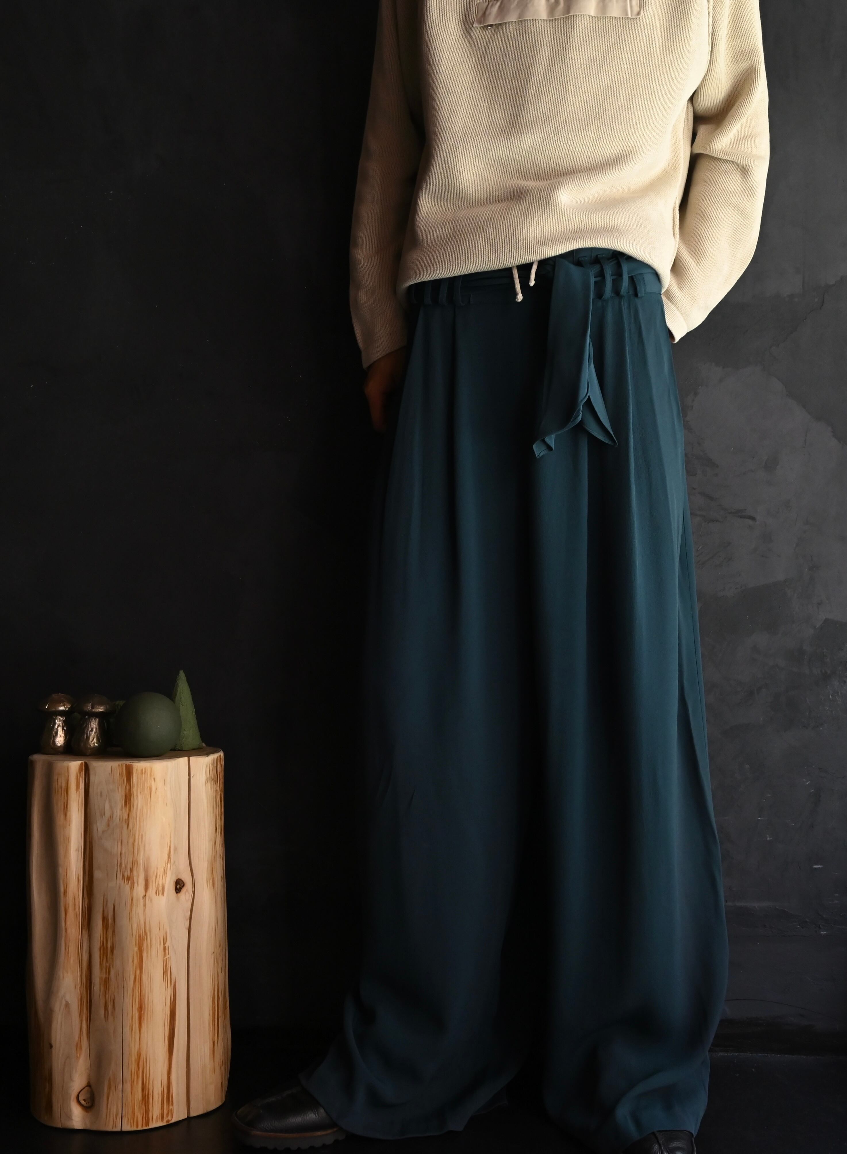 US 90s Rayon Baggy Silhouette Belted deep green Slacks