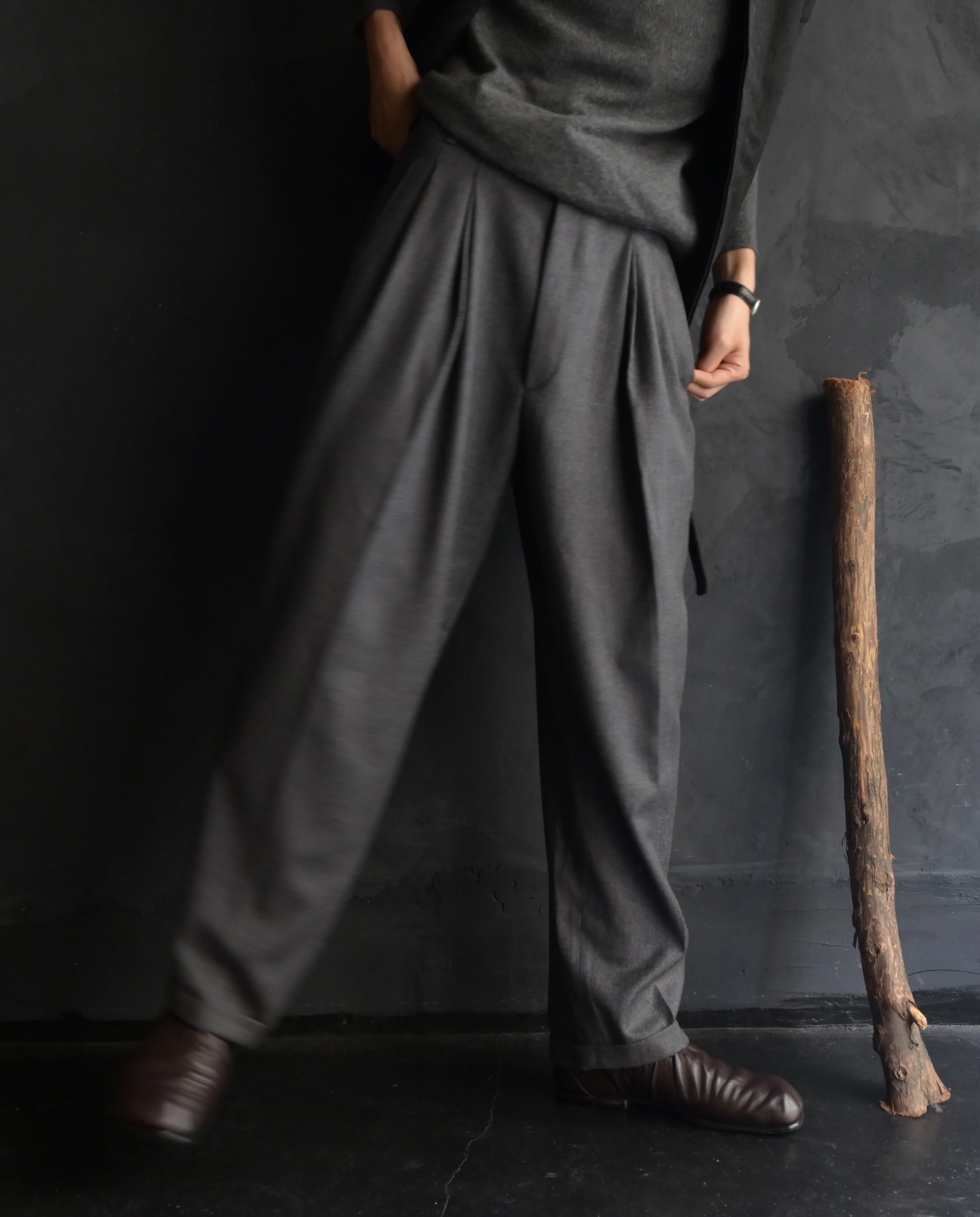 90s Italy Gray color virgin wool deep 2 tuck wide slacks