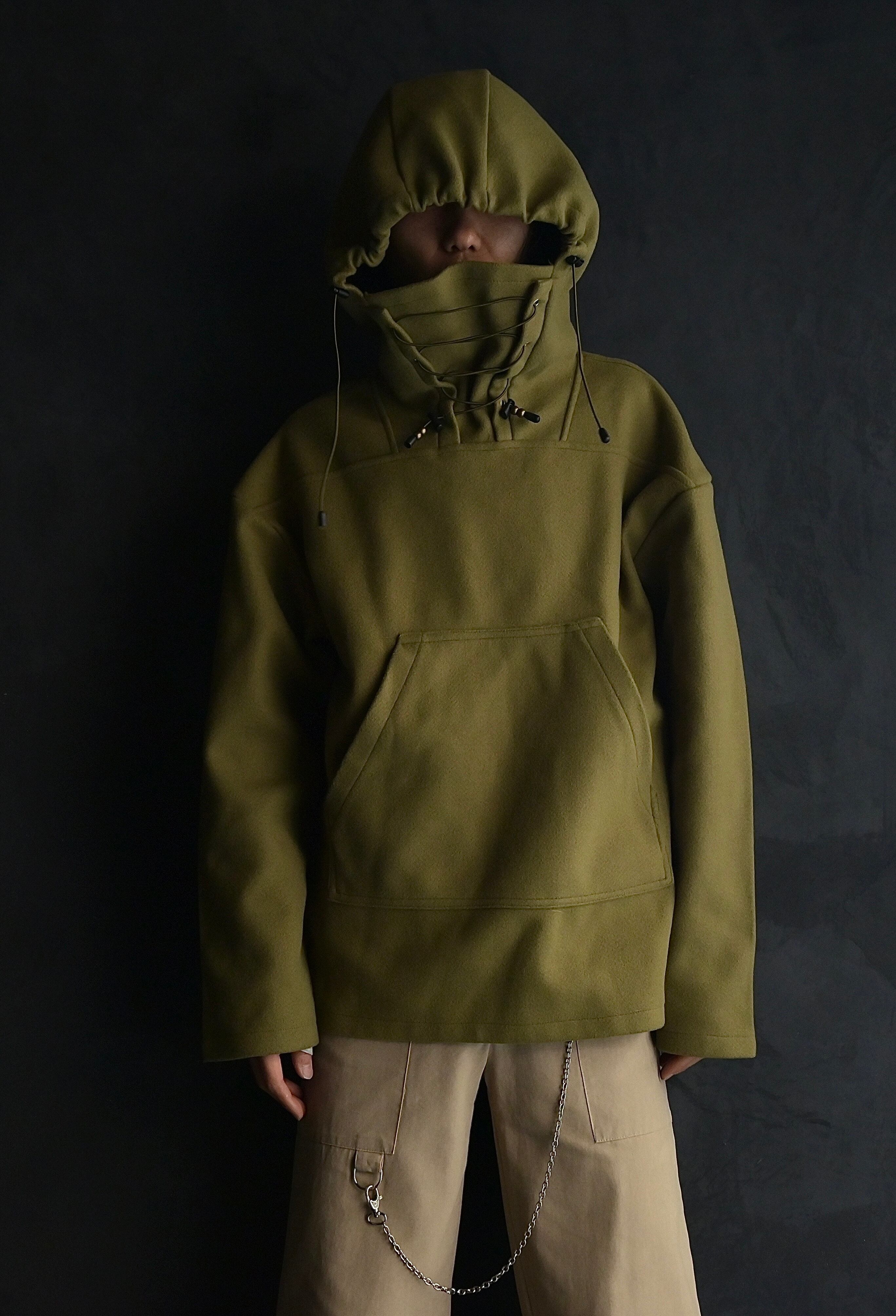 early 2000s high neck lace-up hoodie pullover similar to fleece material