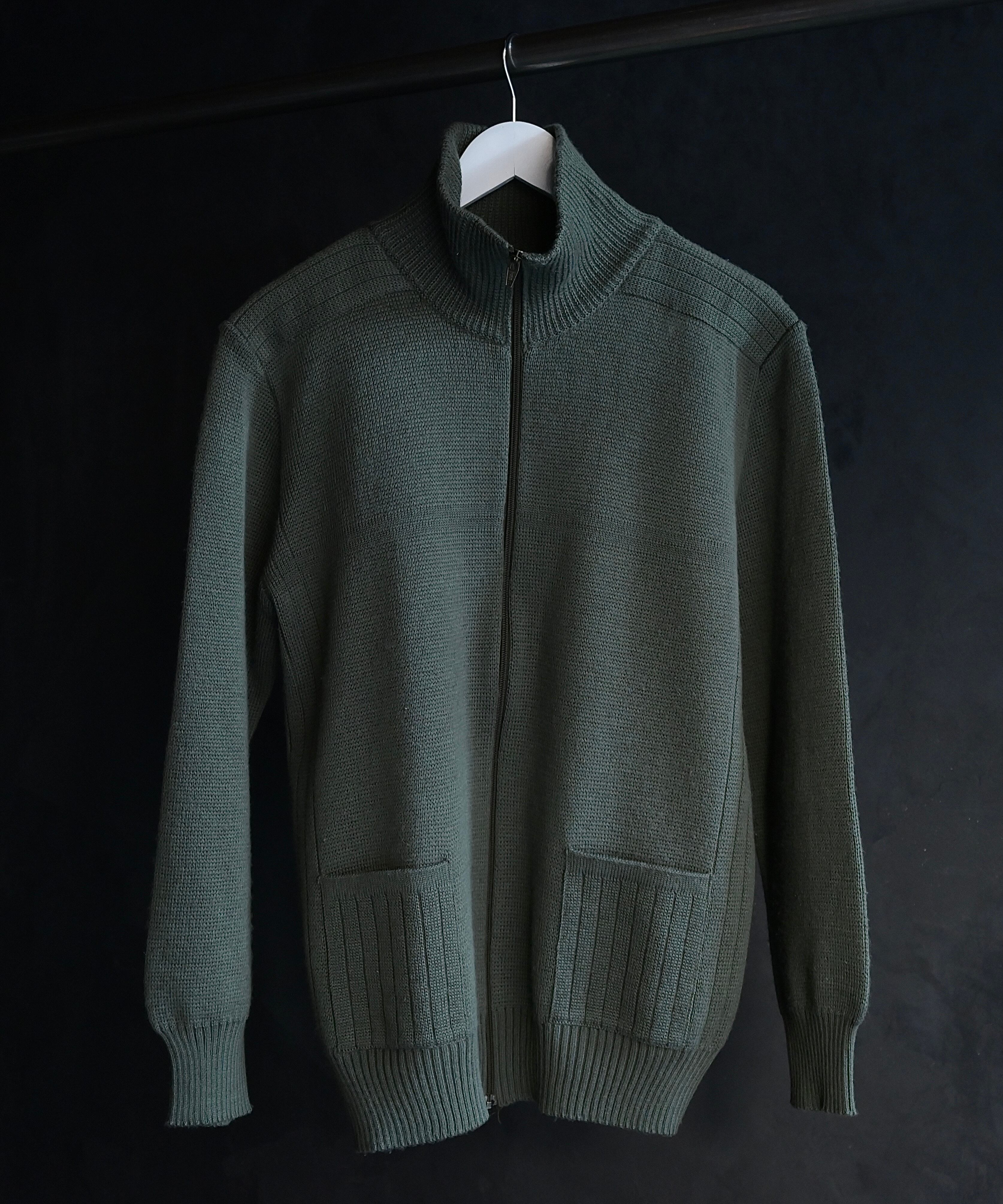 80s euro zipper high neck double pocket knit