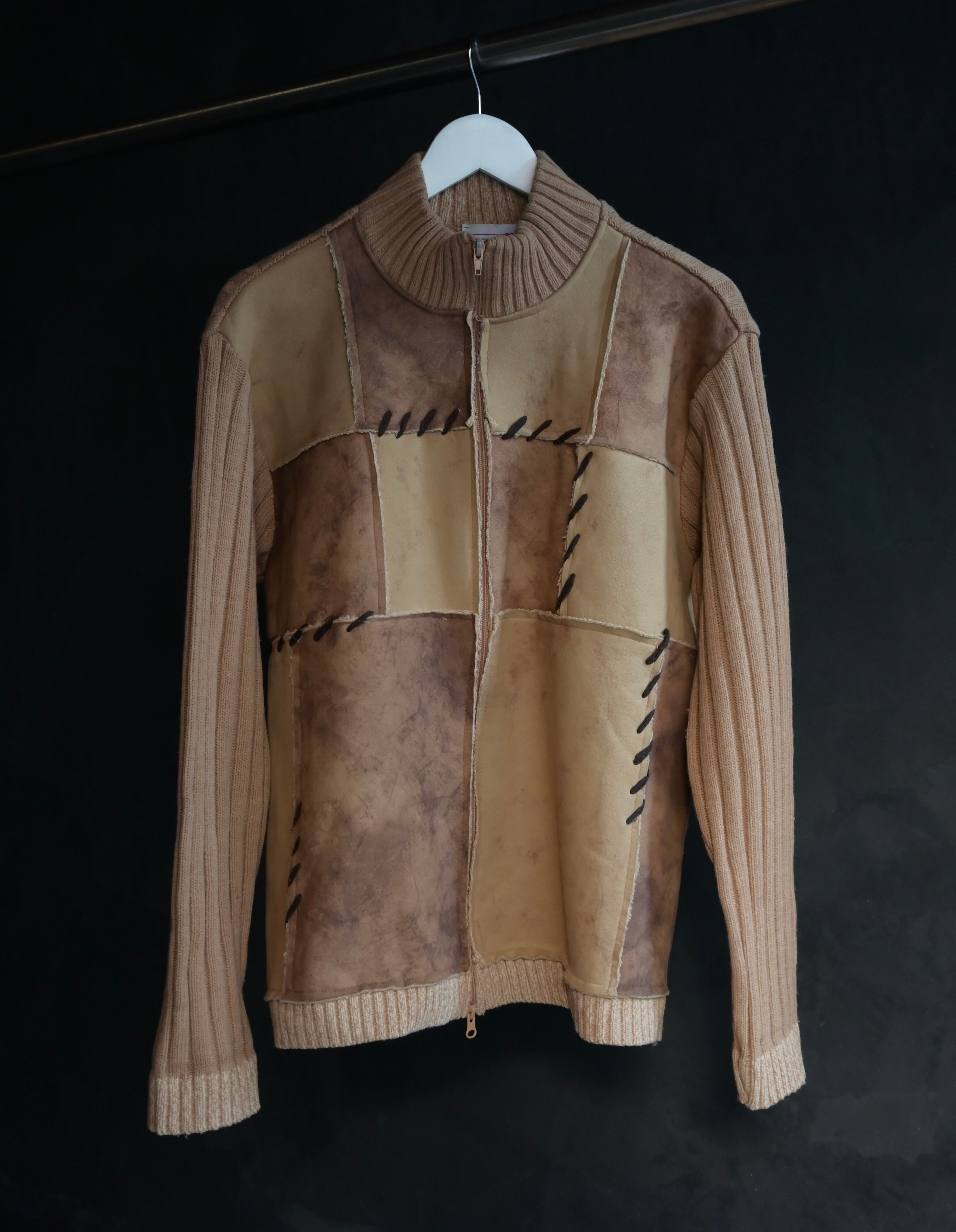 early 2000s euro faux shearling docking double zip up rib knit