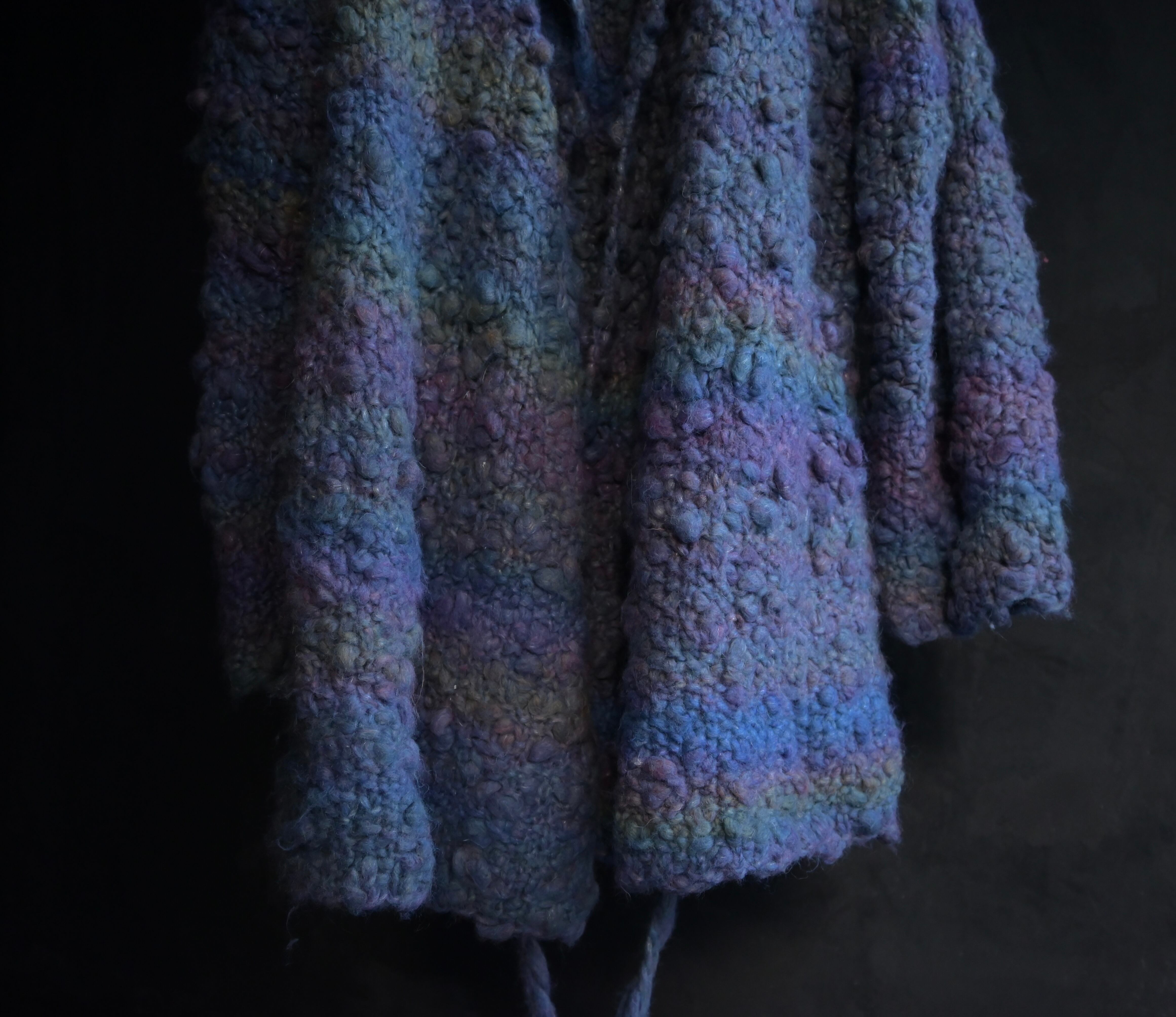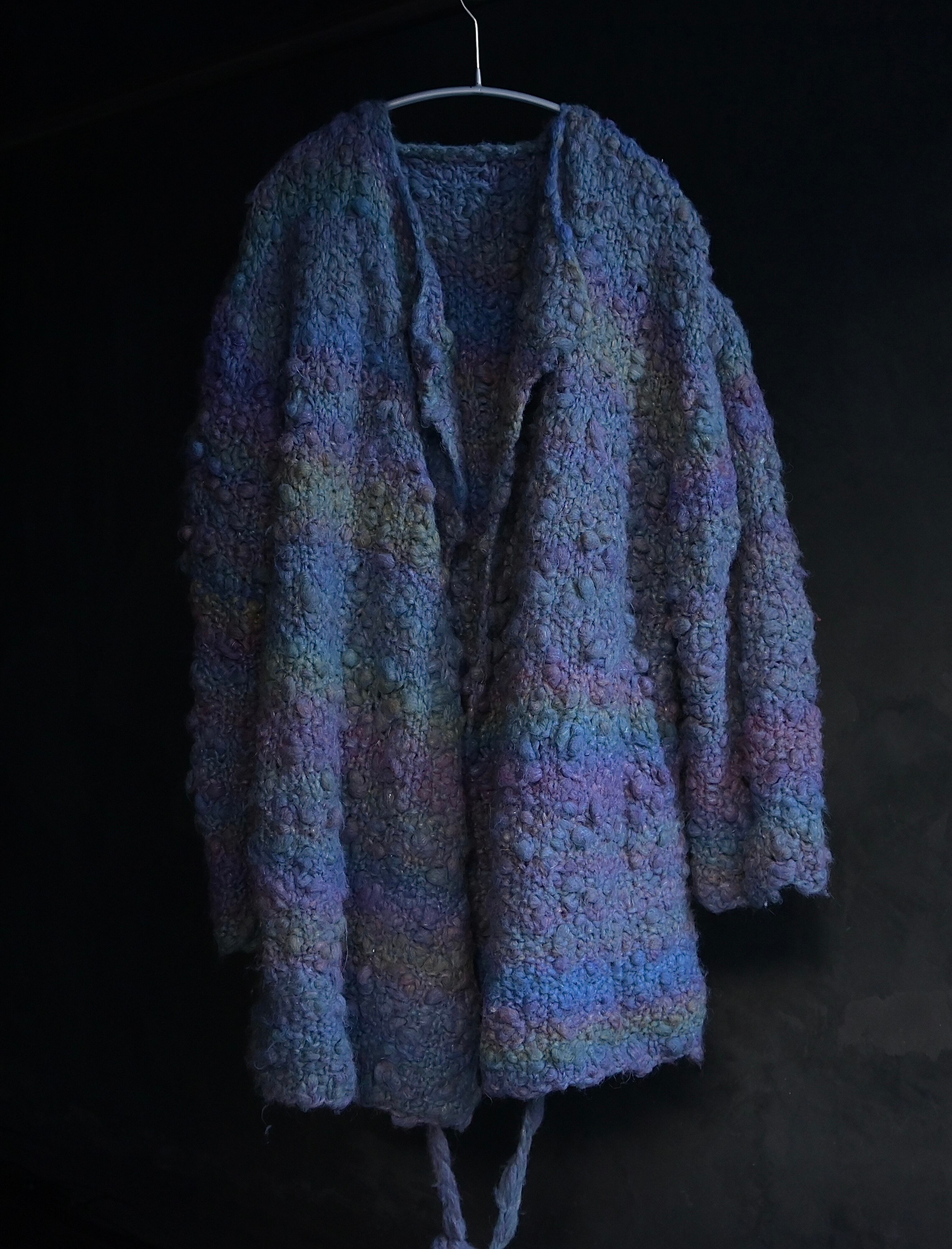 80s euro pokopoko gradation knit collarless haori pattern jacket