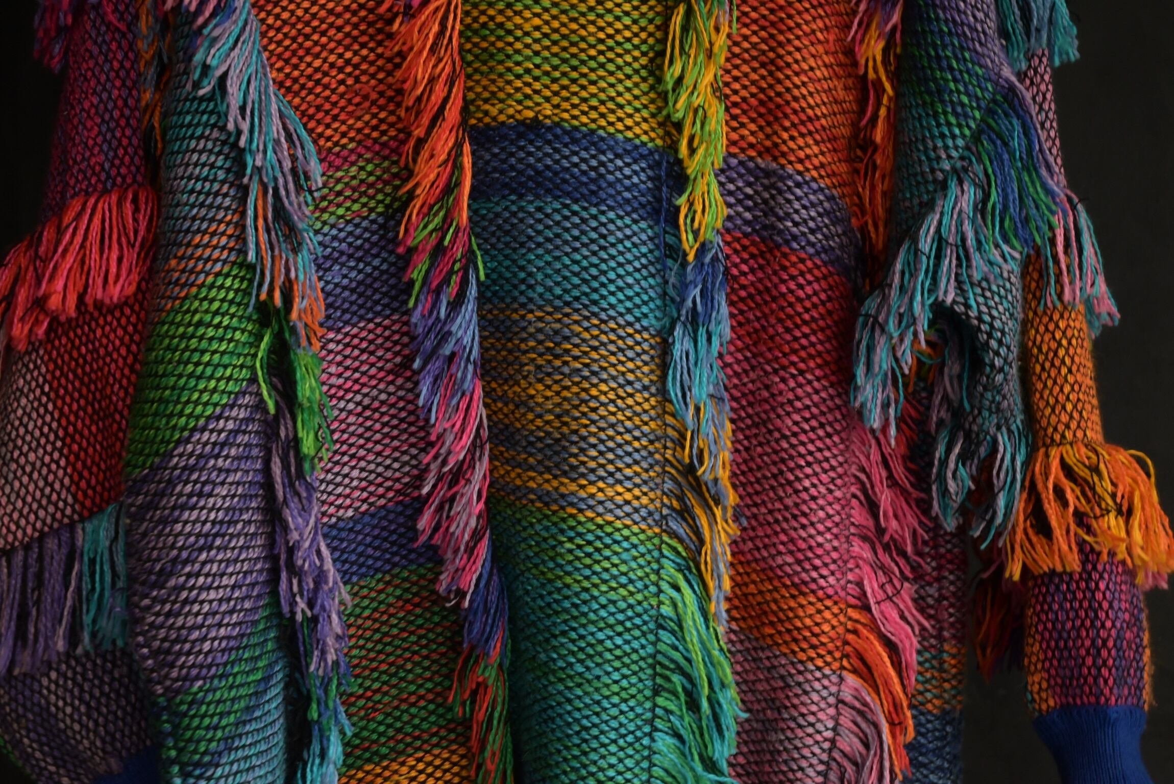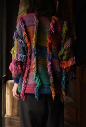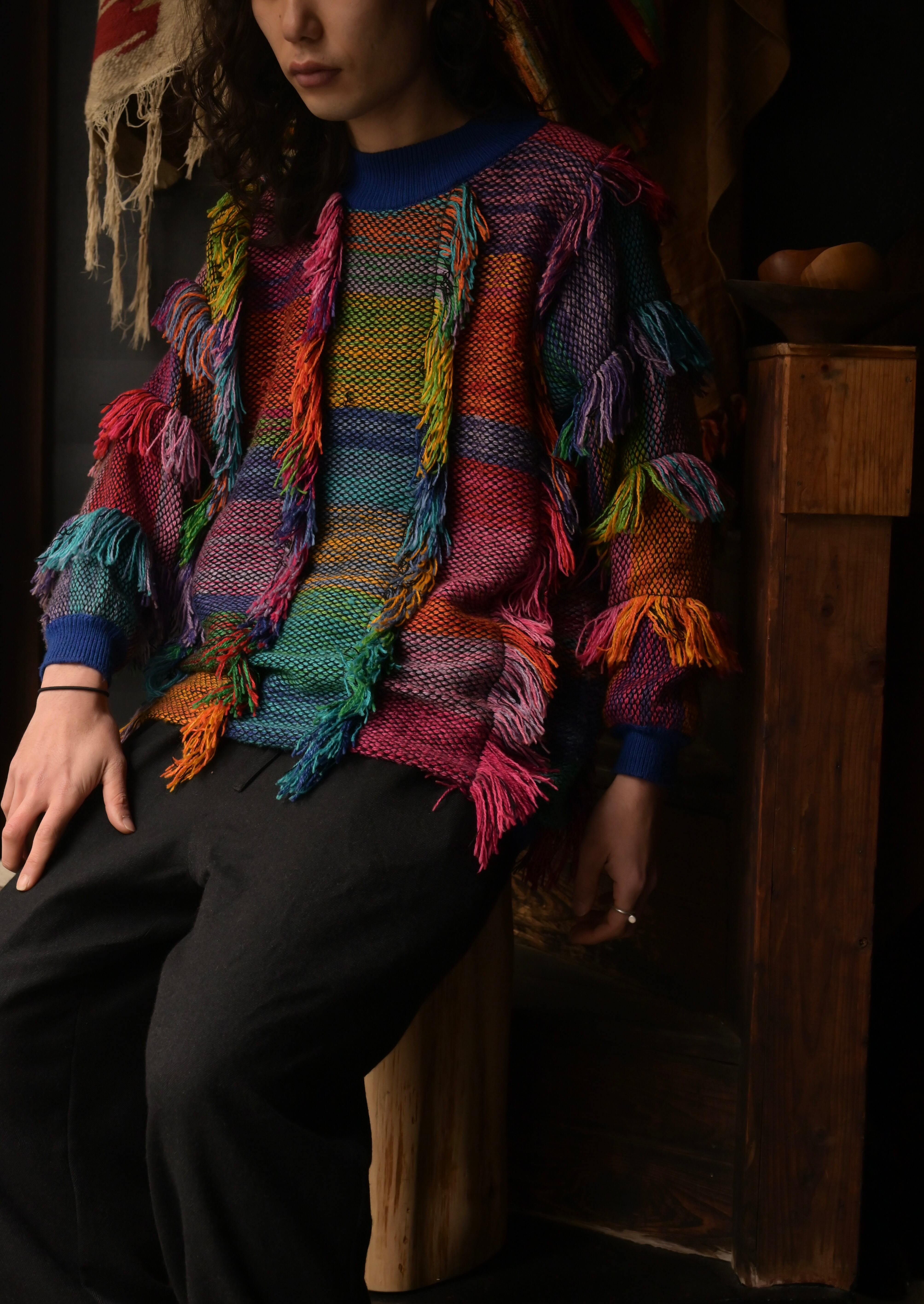 90s colorful volume fringe mock neck knit