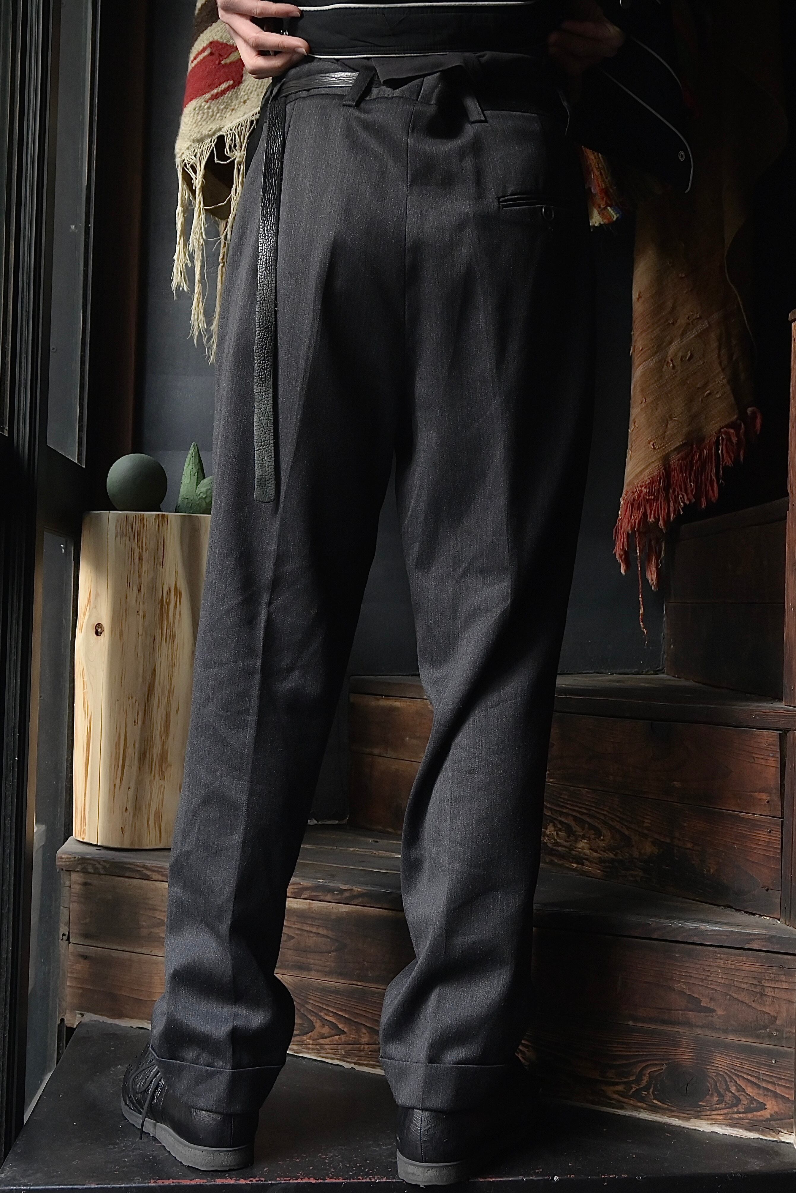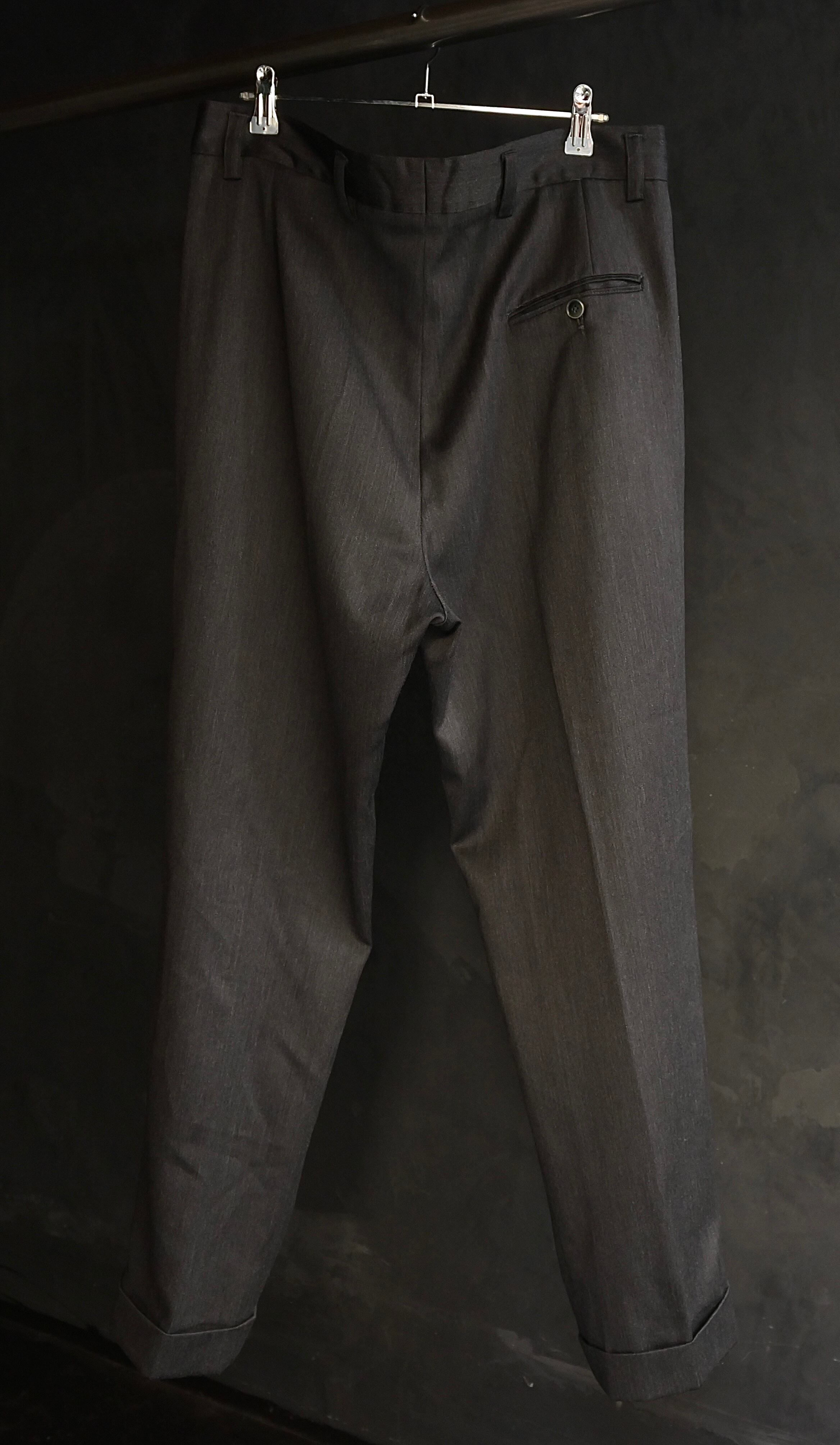 80s euro glossy gray wide straight wool slacks