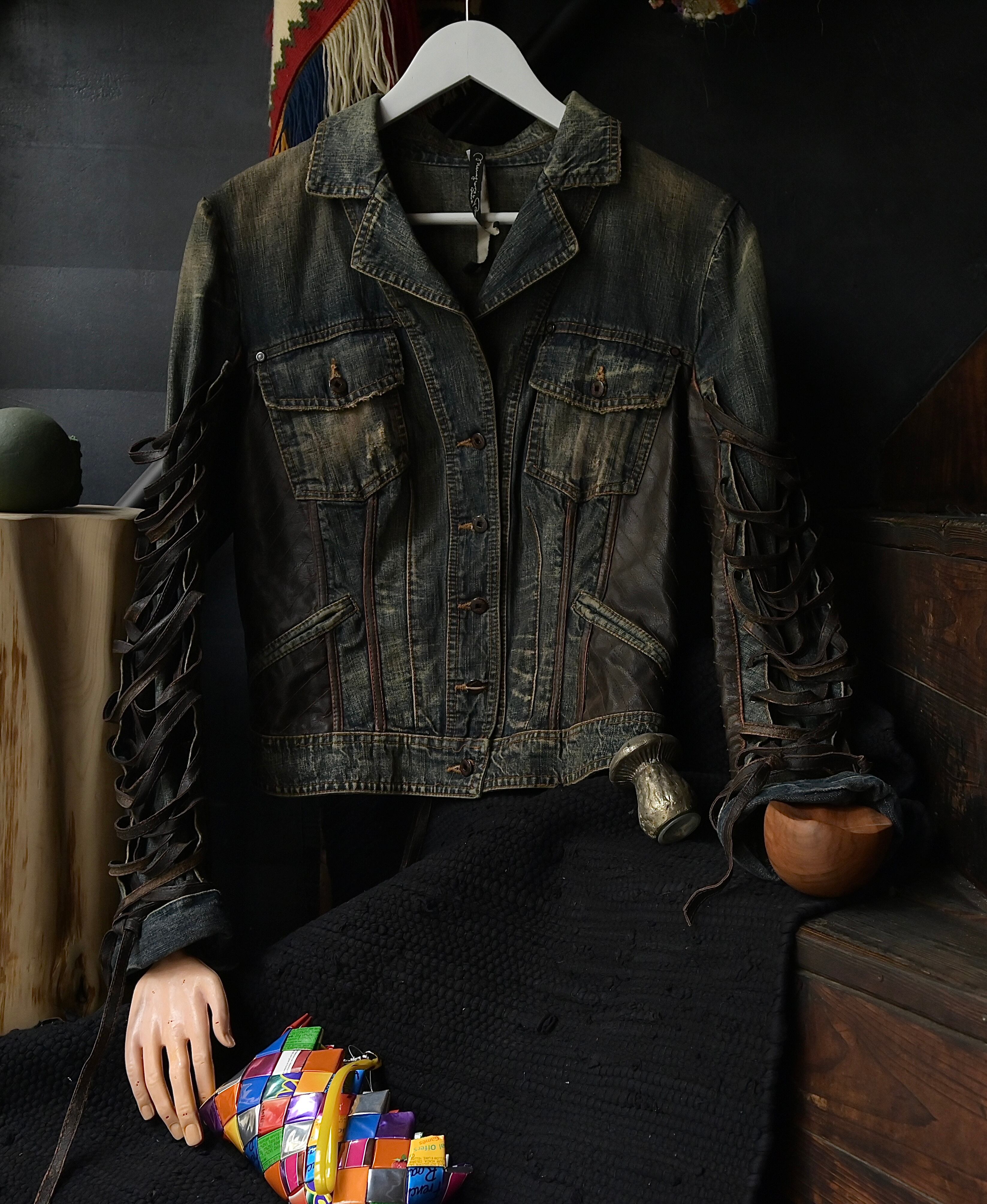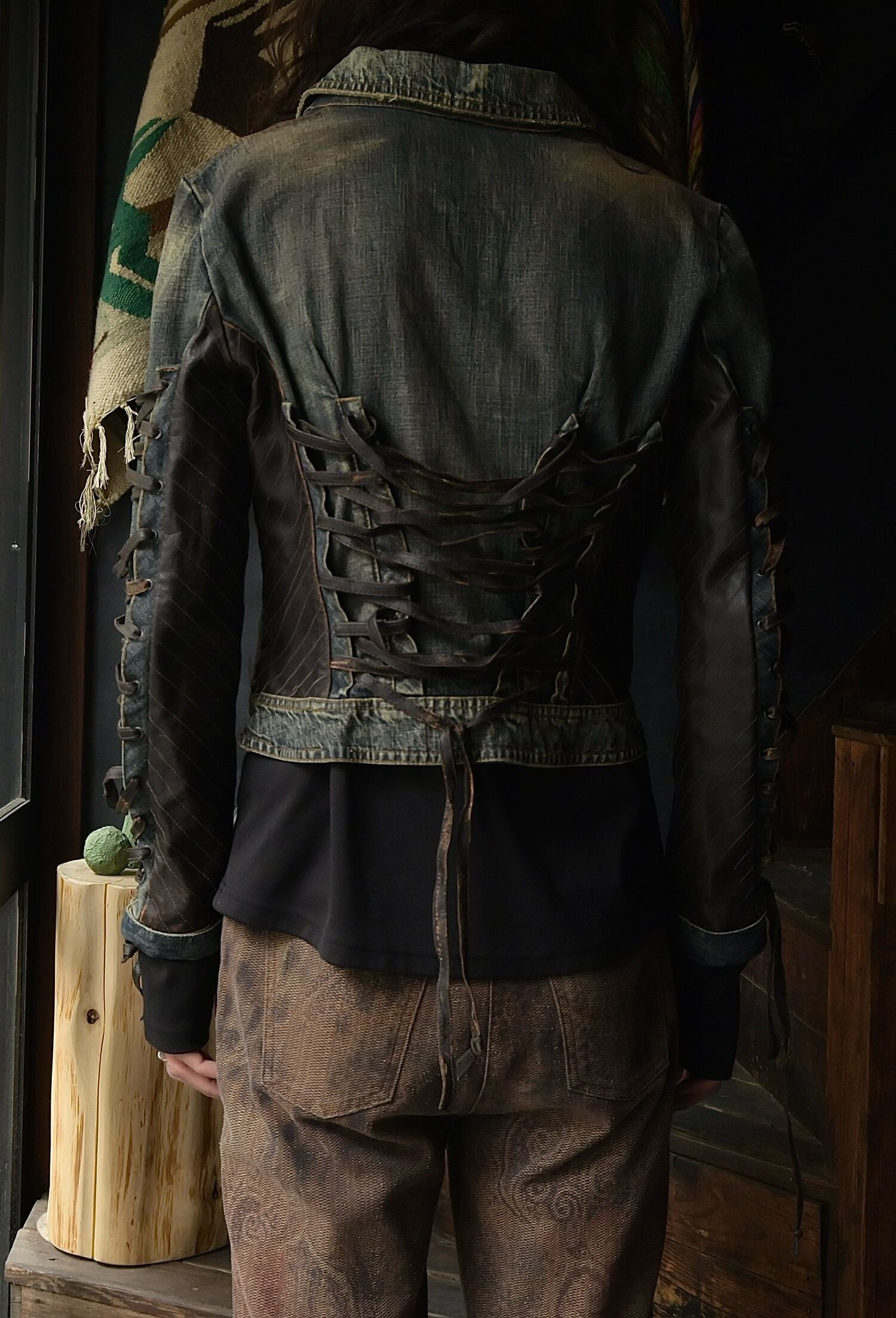early 2000s ITALY unknown brand cyborg pattern denim jacket