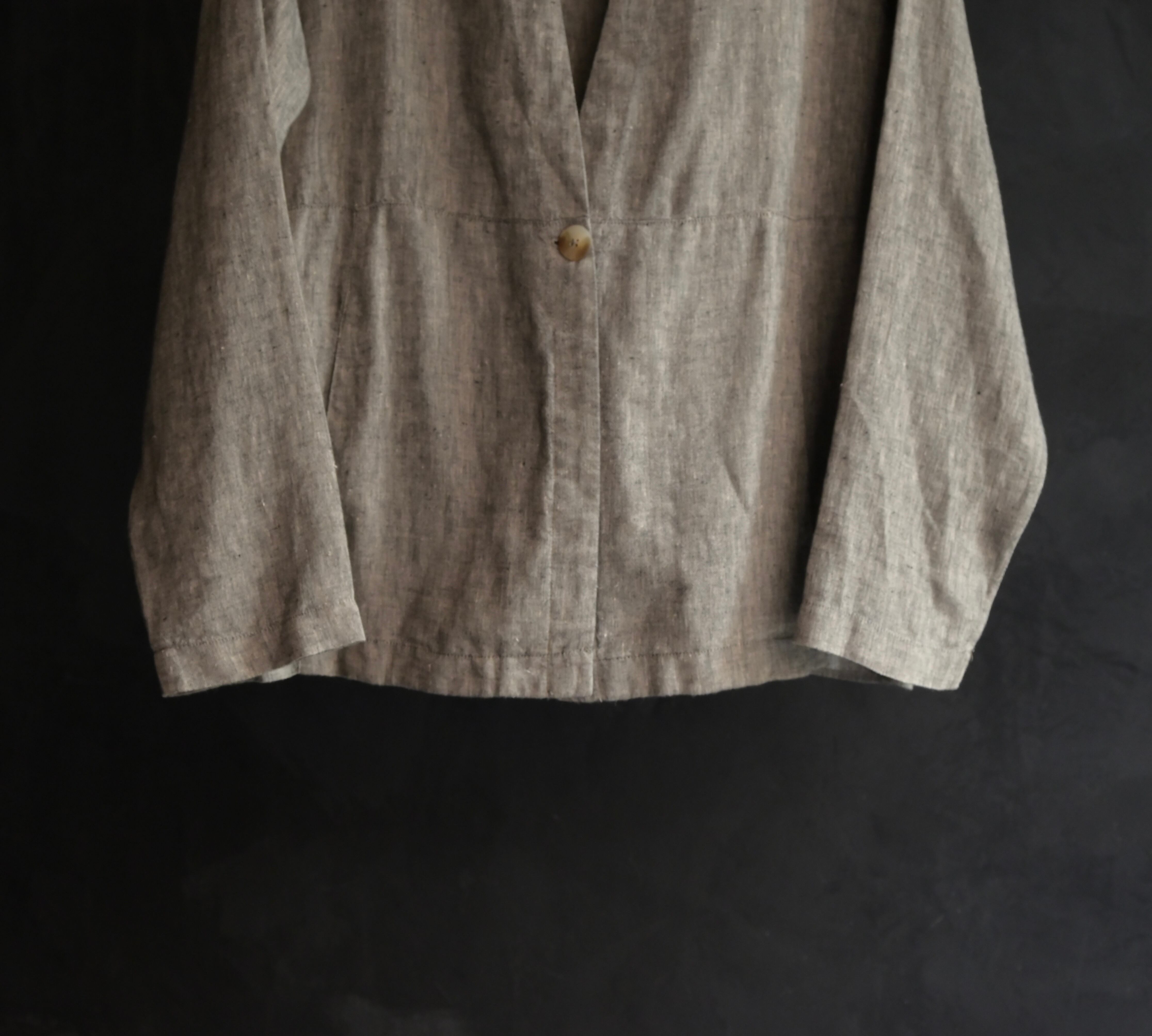 2000s Nepalese linen no-collar linen shirt
