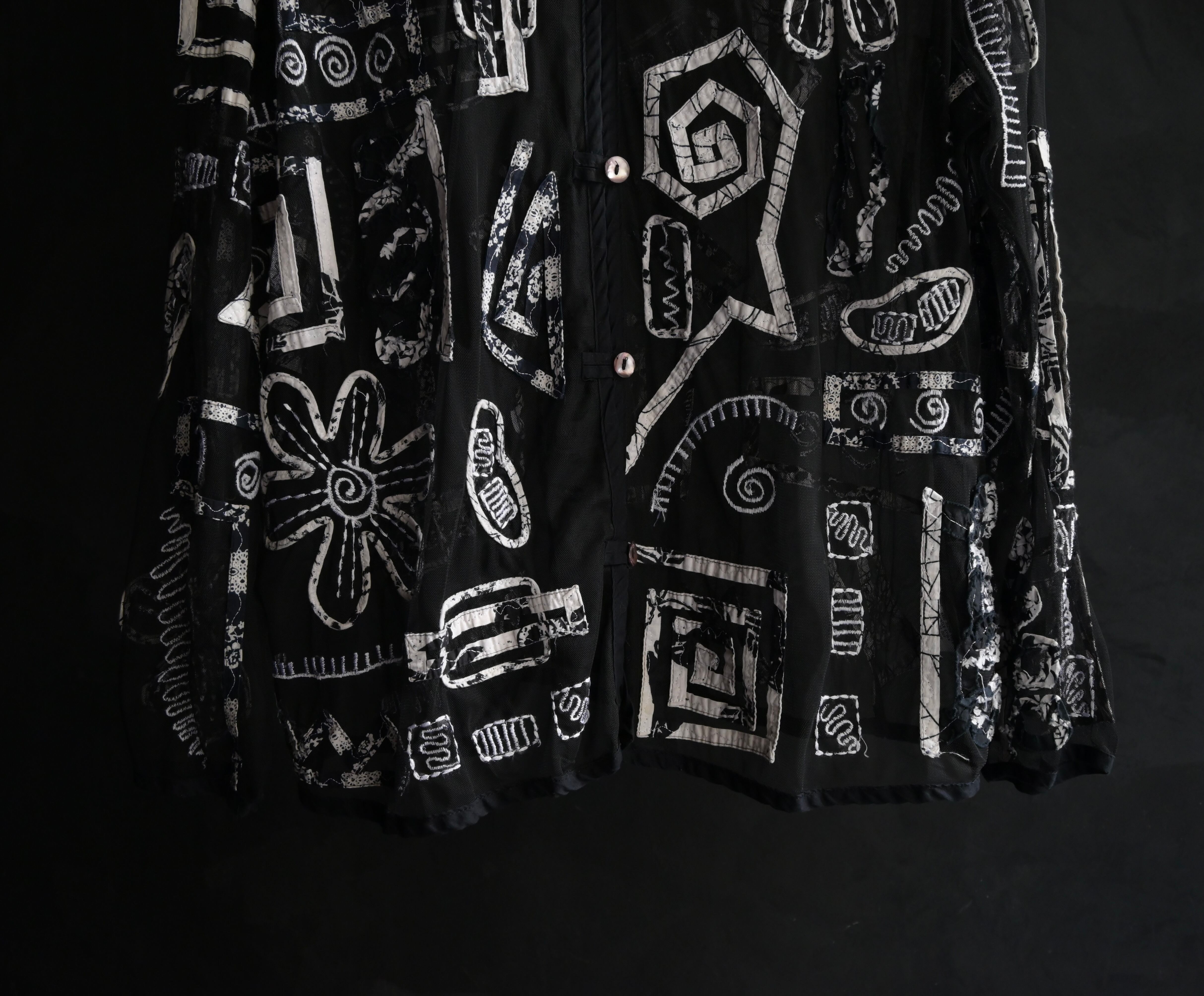 US 2000s mesh pattern patchwork stand-up collar shirt