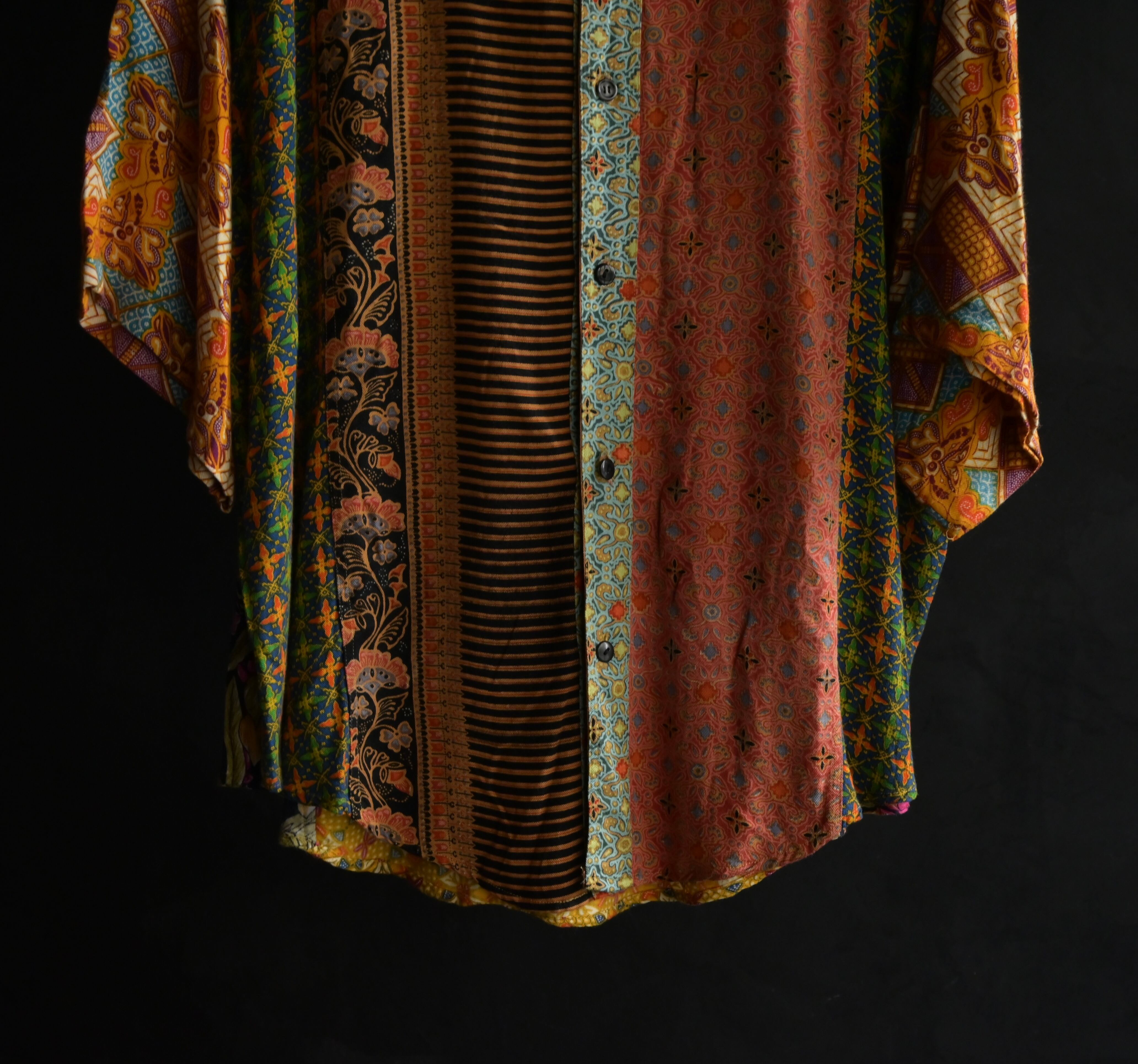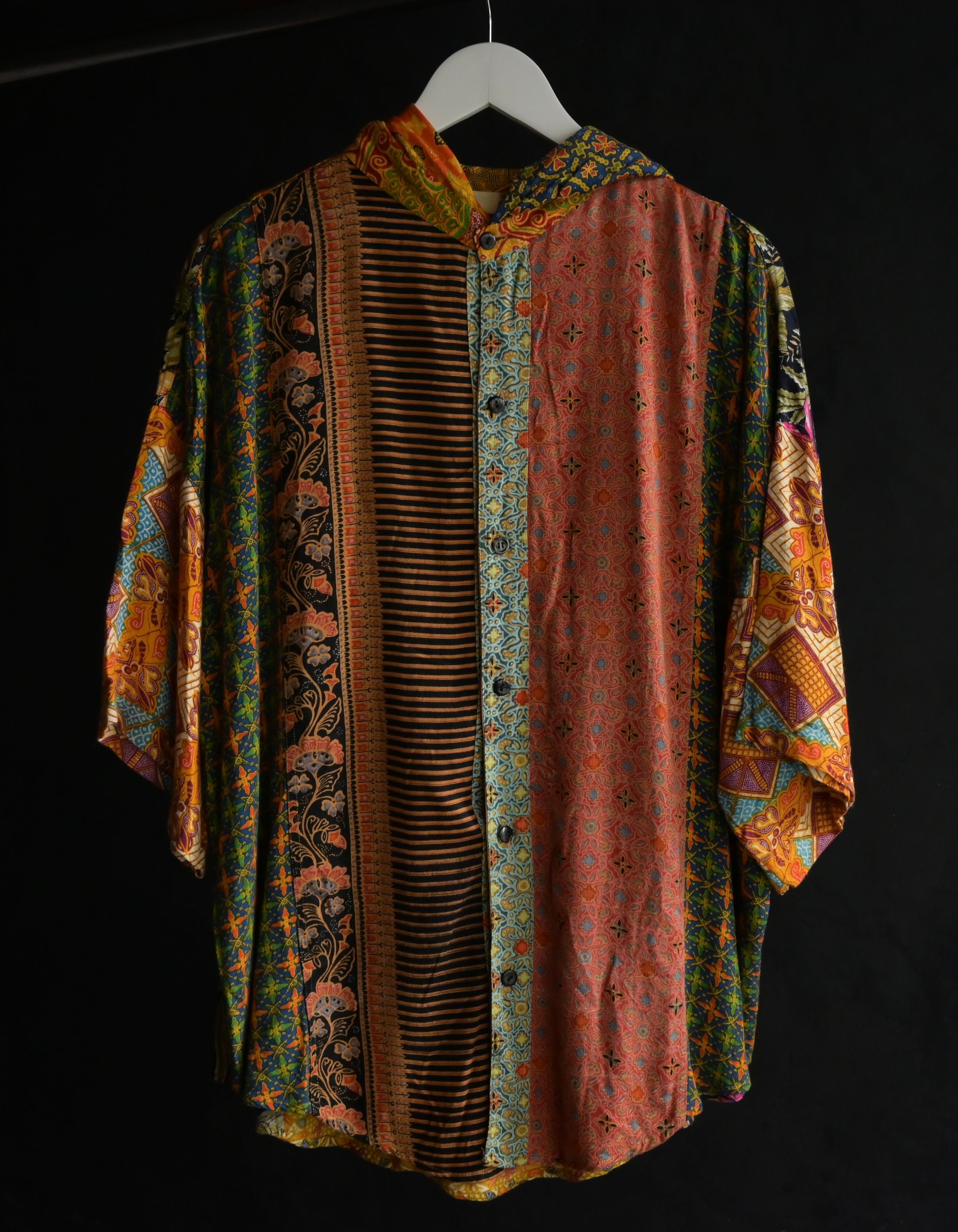 early 2000s euro indian rayon patchwork half sleeve hoodie