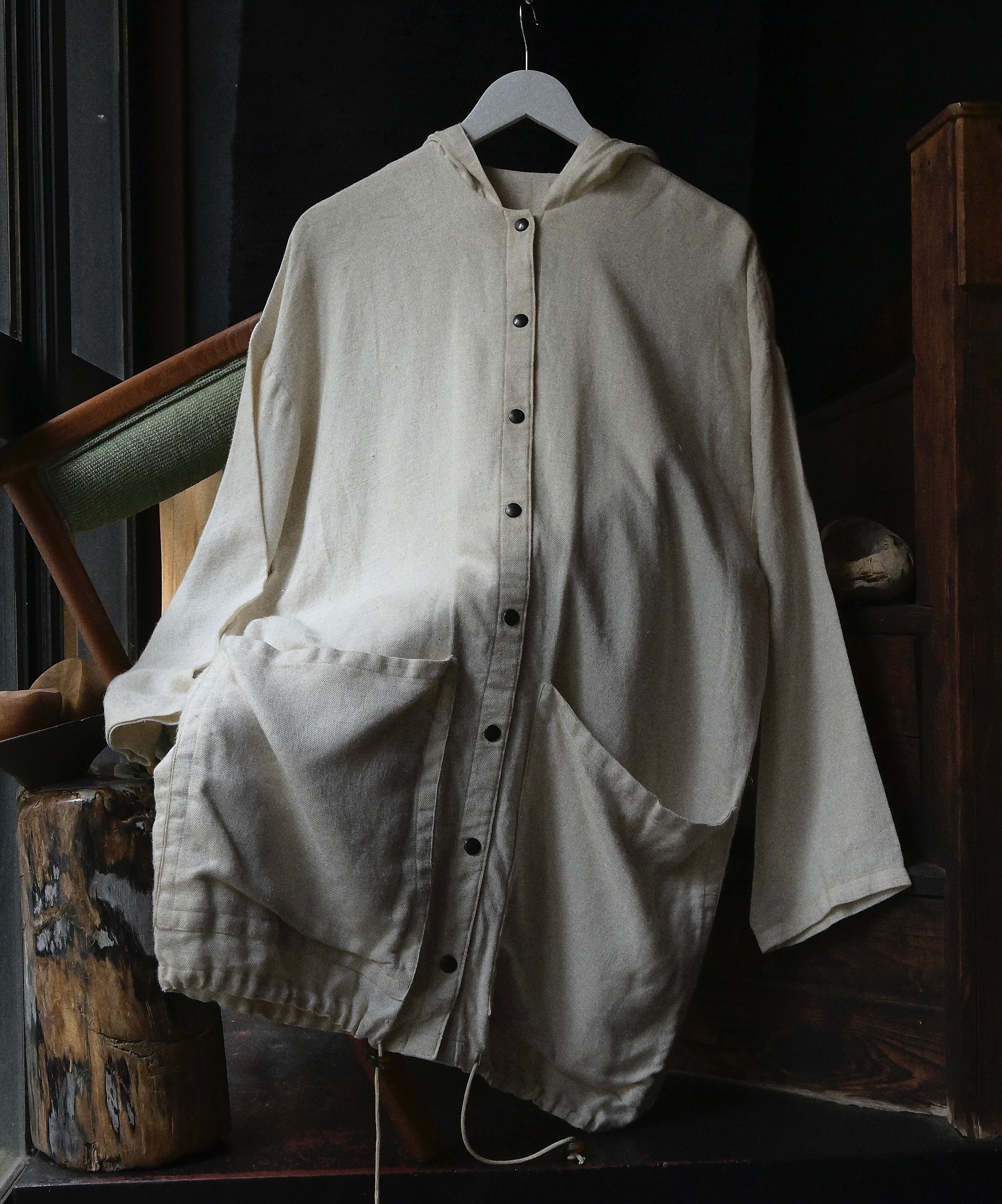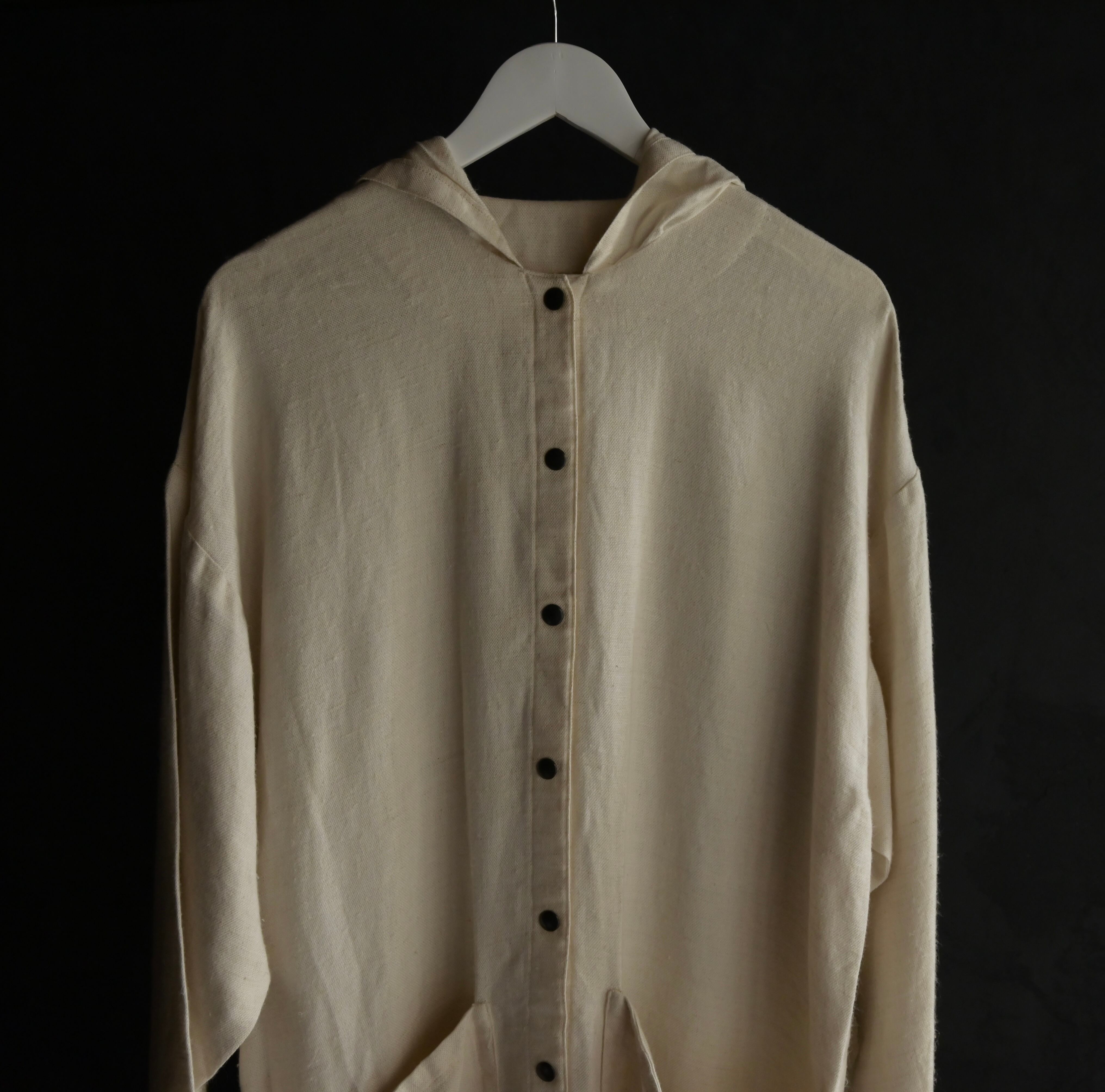 80s euro linen fabric big pocket hoodie
