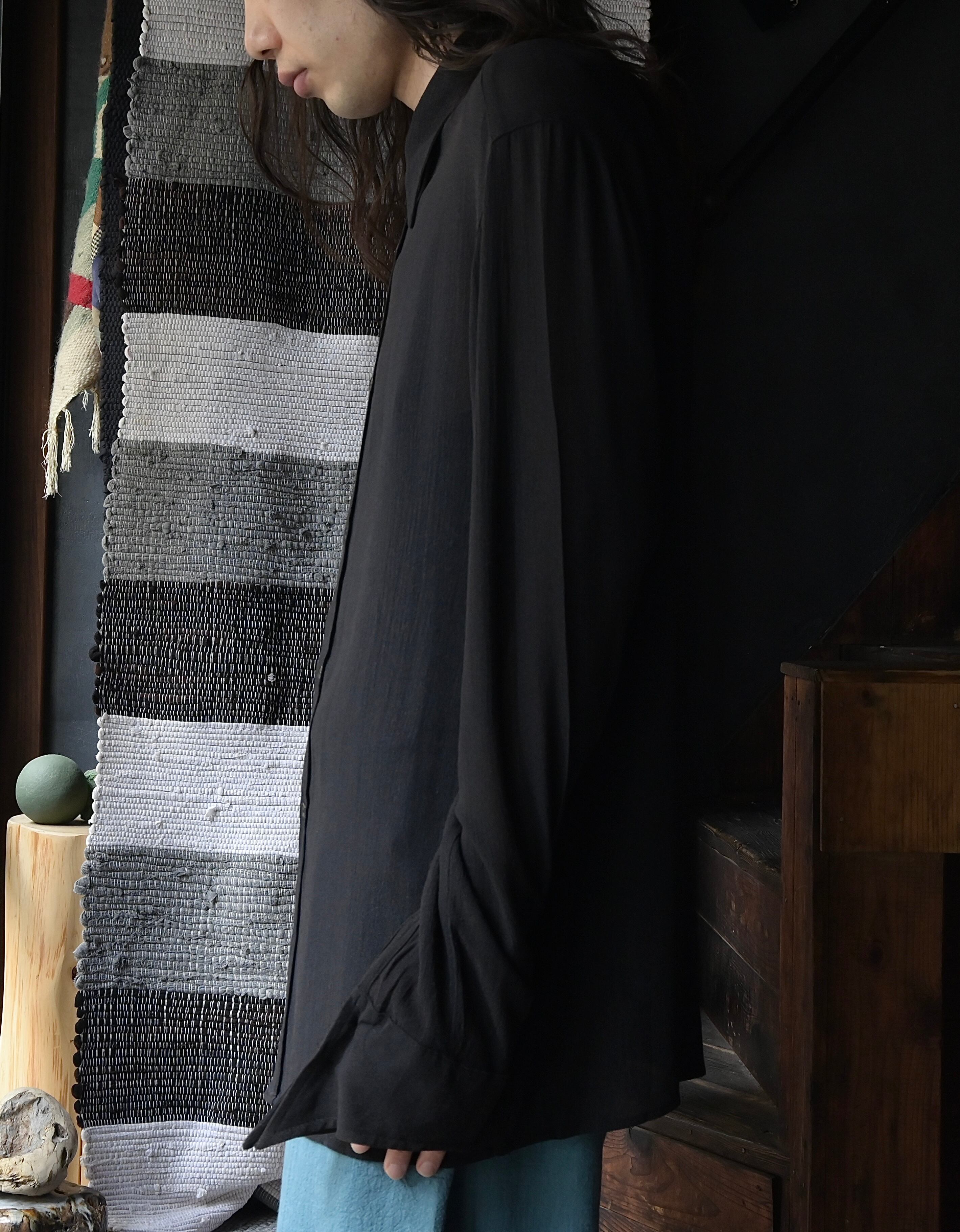 US 90s Black Gathered Rayon Arm Cutting Pattern Shirt