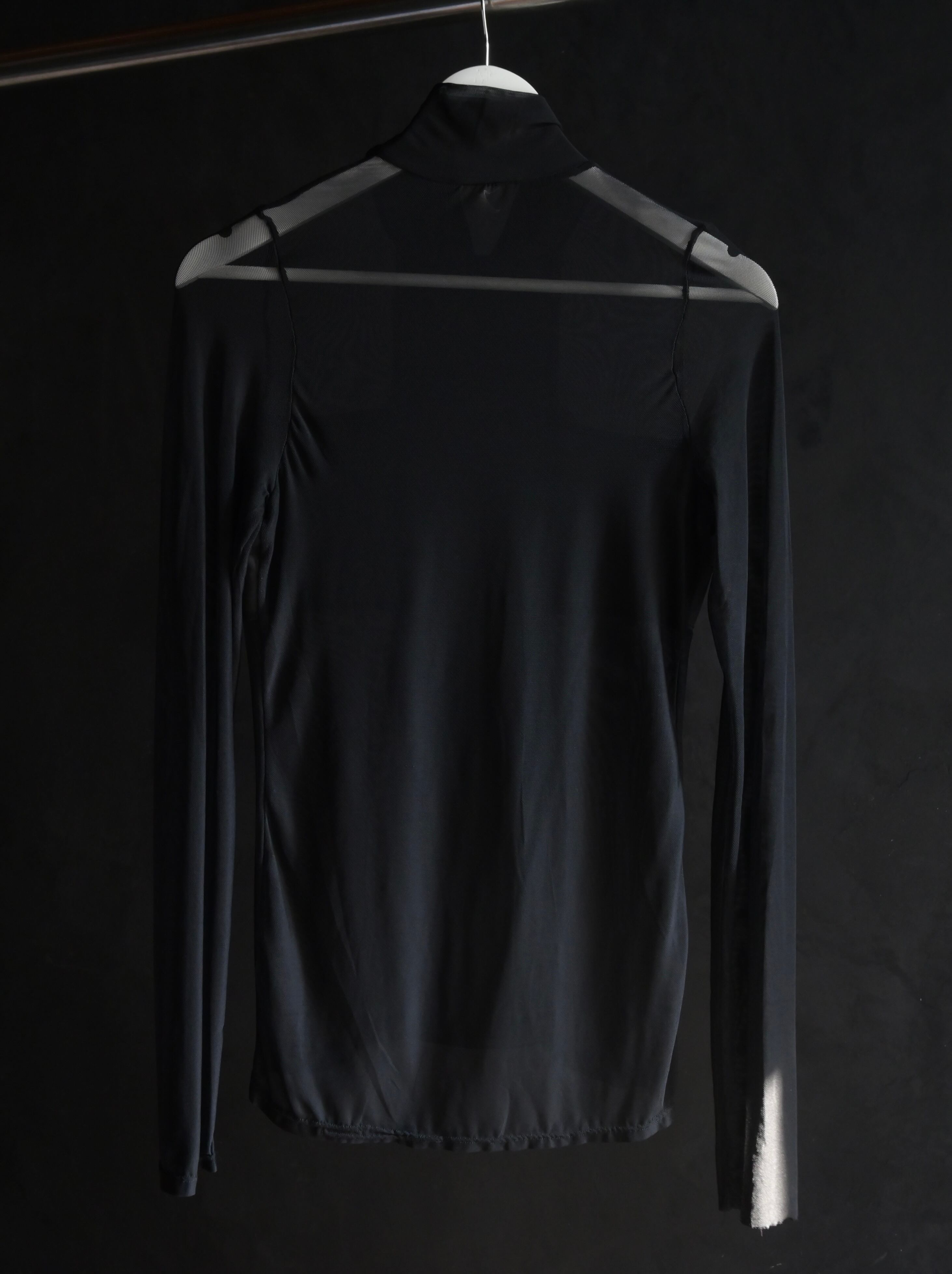 US 2000s〜 Black sheer +++patterned high neck long sleeve T-shirt
