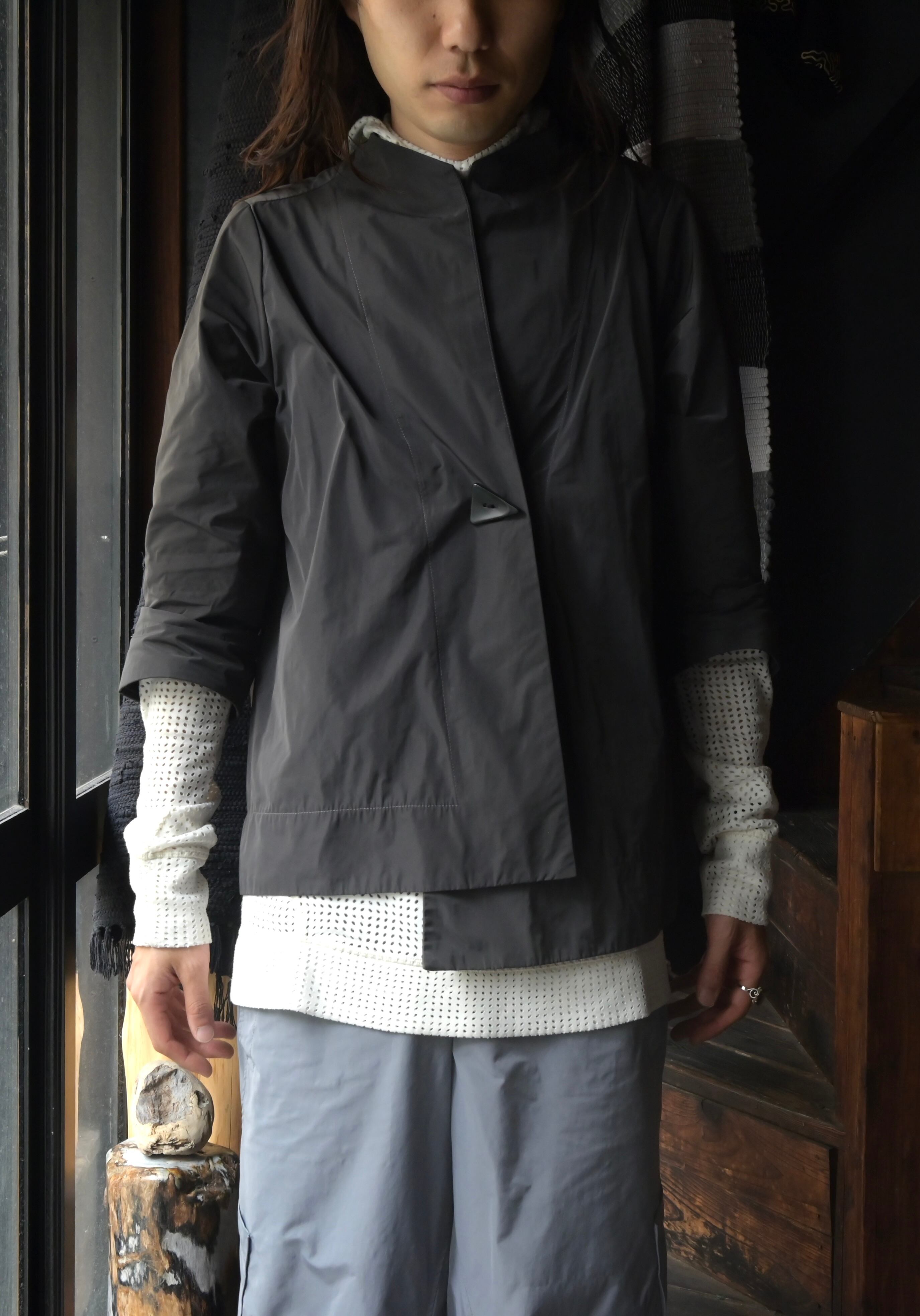 US Atelier Brand :SUN KIM Stand Collar Asymmetrical Jacket