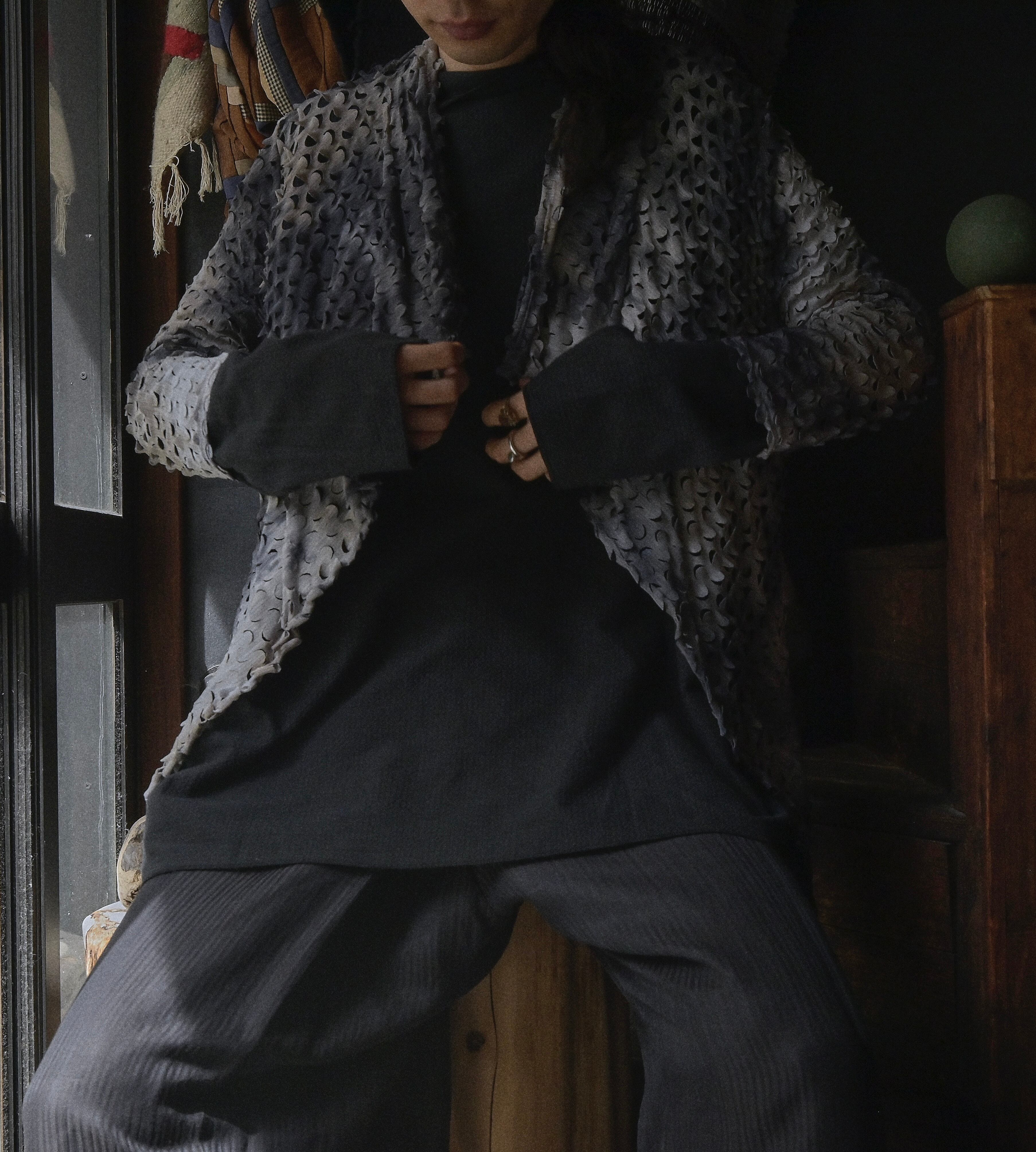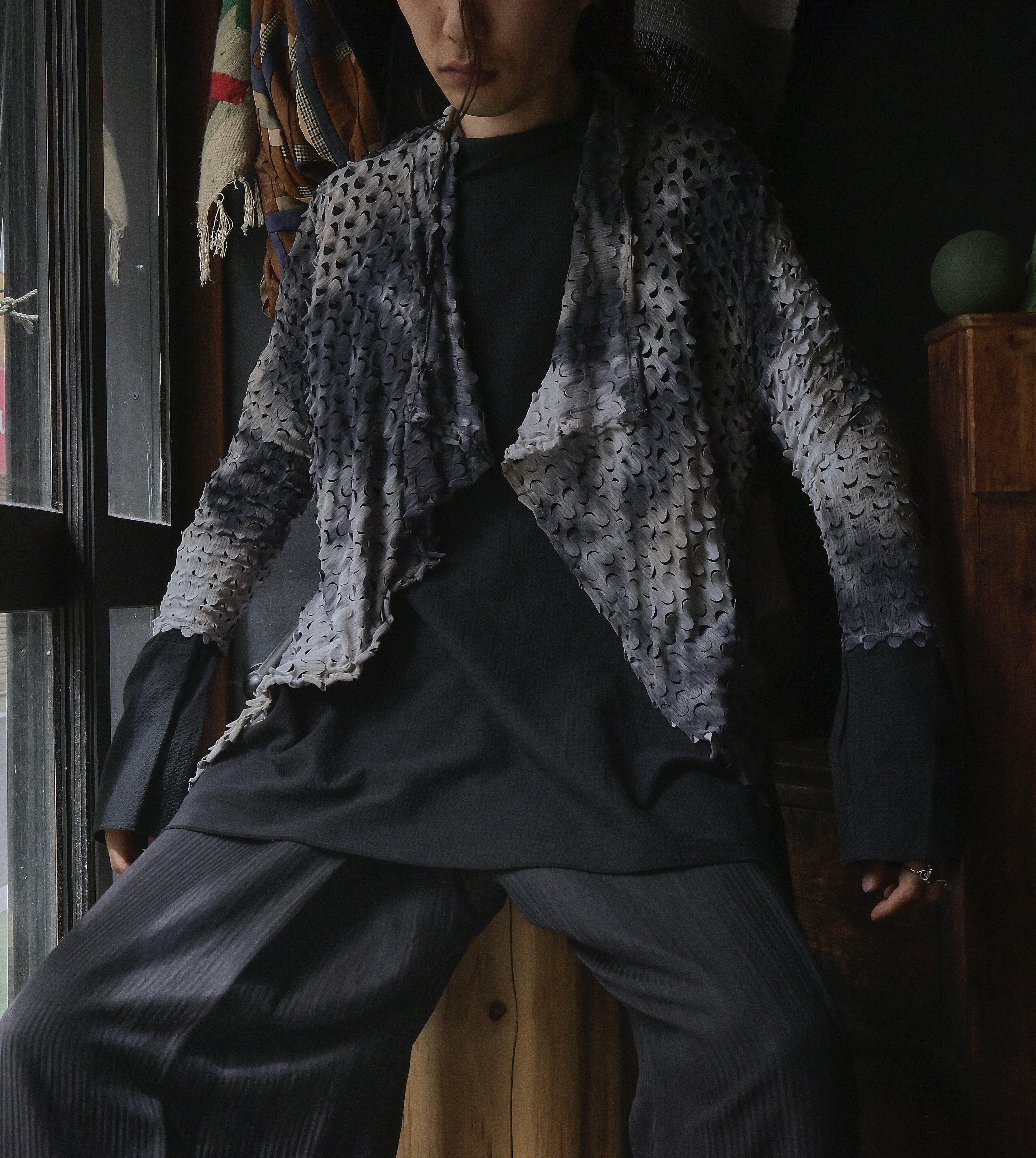 US 2010s ~ Punched cut fabric gradient deformed cardigan