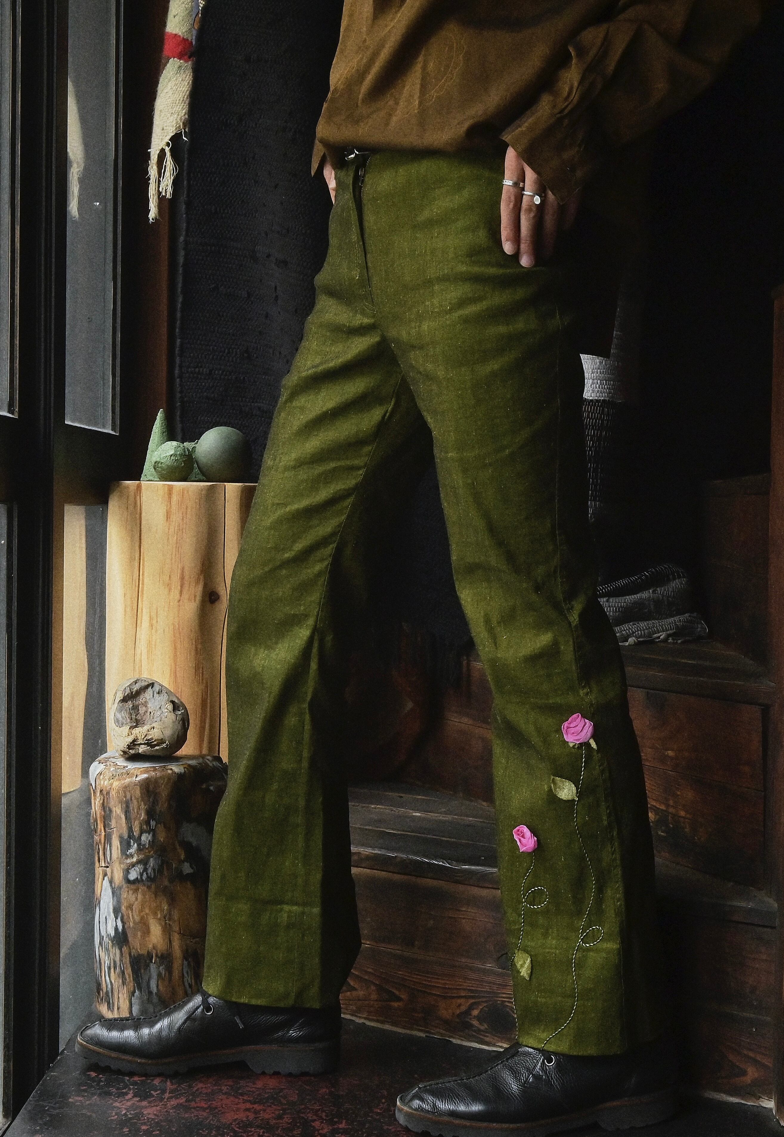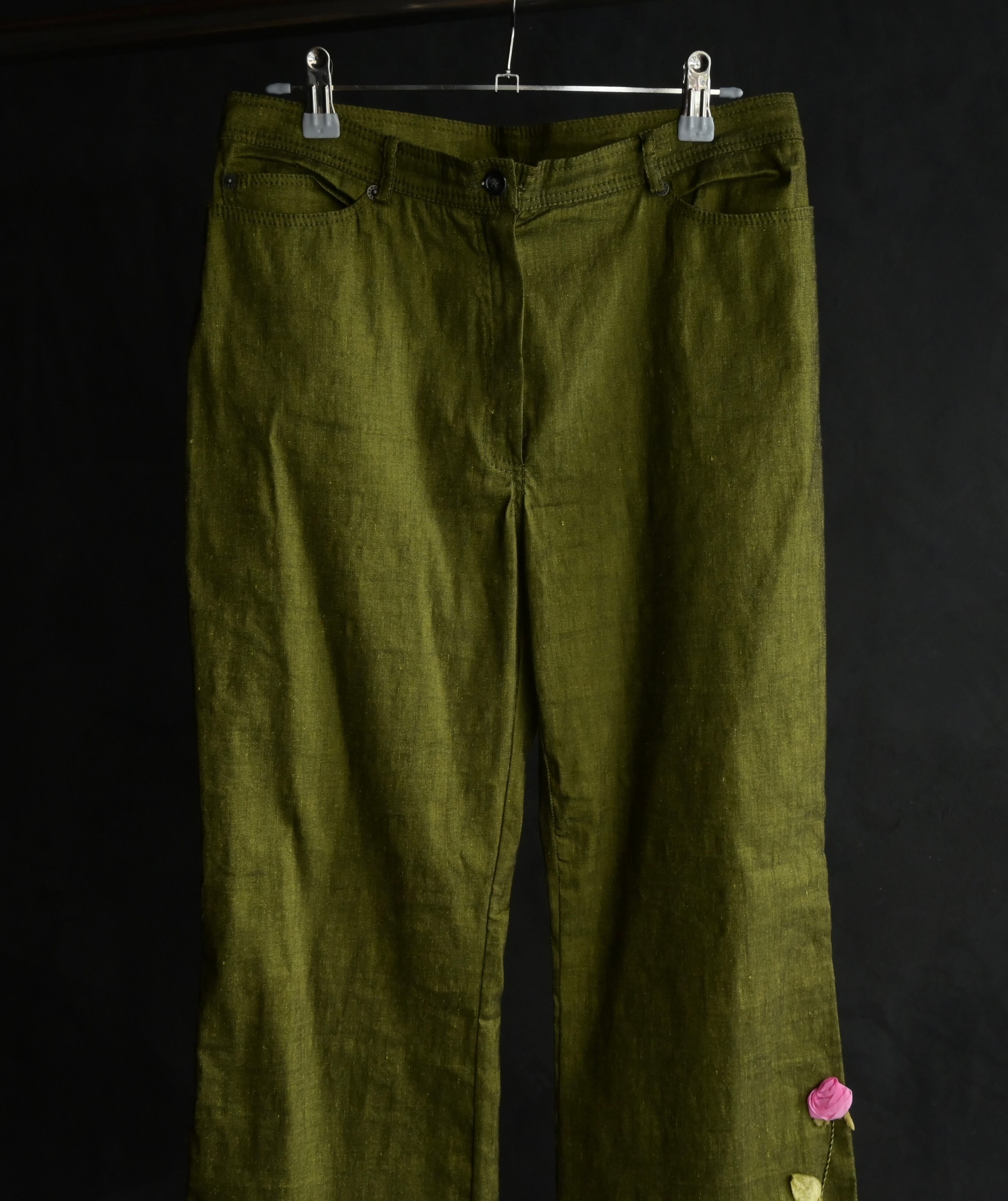 Early 2000s Euro Mixed Fabric Yellow Jewel Beetle Decorated Pants
