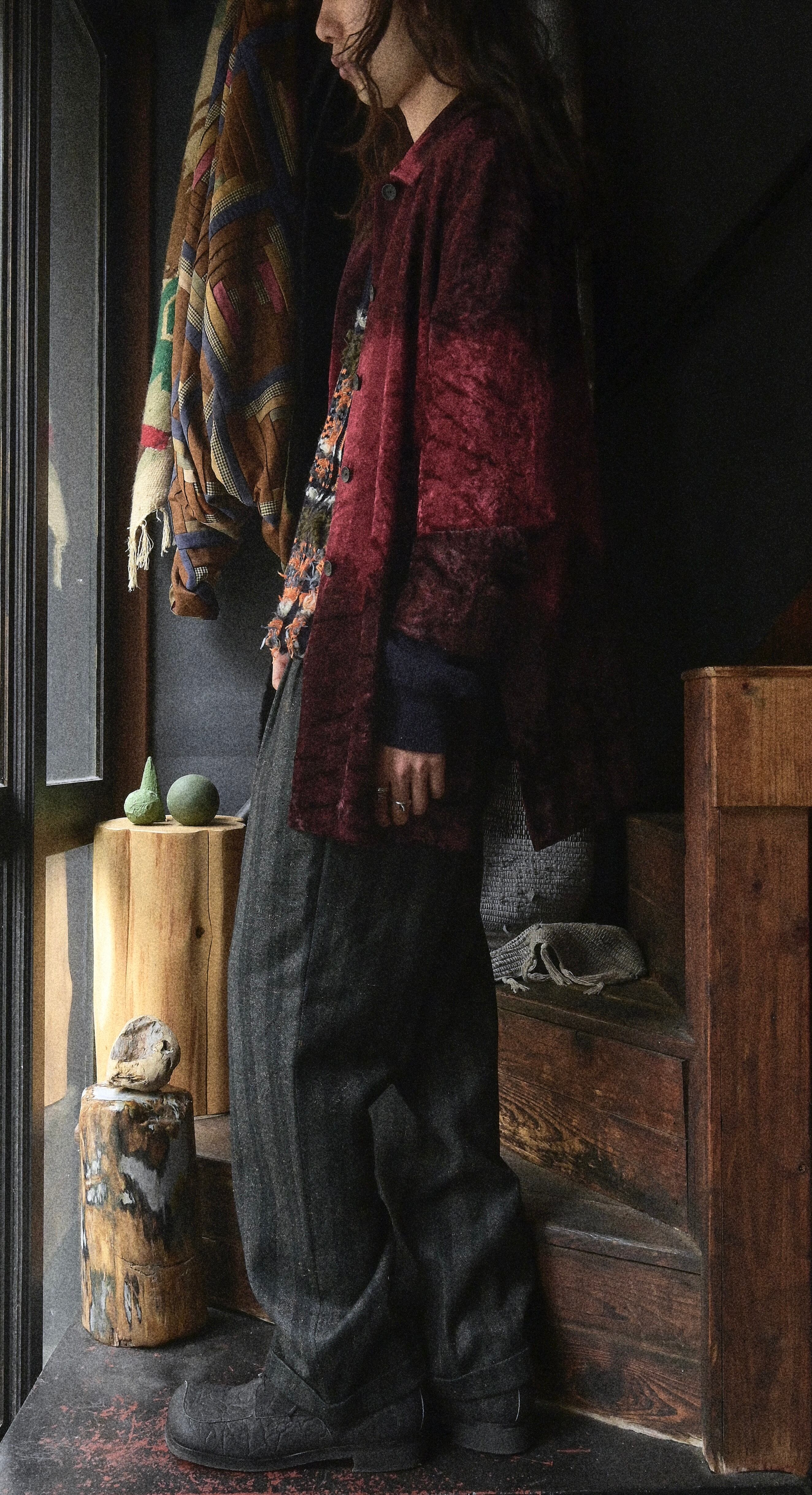 Early 2000s Euro Gradient Red Velvet Fabric Jacket
