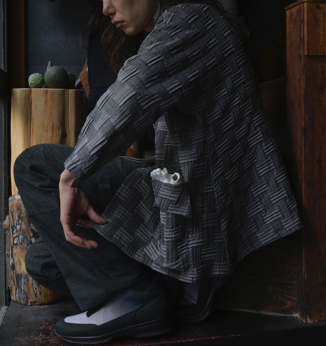 US 2010s〜 Silver stand collar mixed fabric shirt jacket