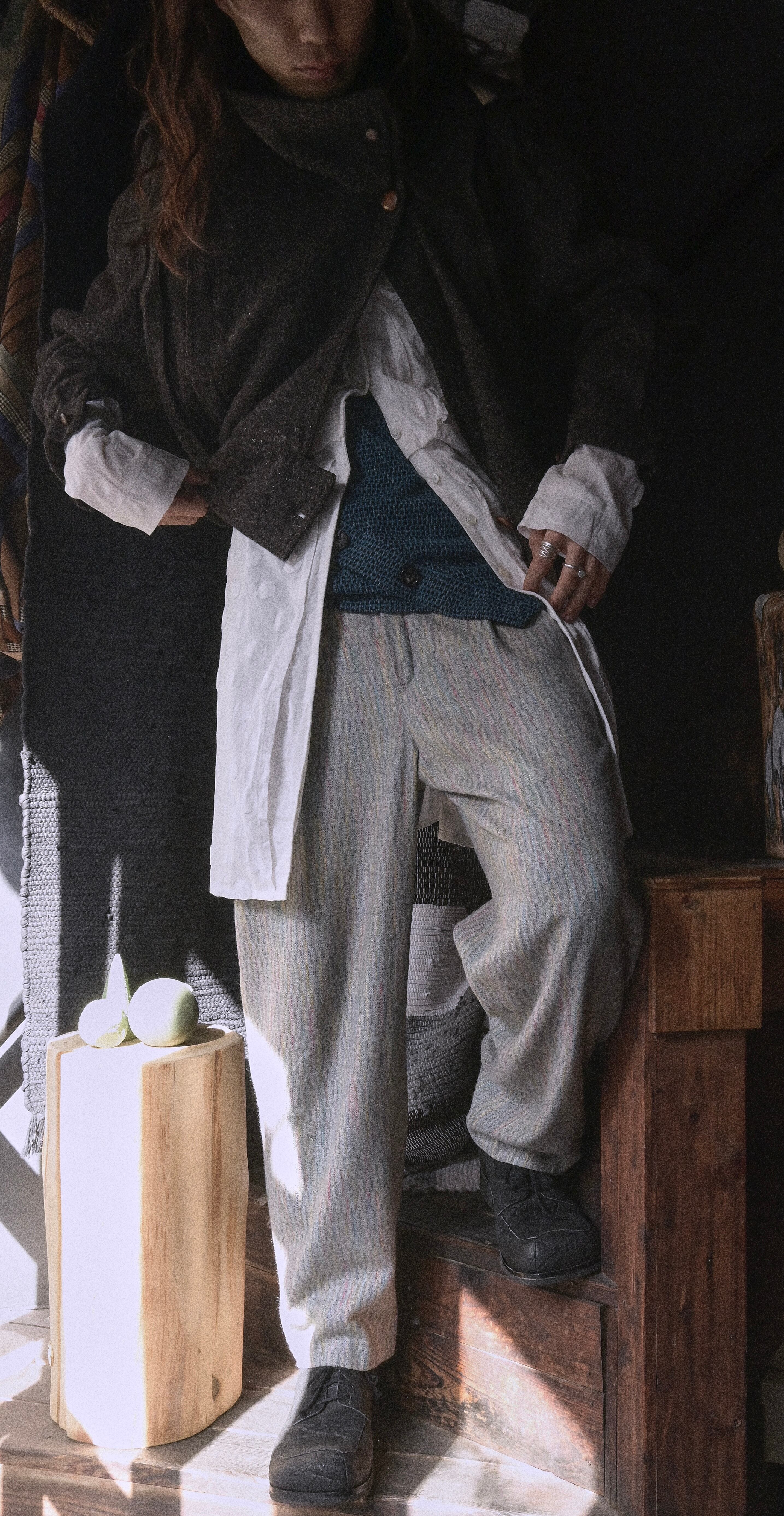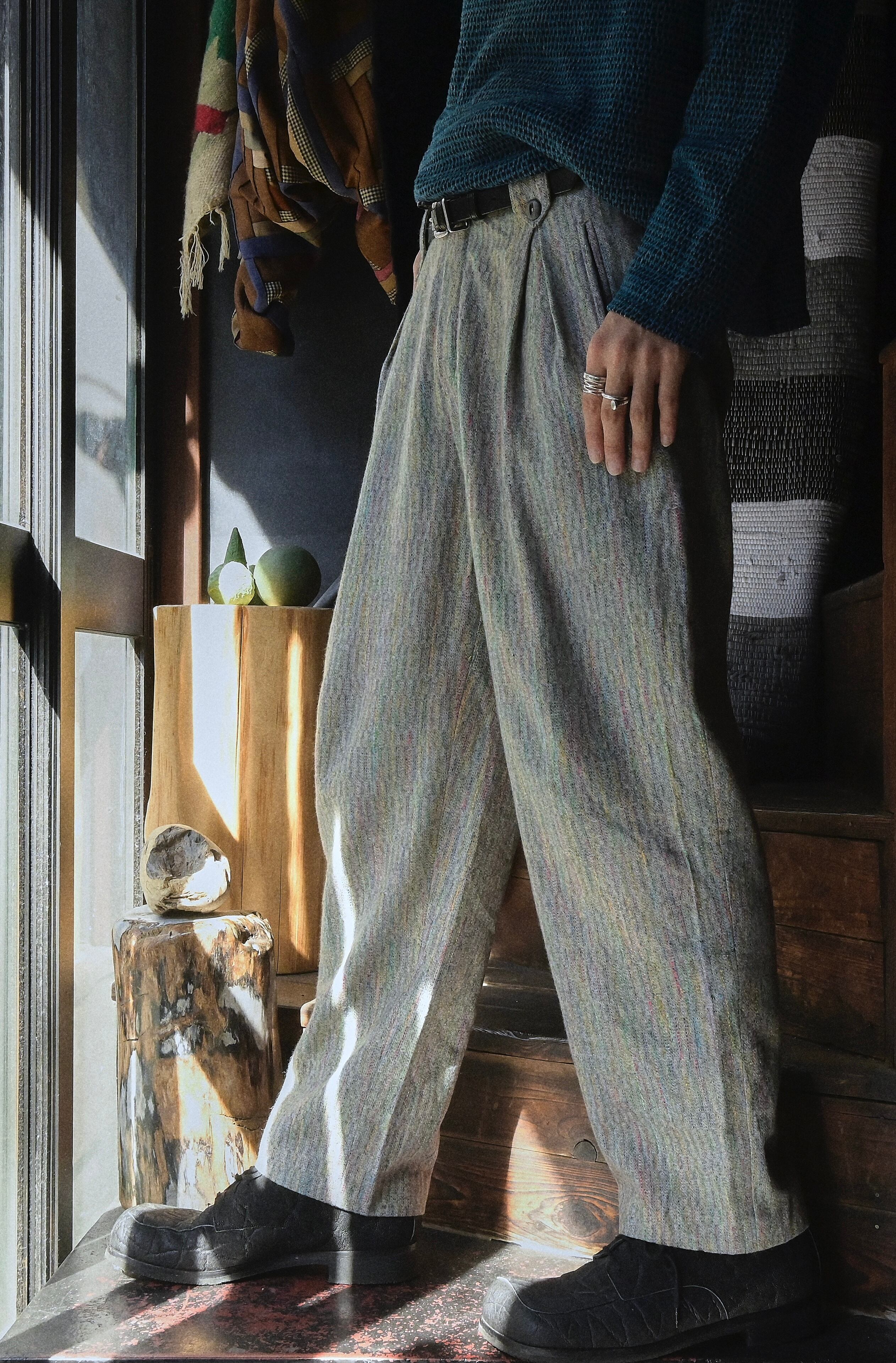 80s euro mixed colorful nap wool slacks