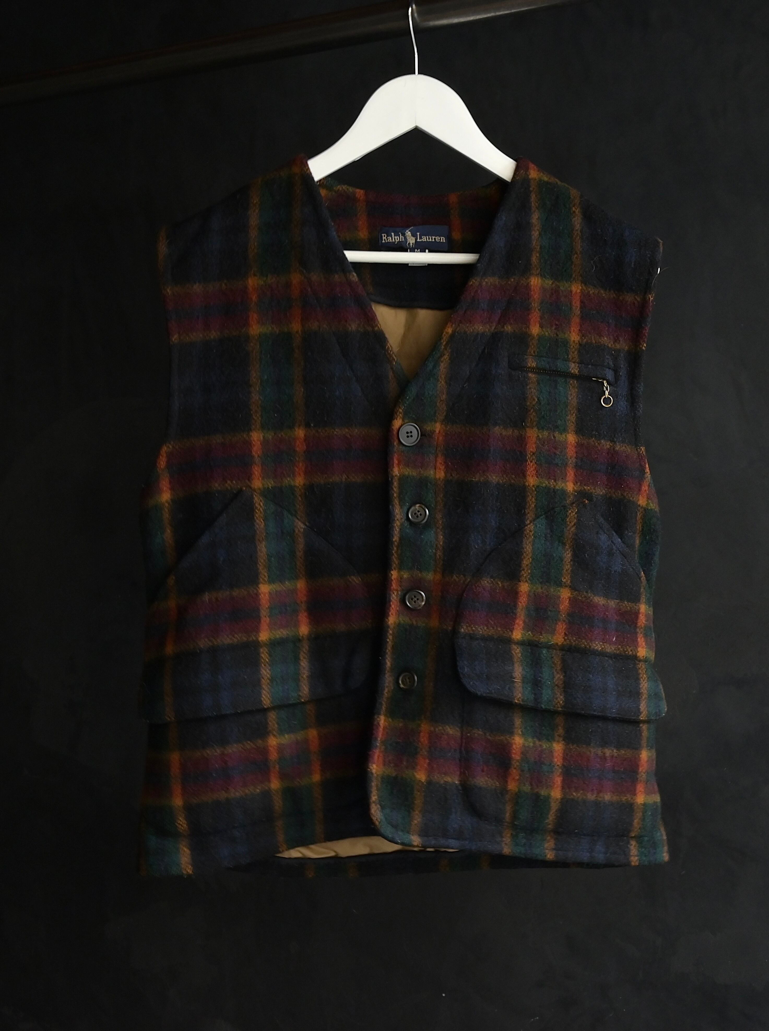 80s Ralph Lauren thick wool hunting pattern vest