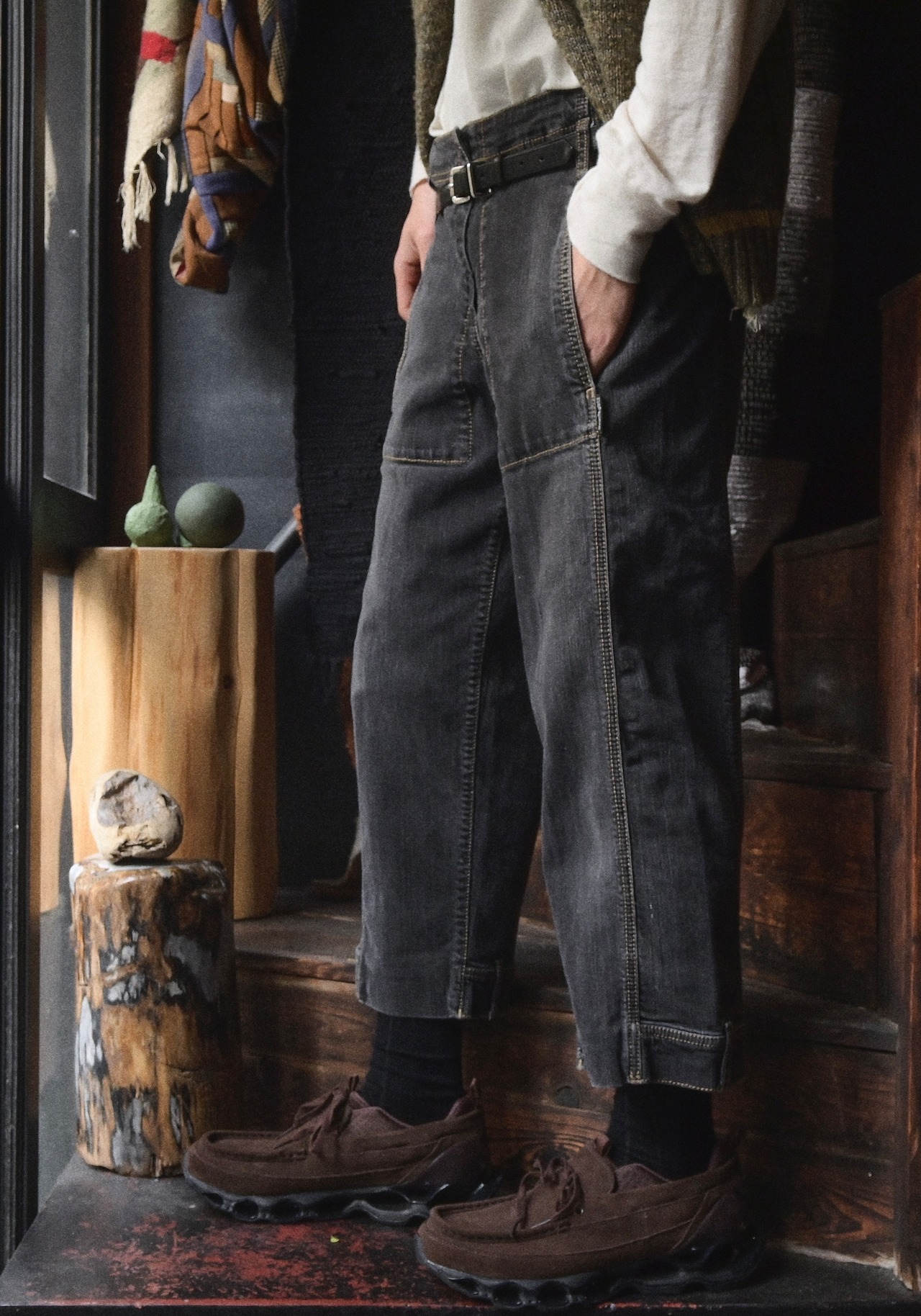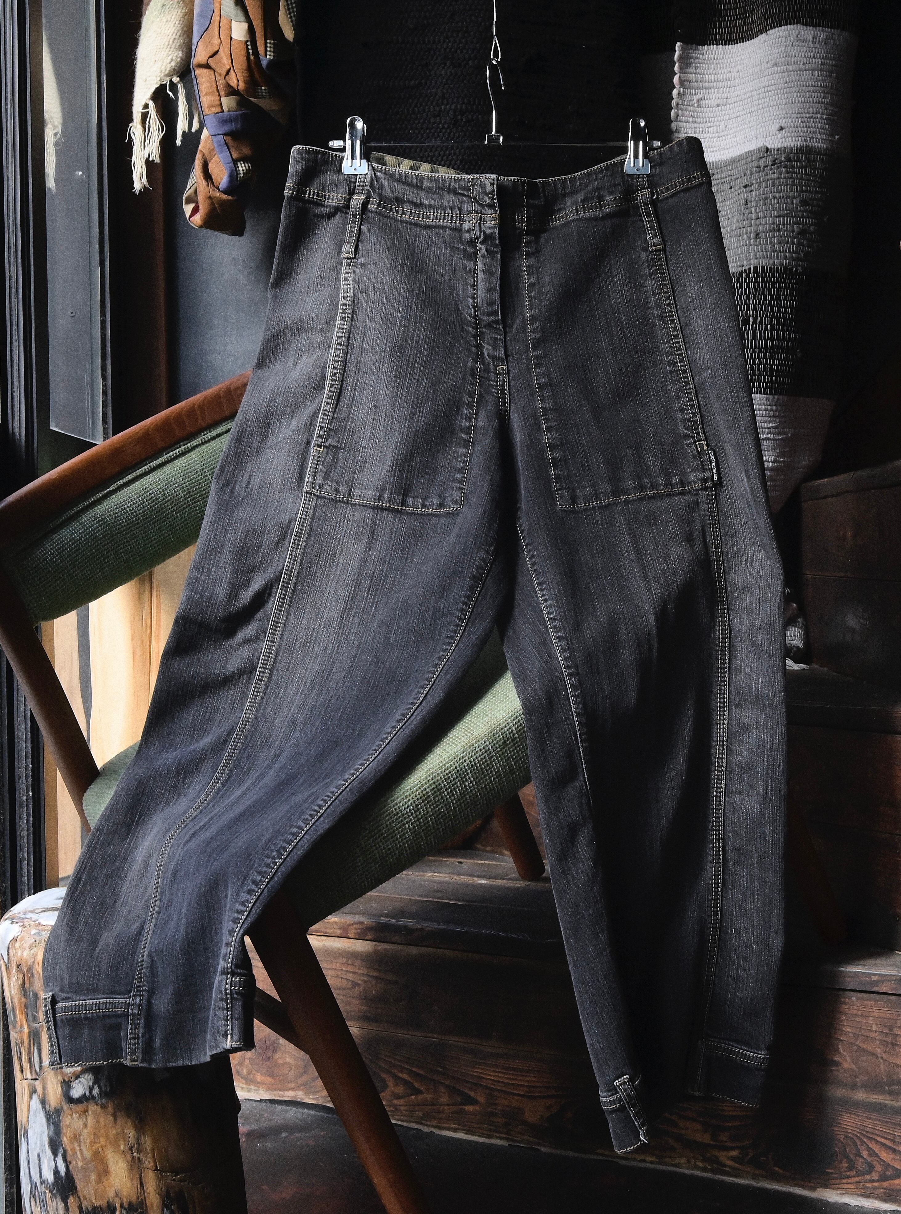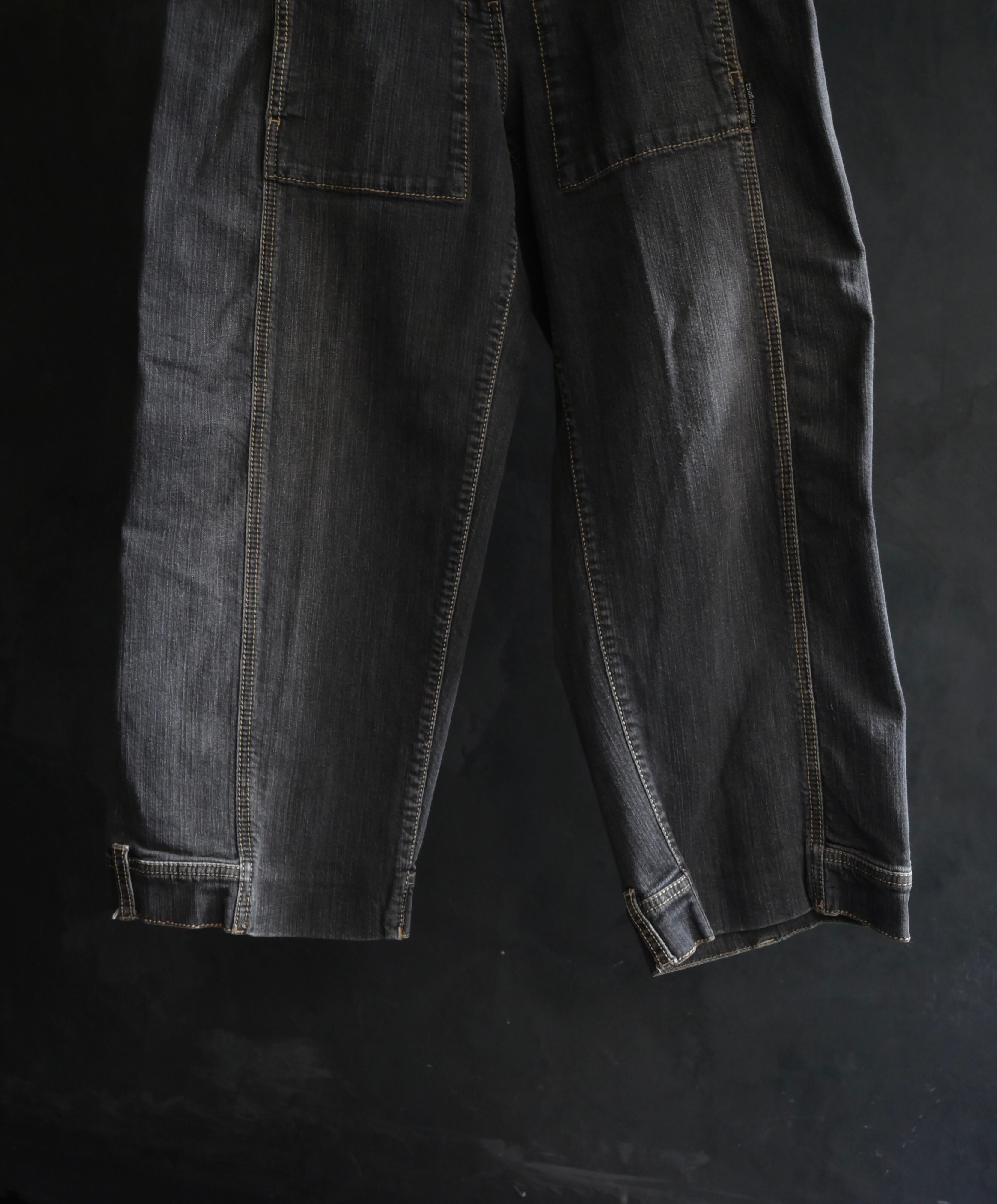 2010s euro~ Curve Pattern Black Cropped Denim