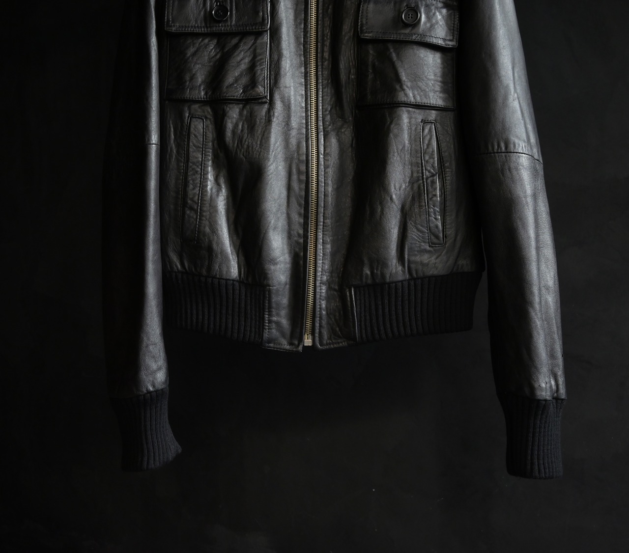 early 2000s Italy leather high neck flight pattern jacket