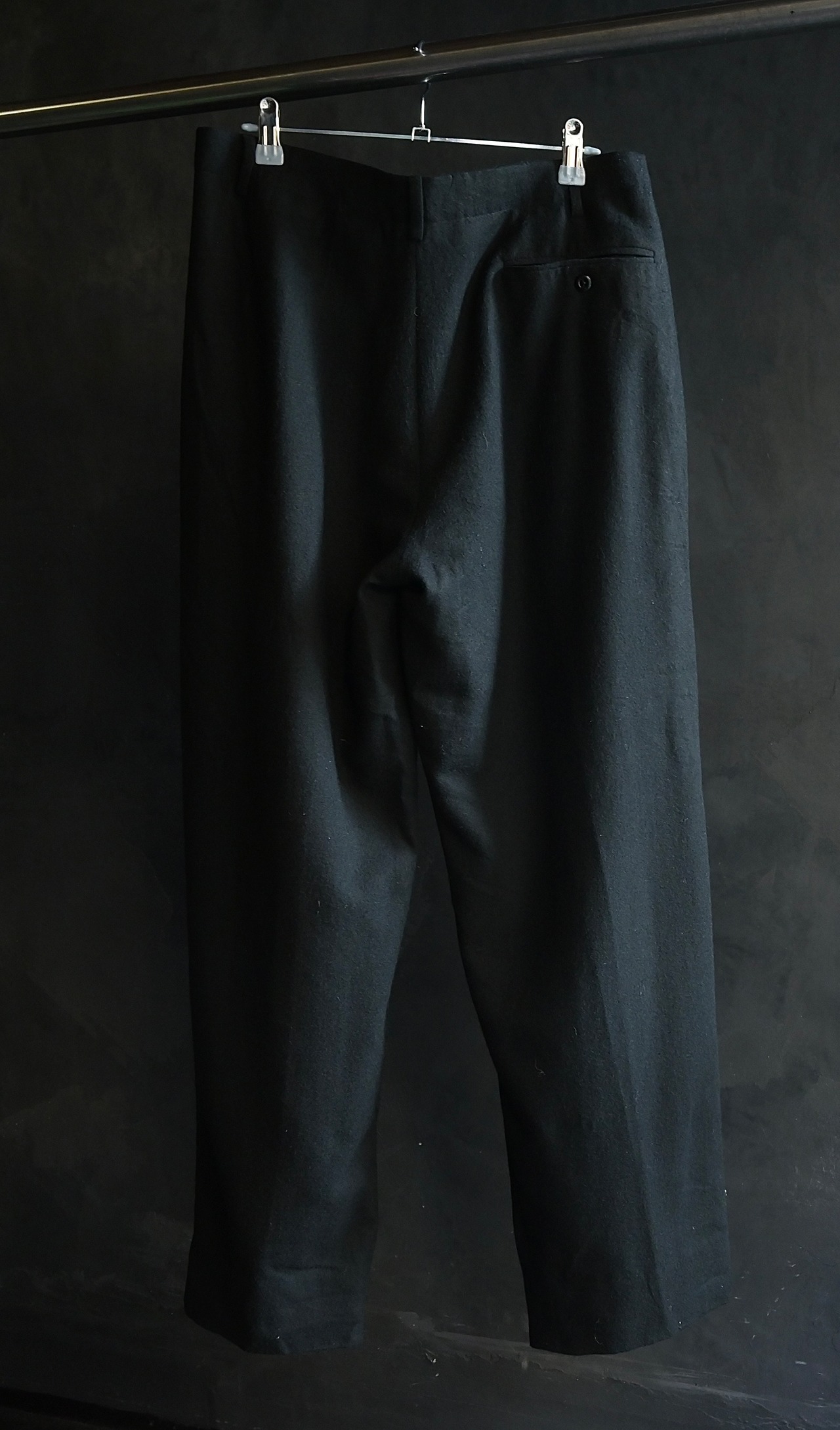 80s ITALY Waist design black wool slacks