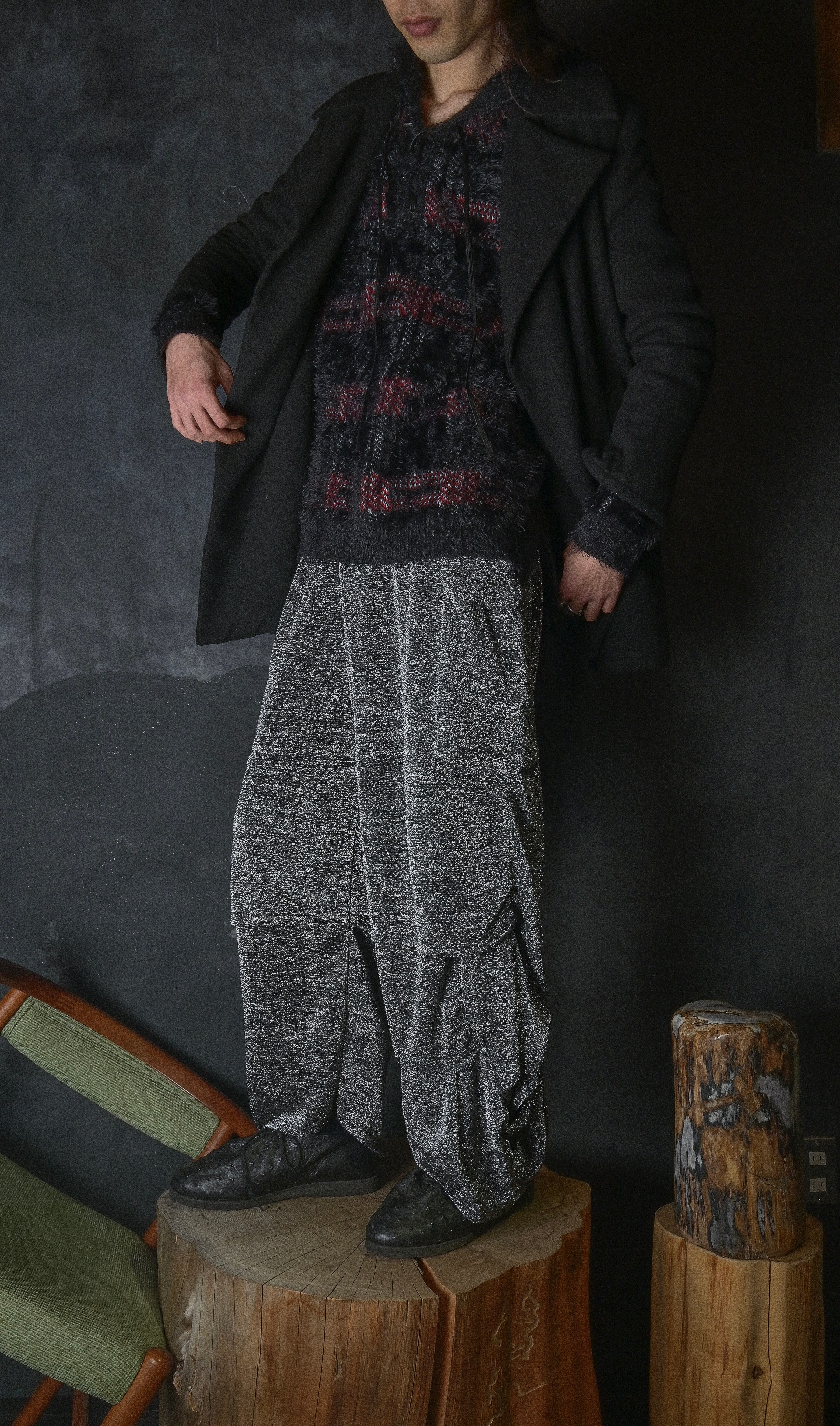 人と違うが社会悪と見られるこの国において、逆光のような光を放つメタリックパンツ。
