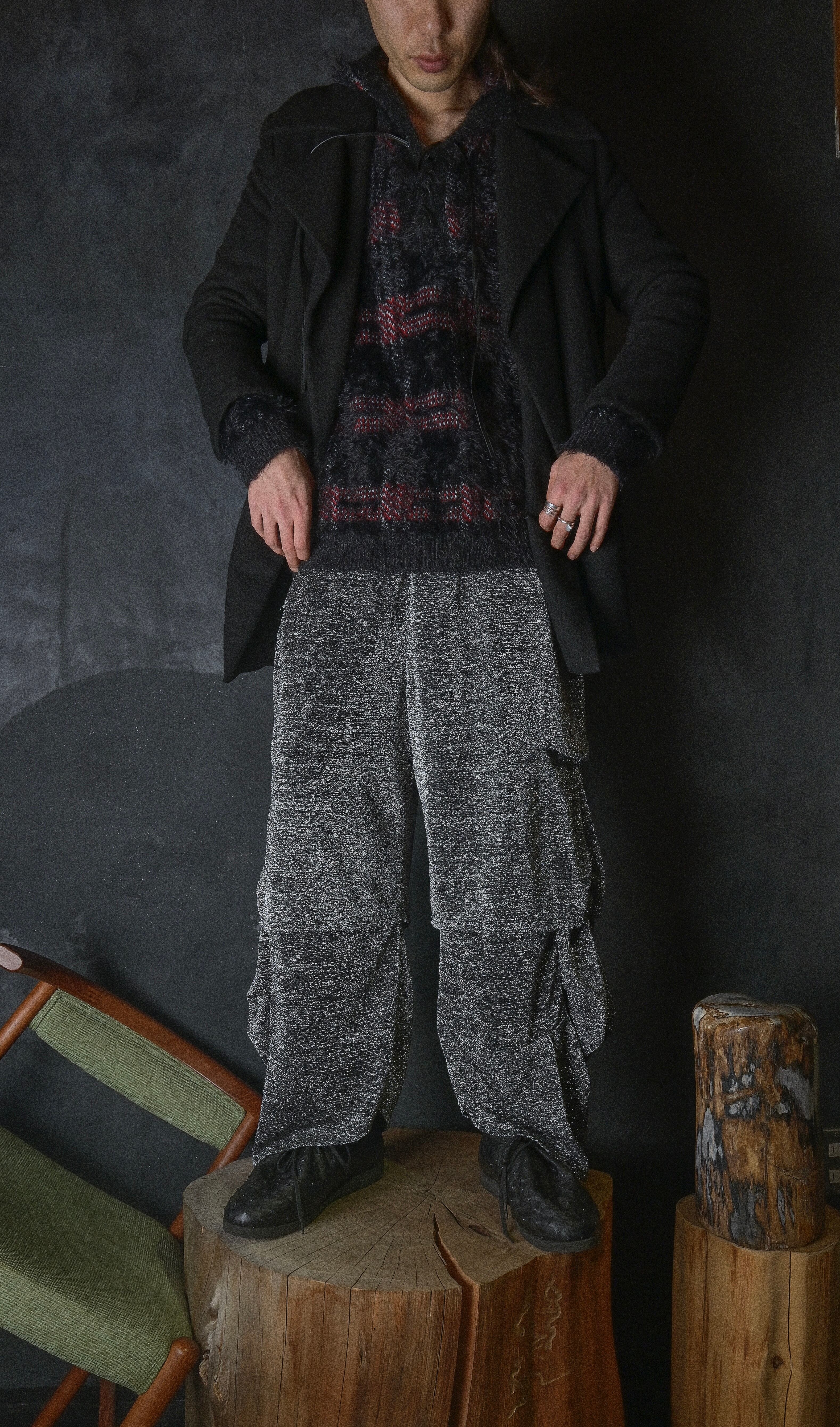 ブラックのモケモケの奥底にある埋め込まれたようなチェック。