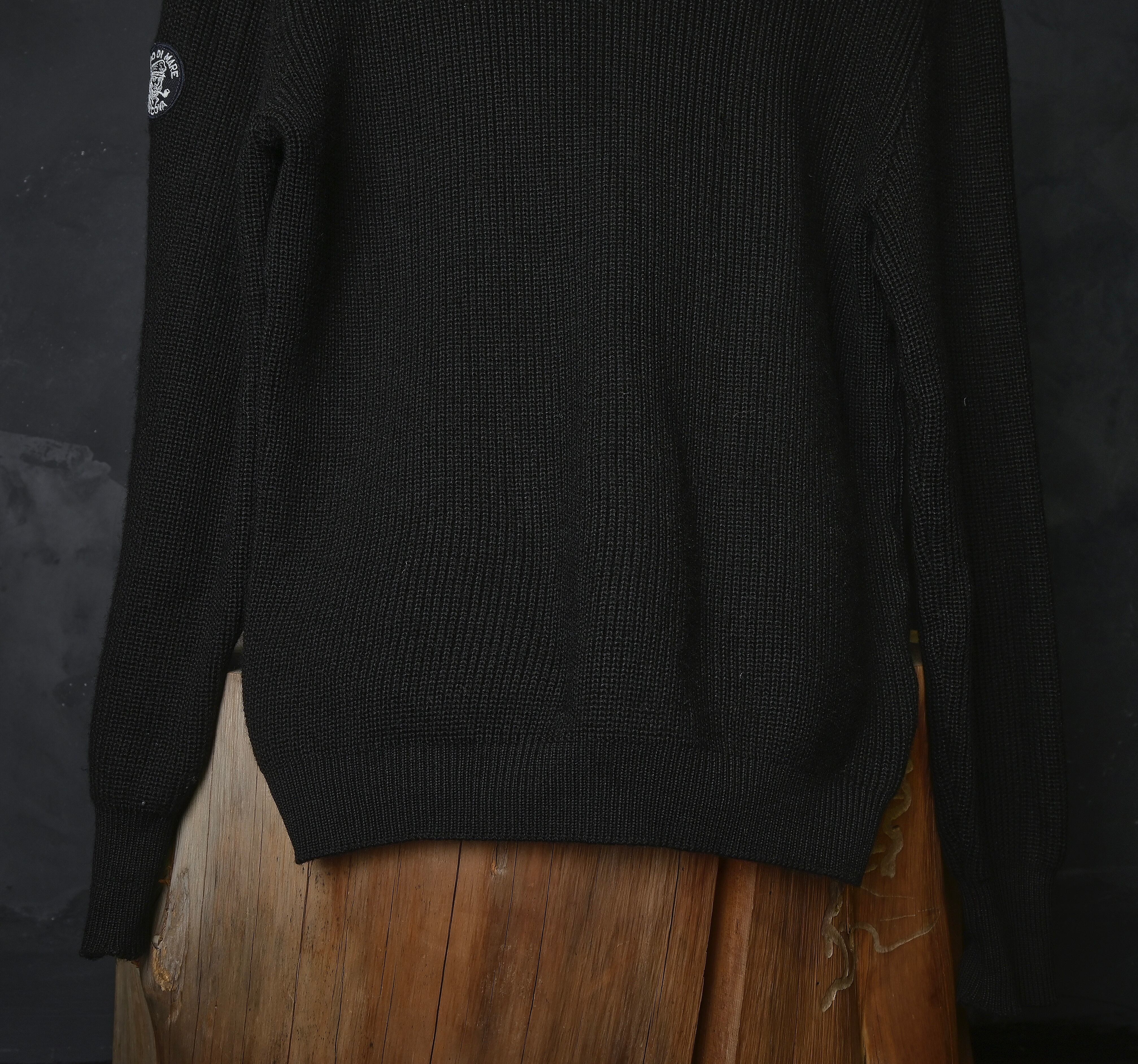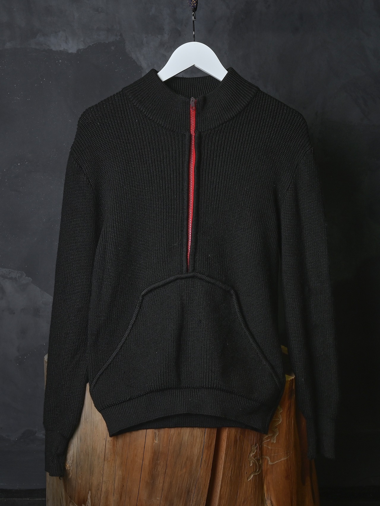 80s euro overdyed black center long zip high neck knit