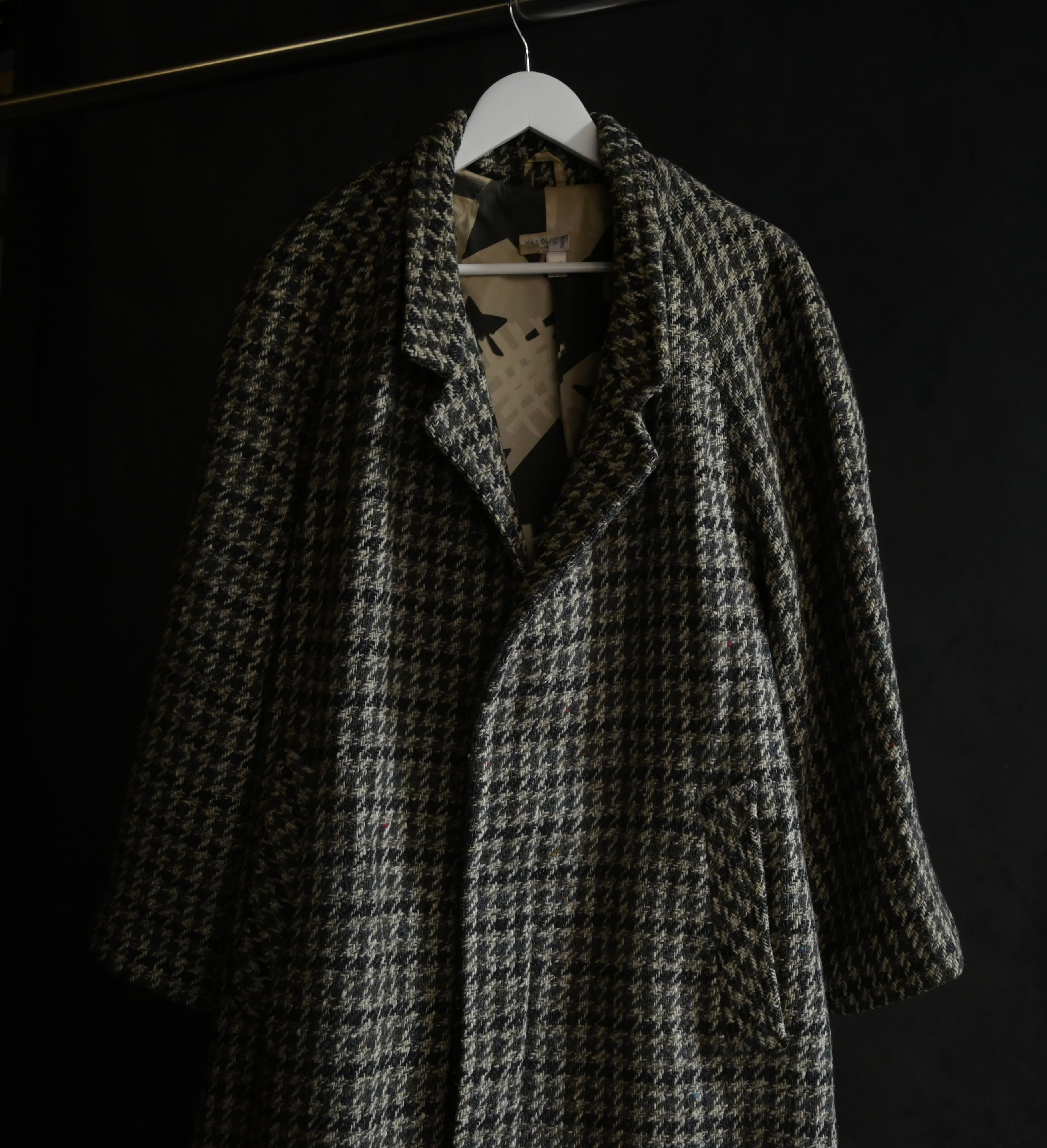 80s NAJ-OLEARI WOOL×WOVEN×NEP×TWEED fabric long coat