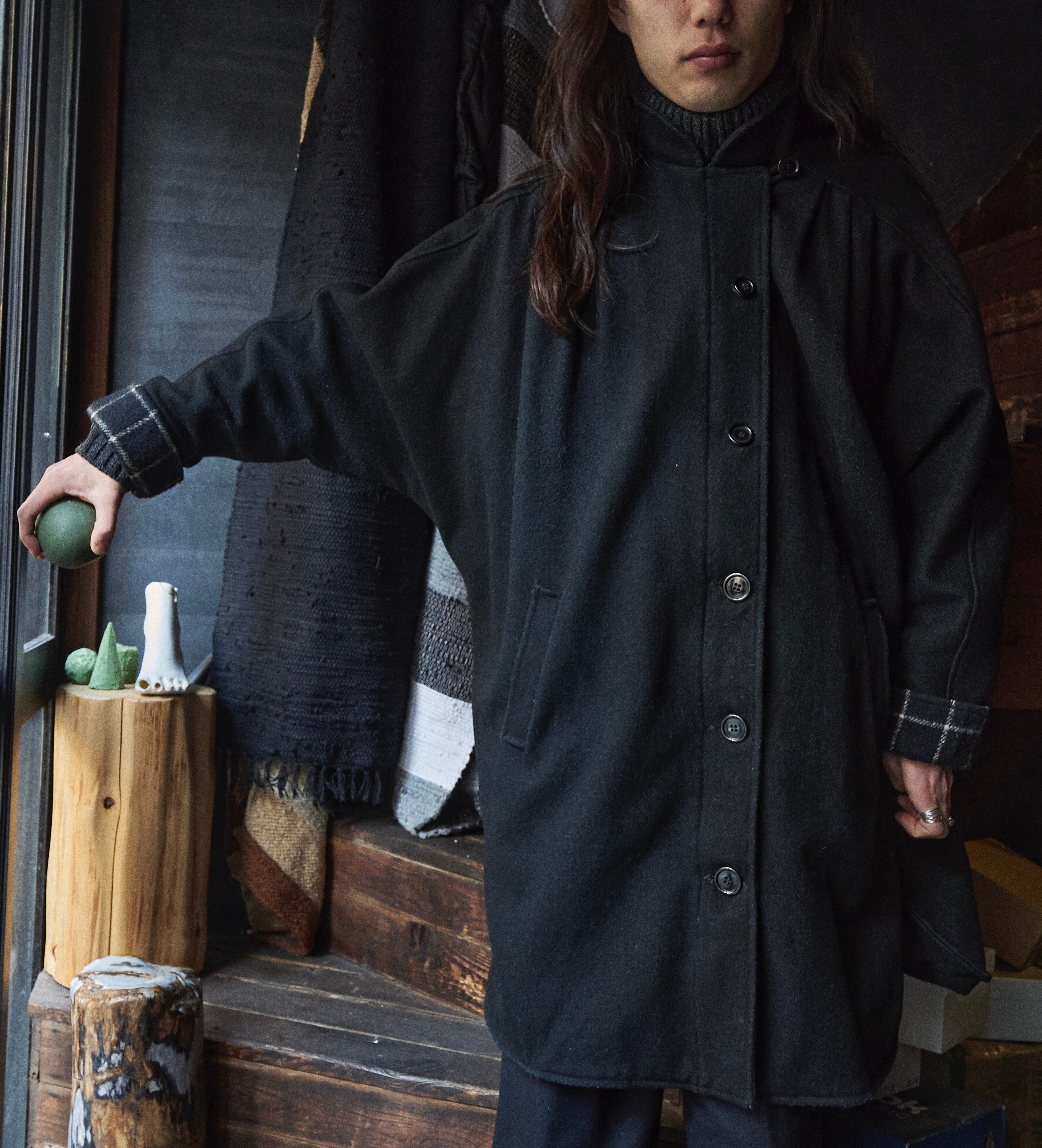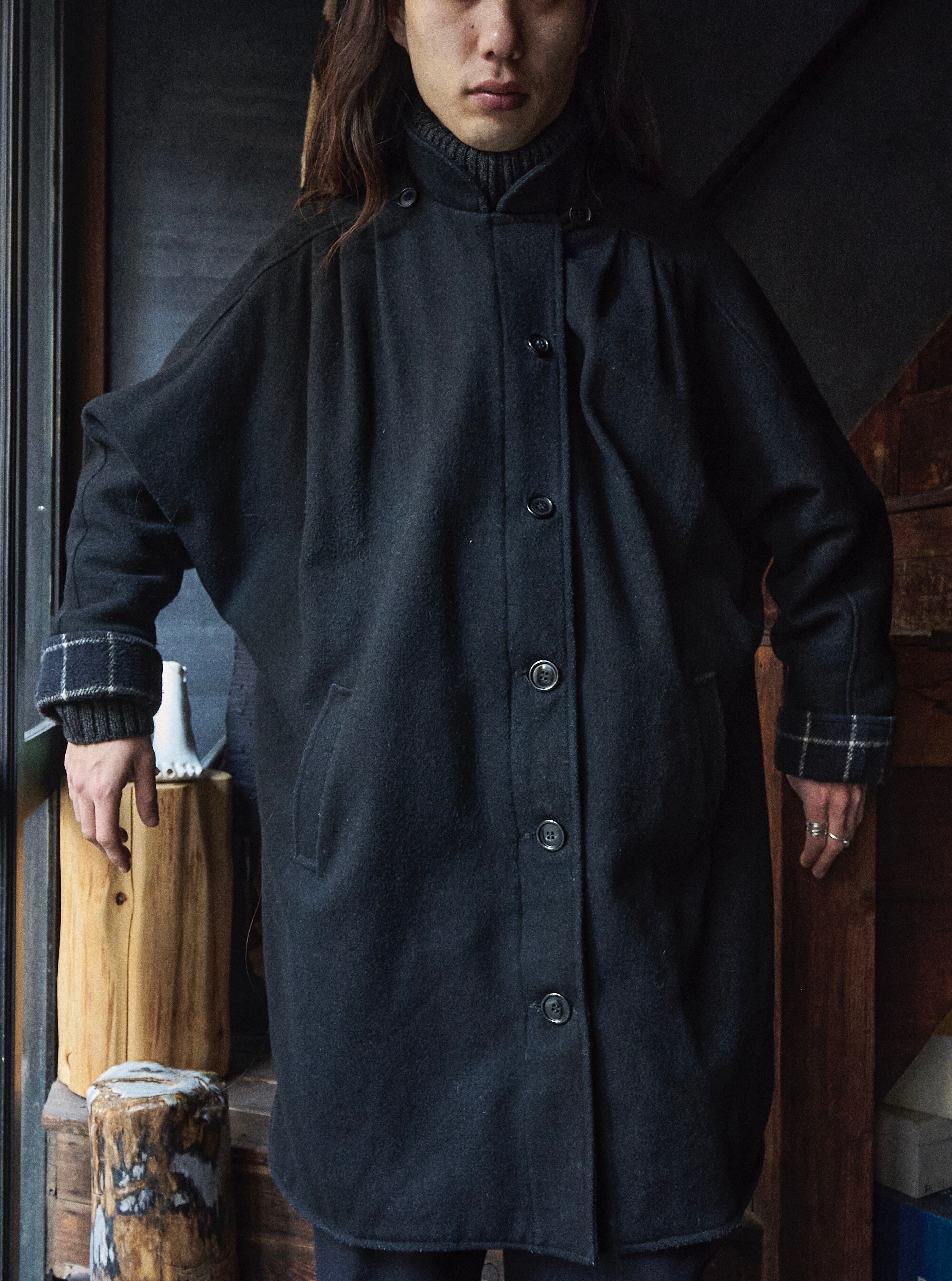 US 80s Volume Dolman Sleeve Black Wool Coat