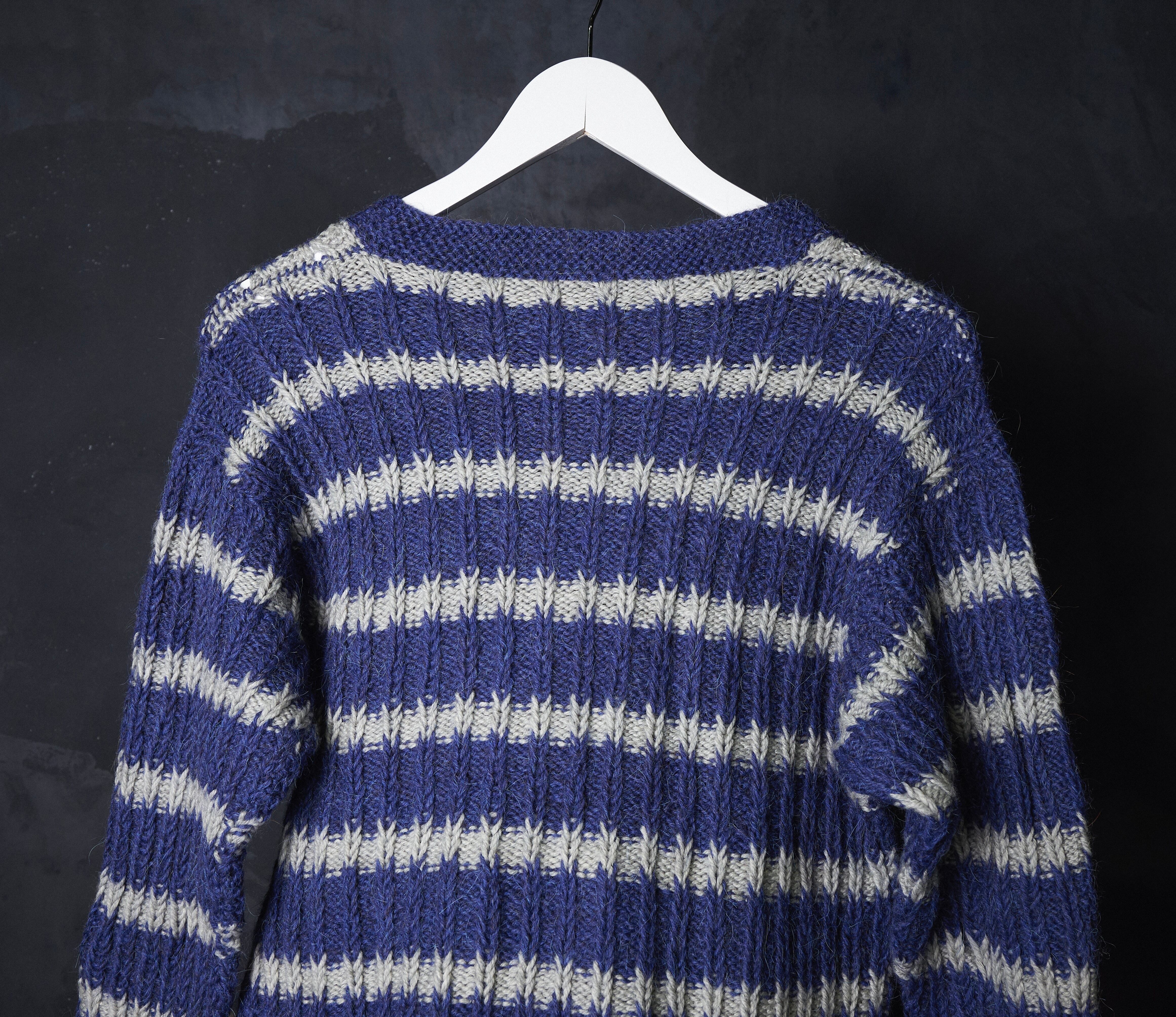 ウールやモヘアが混ざり合ったニット生地。浮き出るようなボーダー柄のデザインが素敵です。