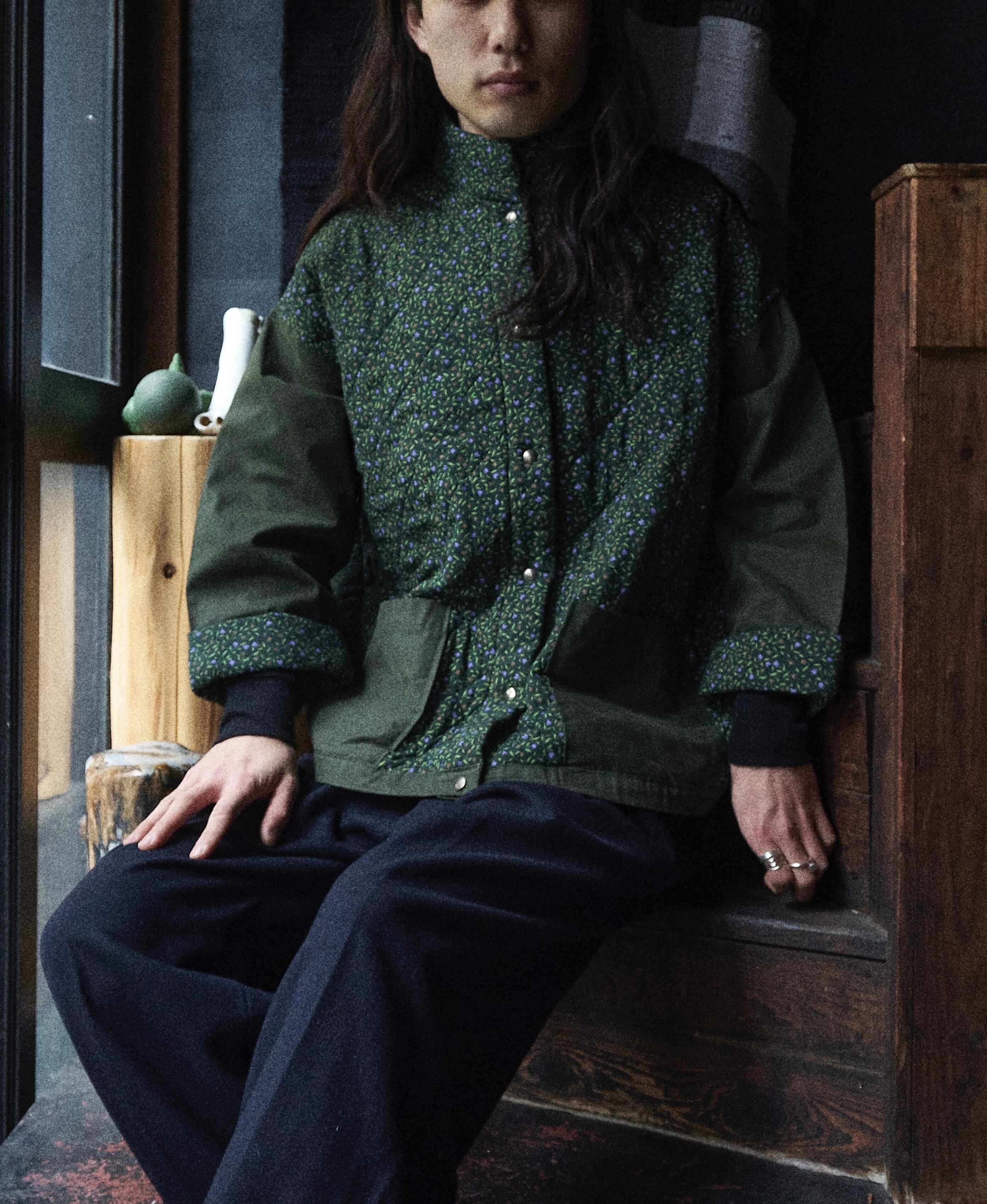 early 2000s euro Hand Made Floral quilted rubberised jacket