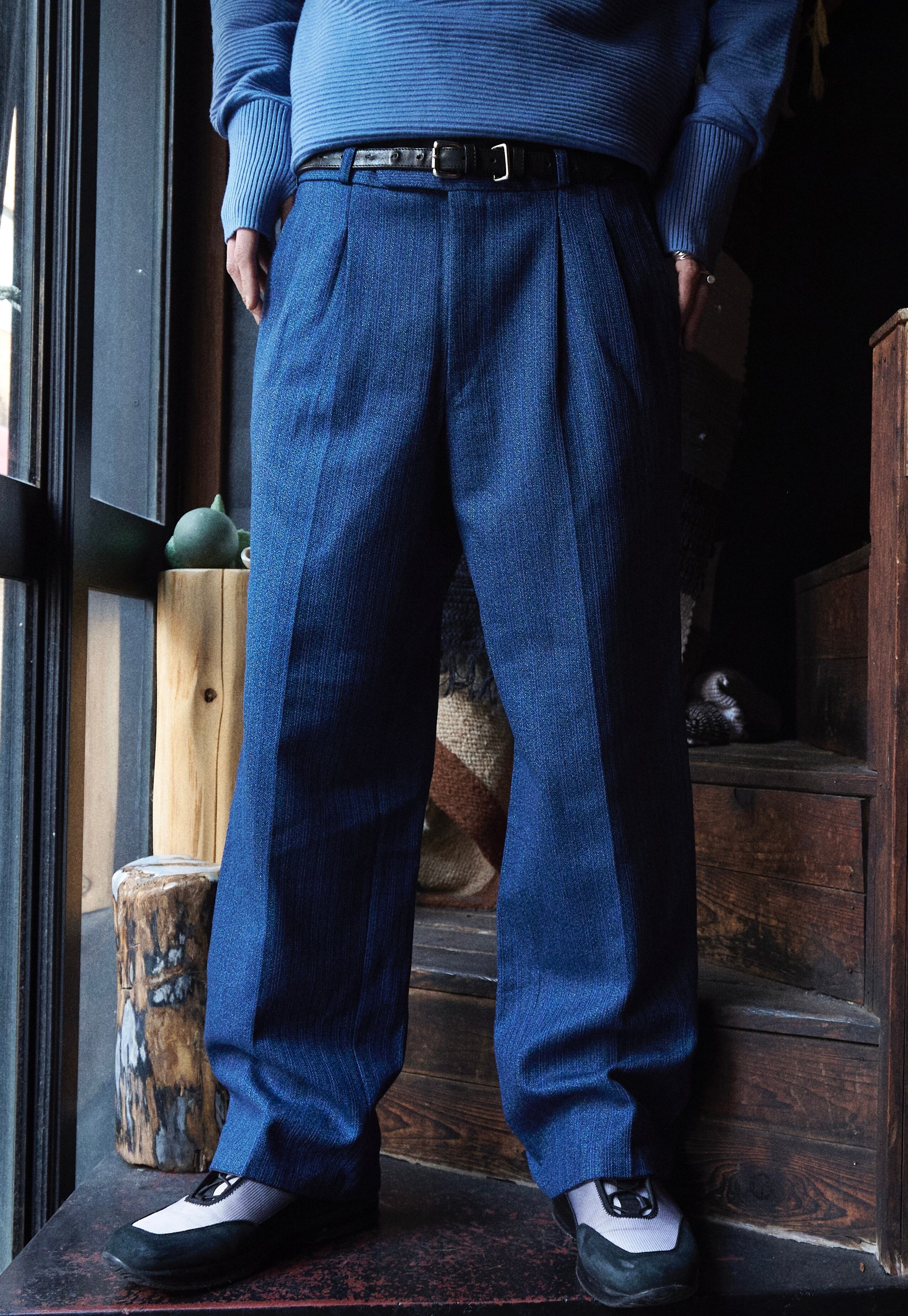 Vintage ITALY Sartoria Woven Fabric Blue Base Wool Slack